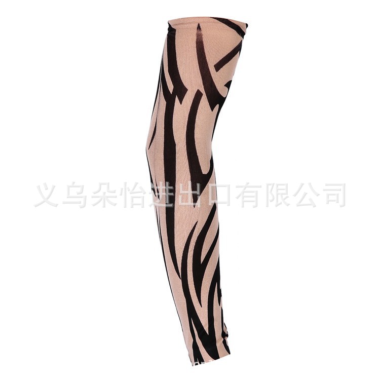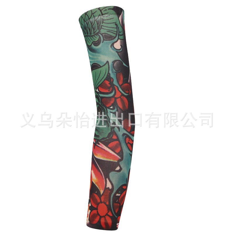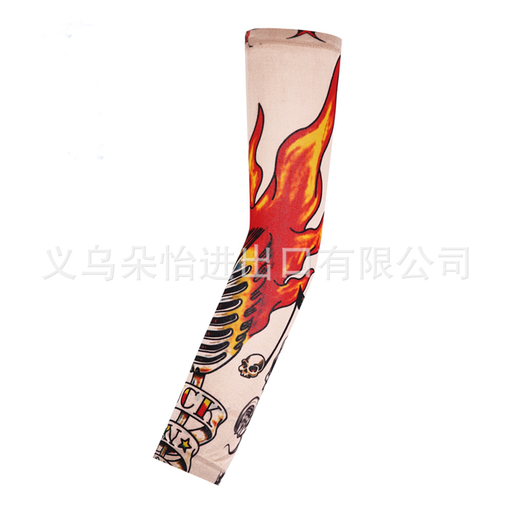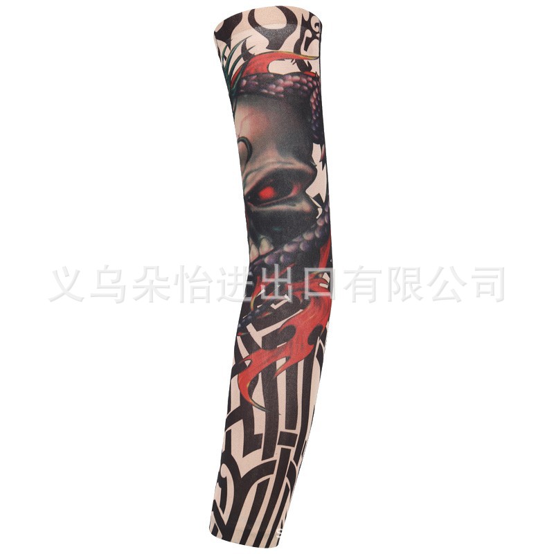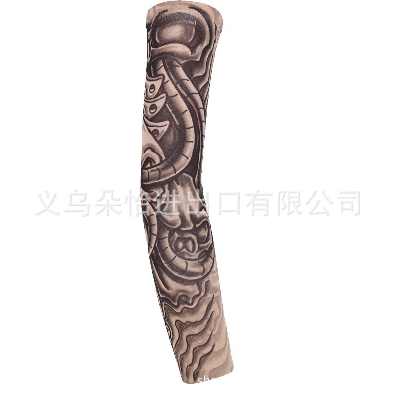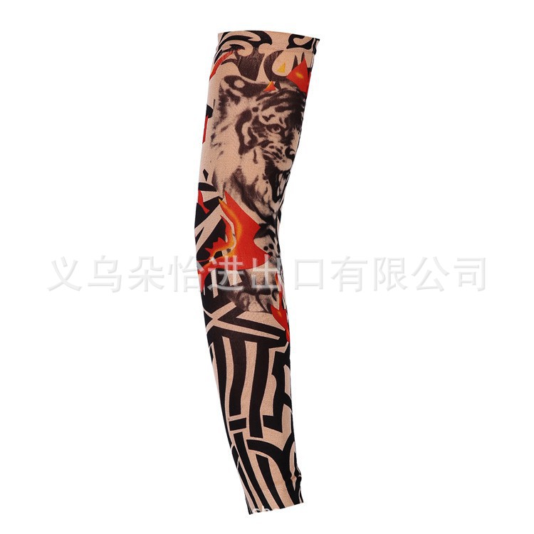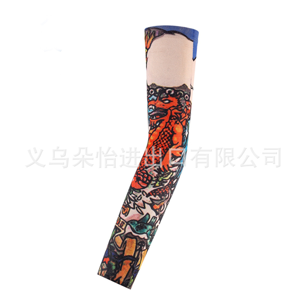 跨境单只纹身袖套夏季运动户外透气吸汗冰丝防晒有缝花臂刺青冰袖
