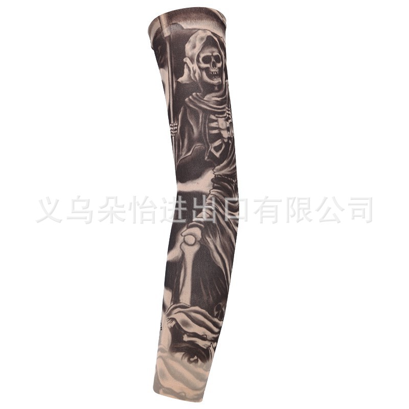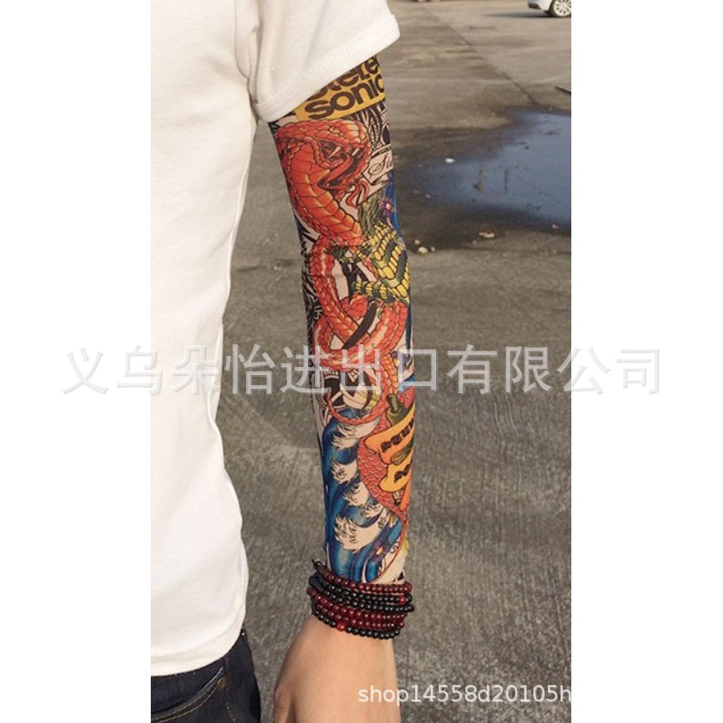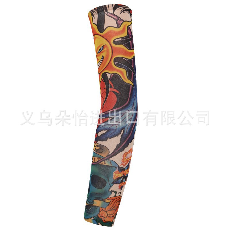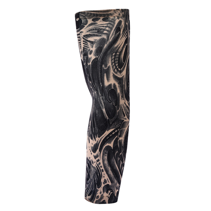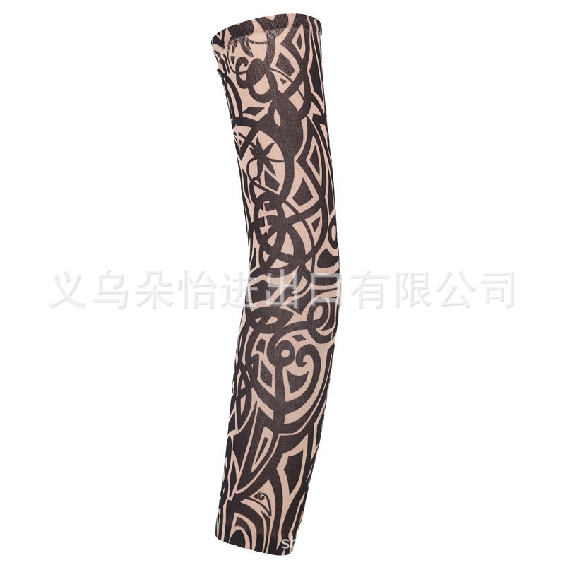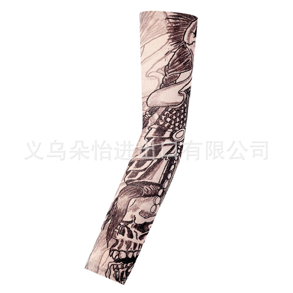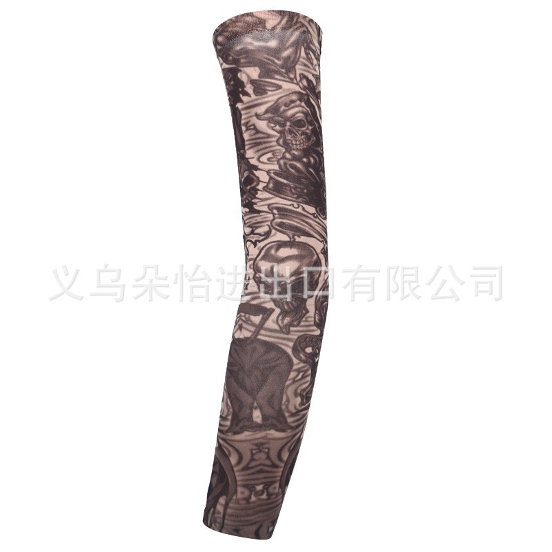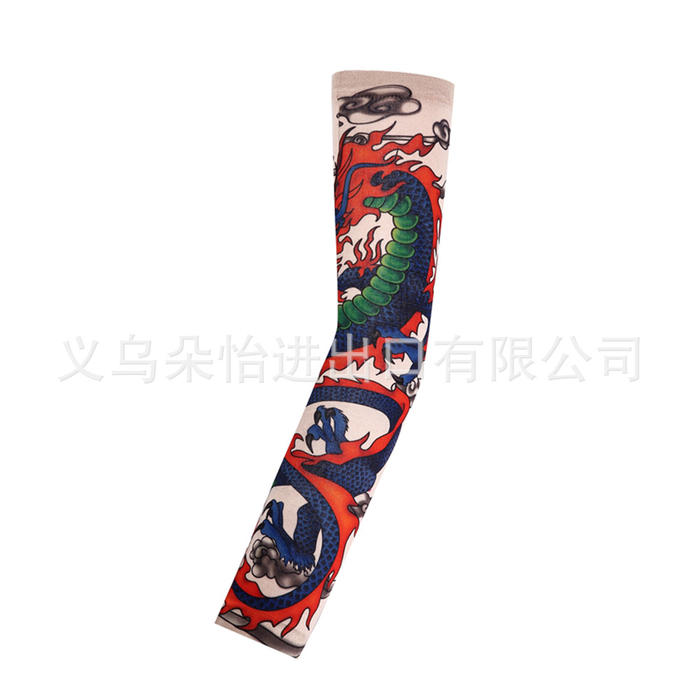 跨境单只纹身袖套夏季运动户外透气吸汗冰丝防晒有缝花臂刺青冰袖