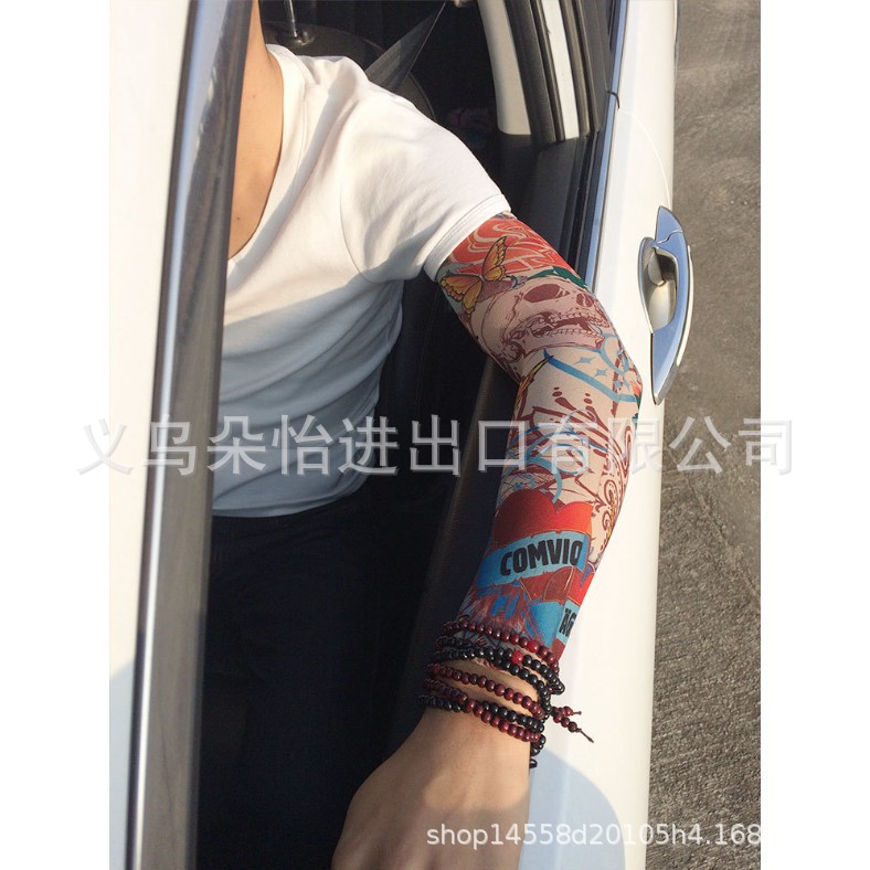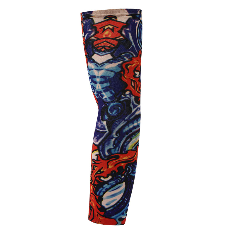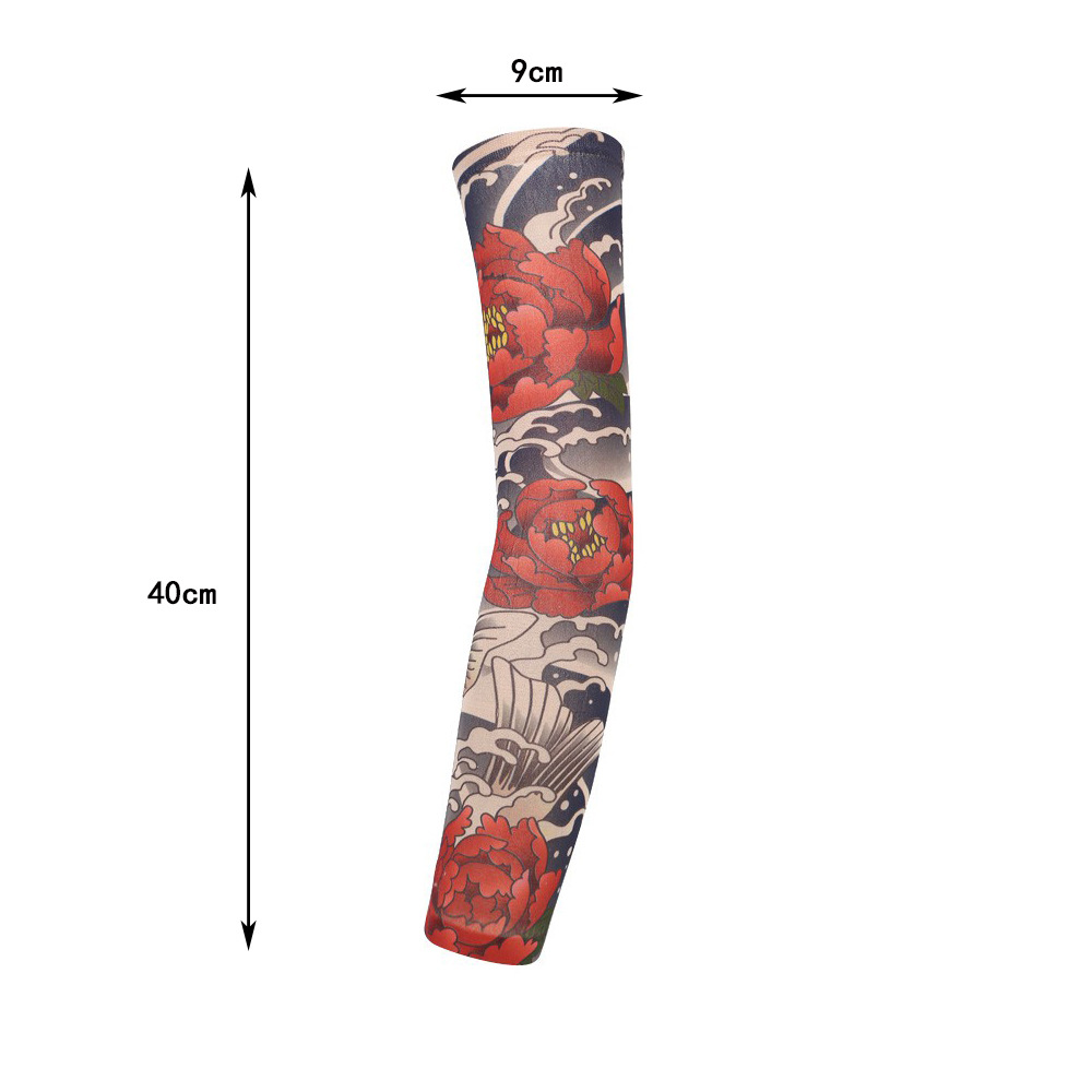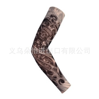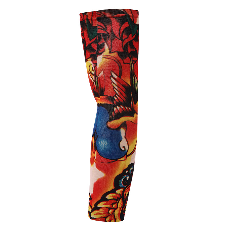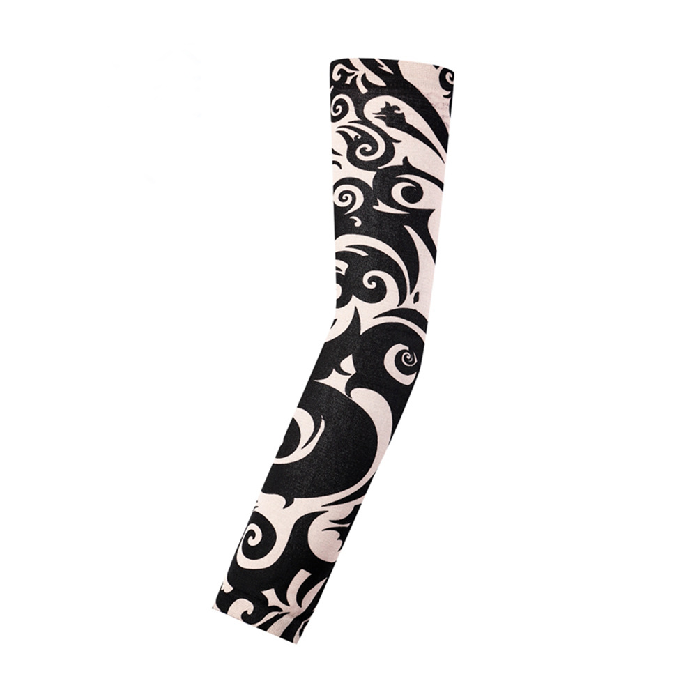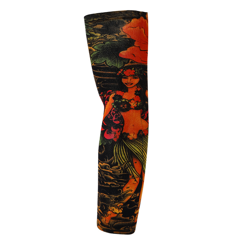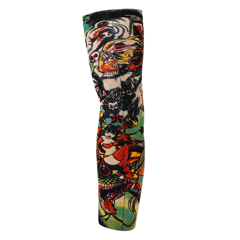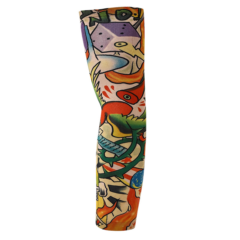 跨境单只纹身袖套夏季运动户外透气吸汗冰丝防晒有缝花臂刺青冰袖