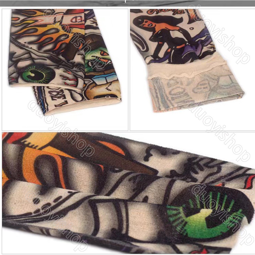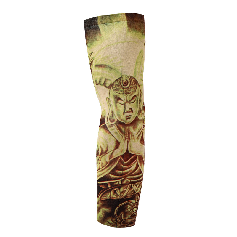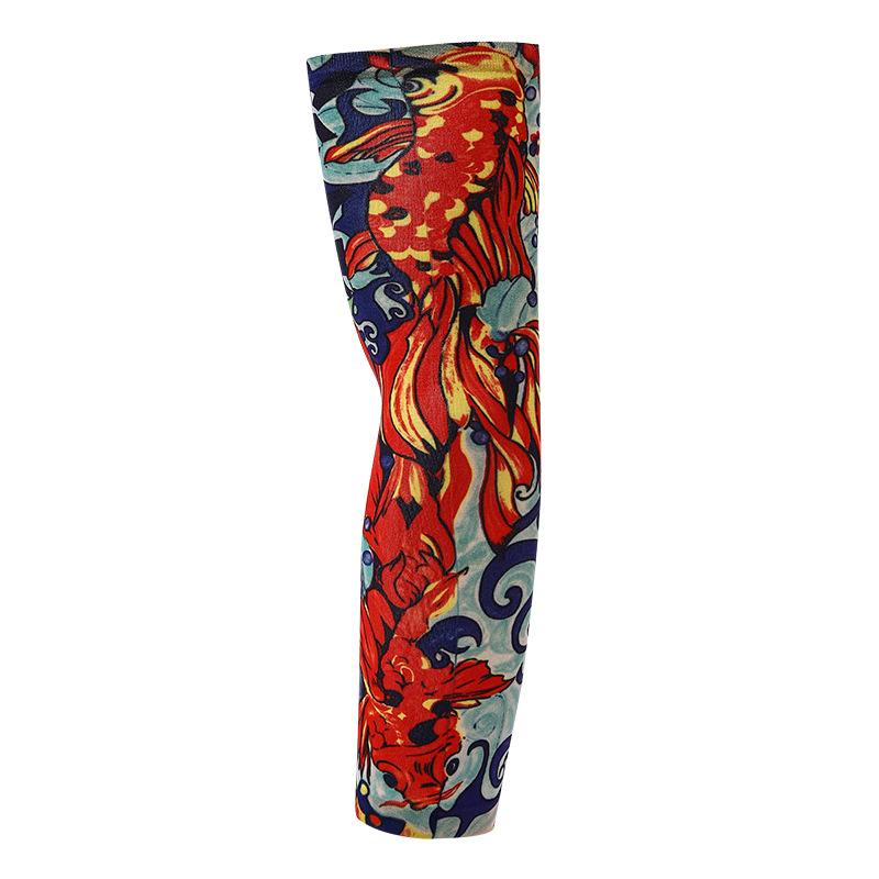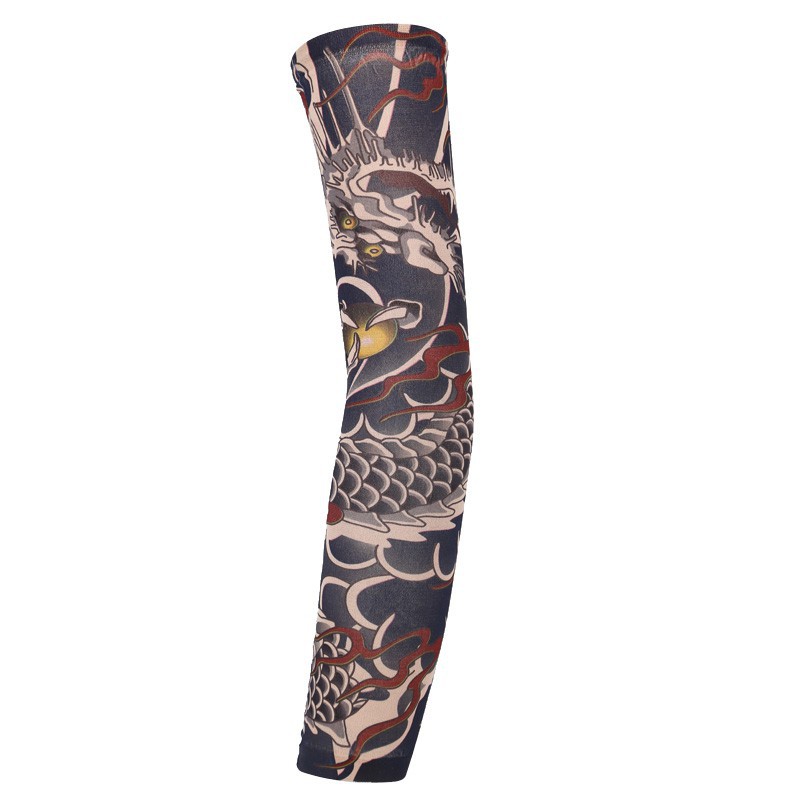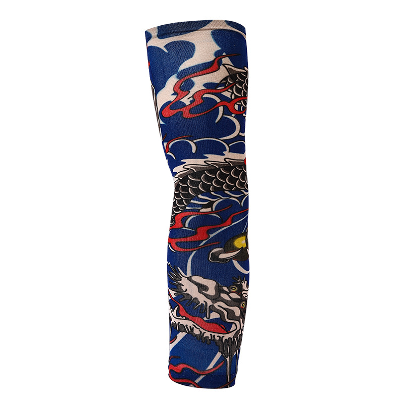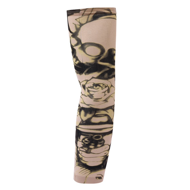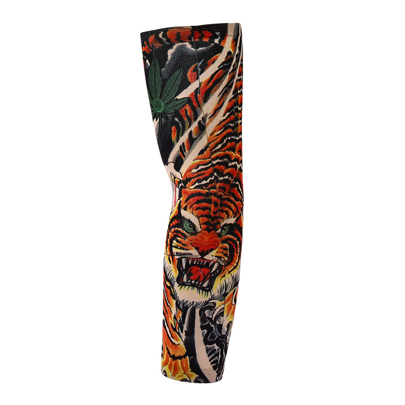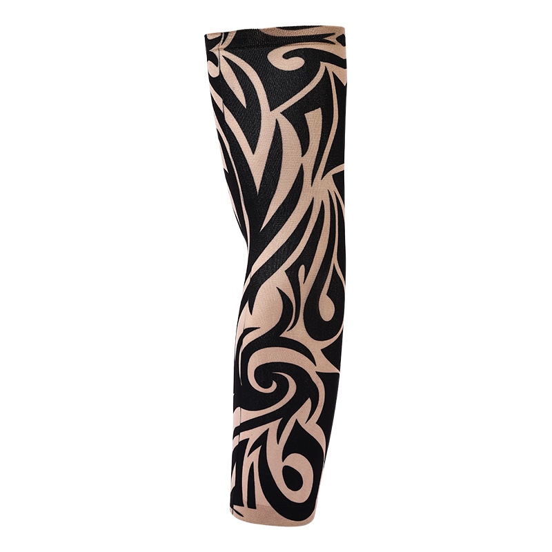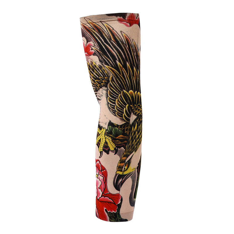 跨境单只纹身袖套夏季运动户外透气吸汗冰丝防晒有缝花臂刺青冰袖