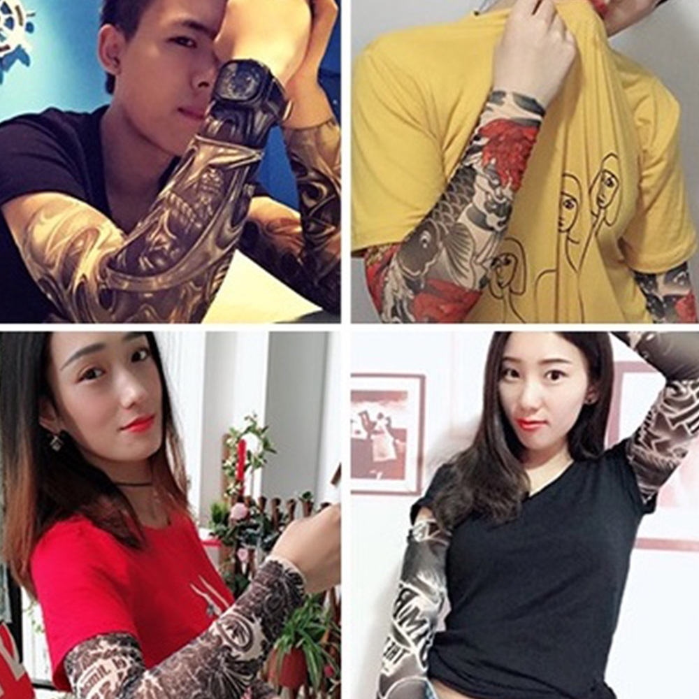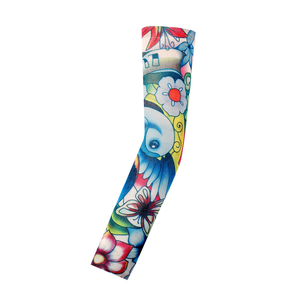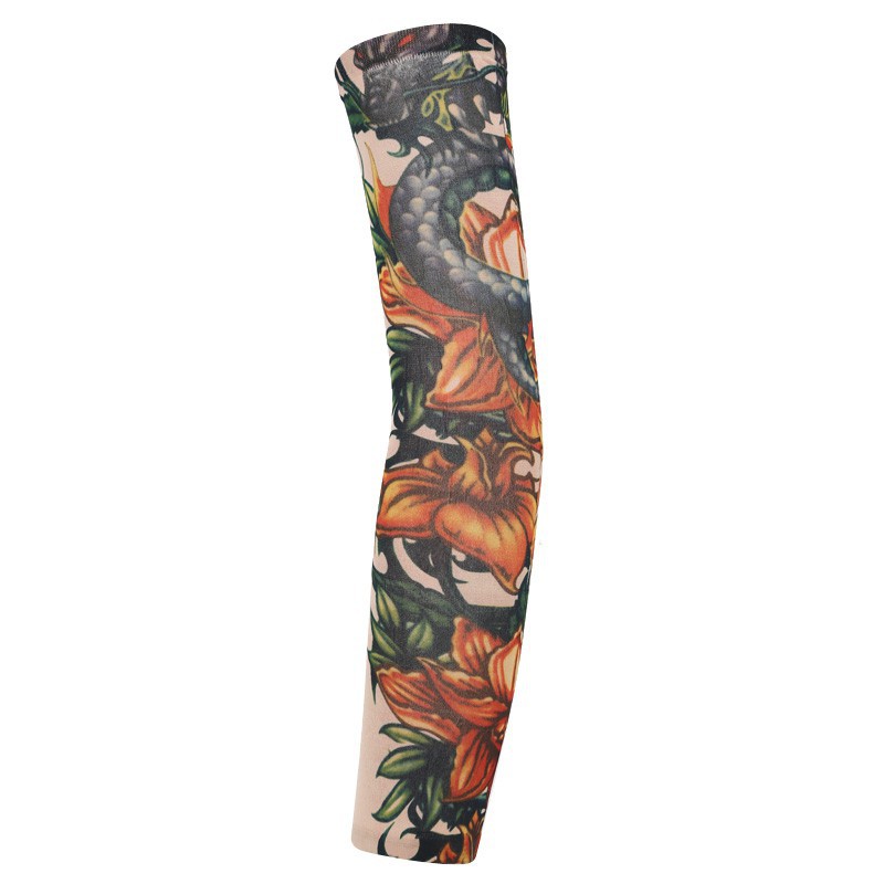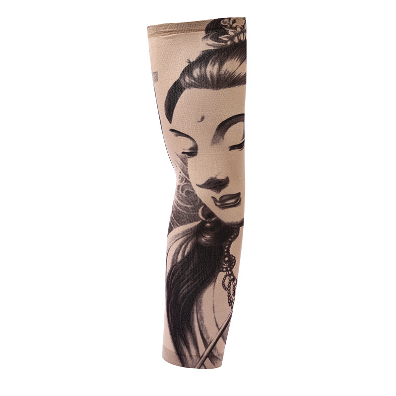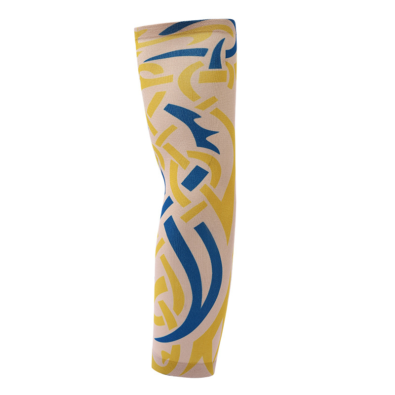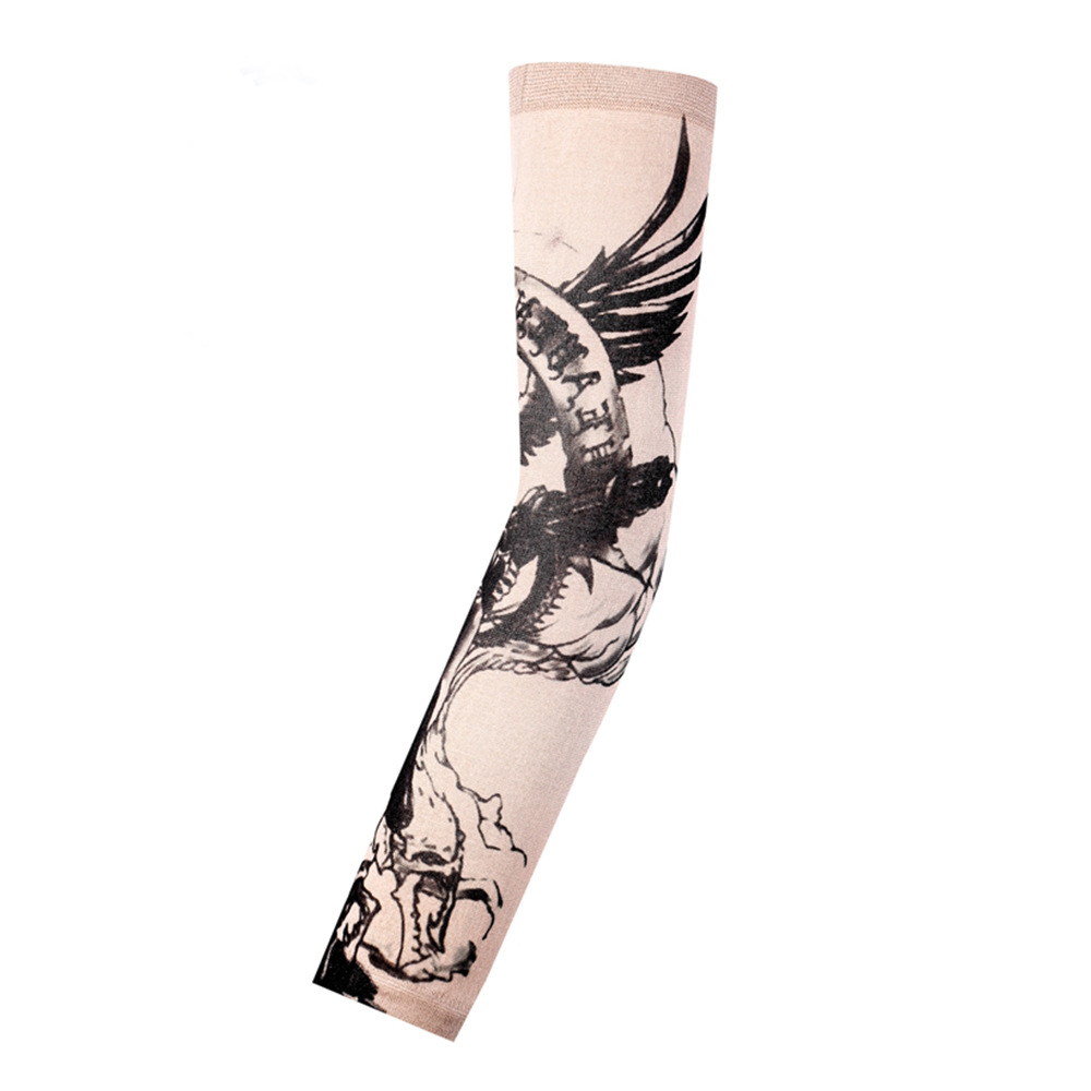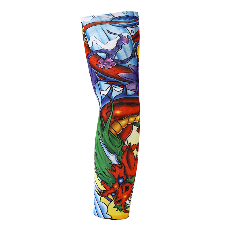 跨境单只纹身袖套夏季运动户外透气吸汗冰丝防晒有缝花臂刺青冰袖