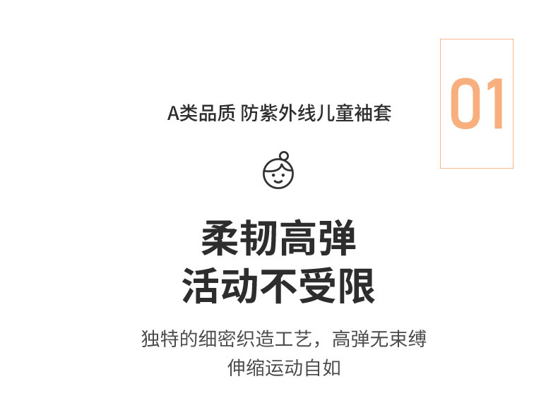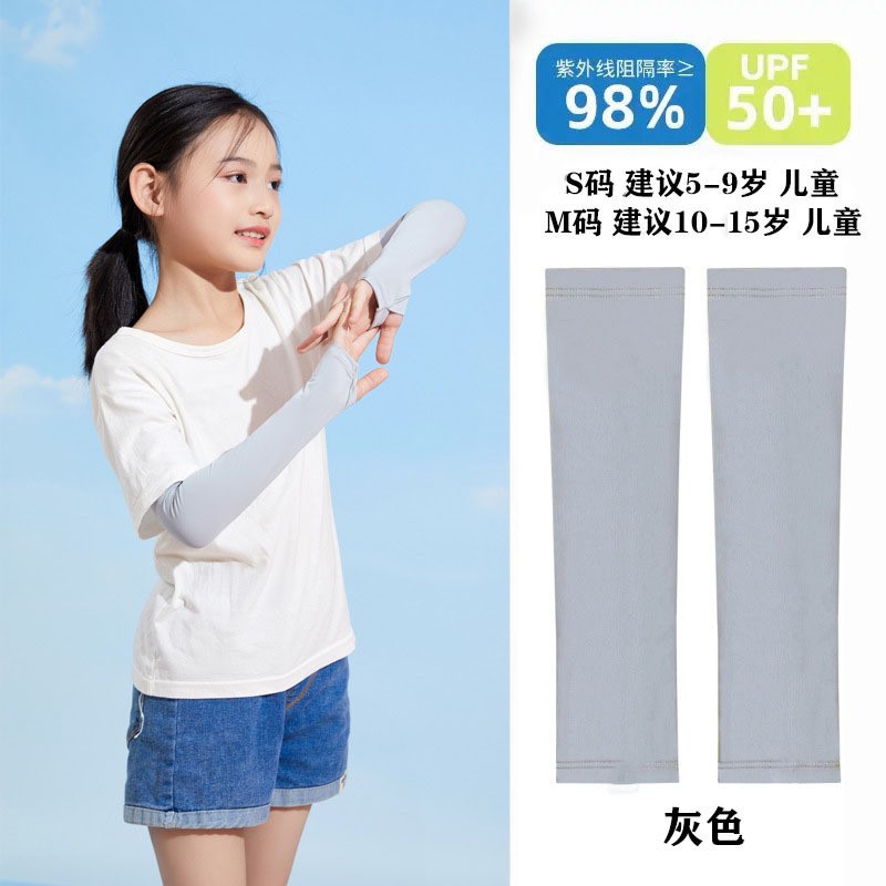 儿童冰袖防晒防紫外线UPF50+冰丝套袖套高弹透气学生户外批发代发