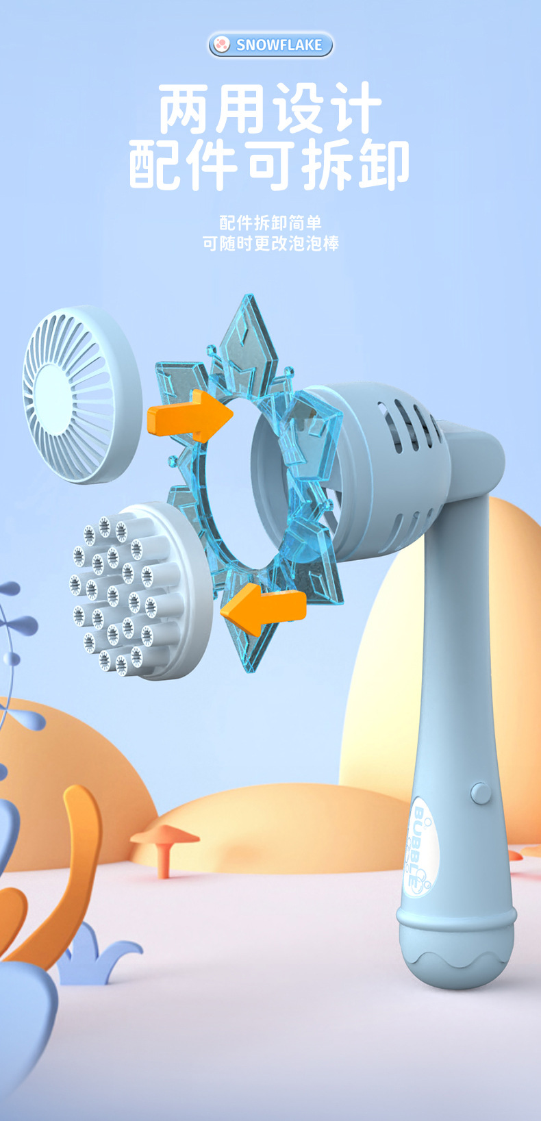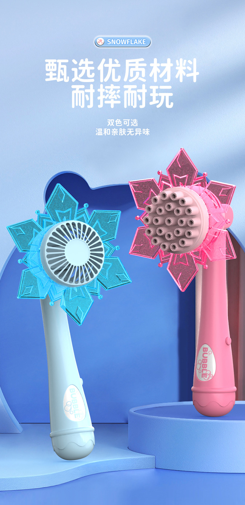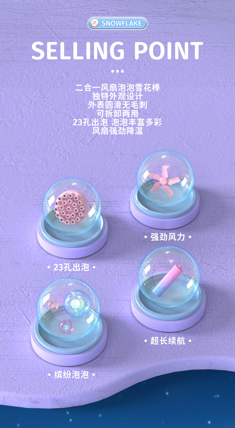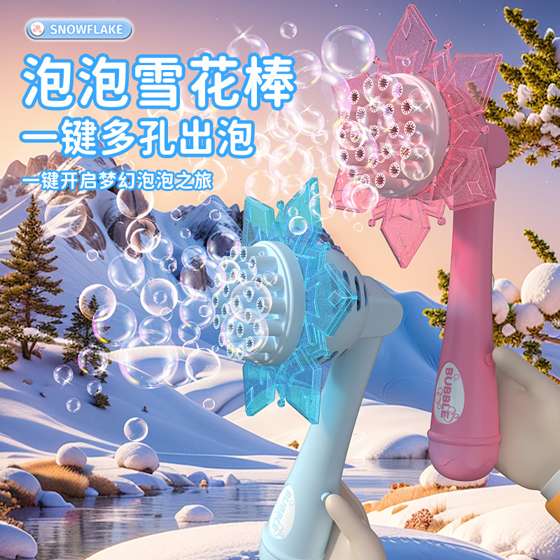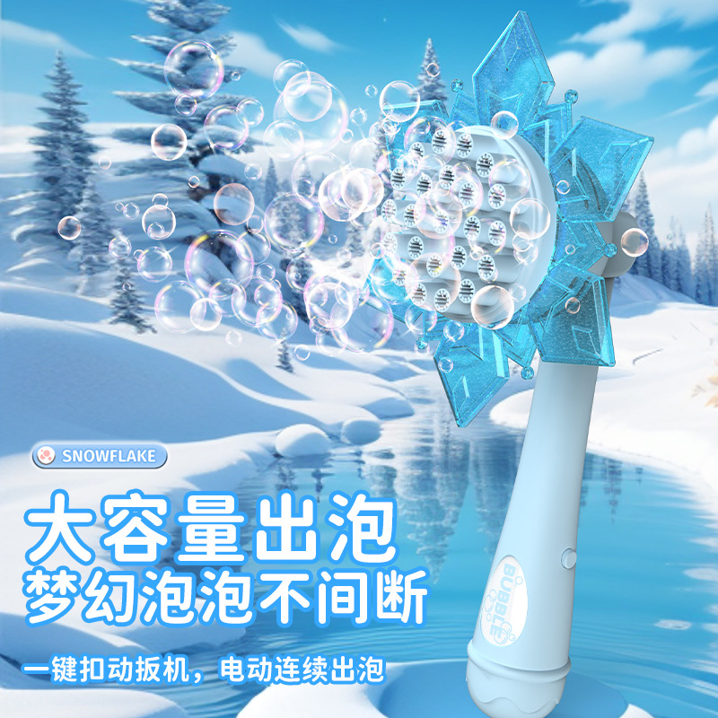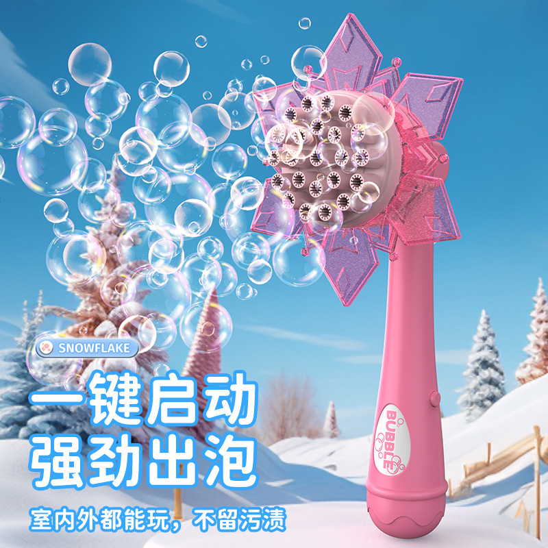 2026新款雪花泡泡机网红儿童手持电动二合一风扇吹泡泡棒玩具批发