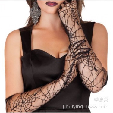 夏跨境热销连指防晒手套蜘蛛网防晒袖套暗黑系哥特式蛛网防晒袖套
