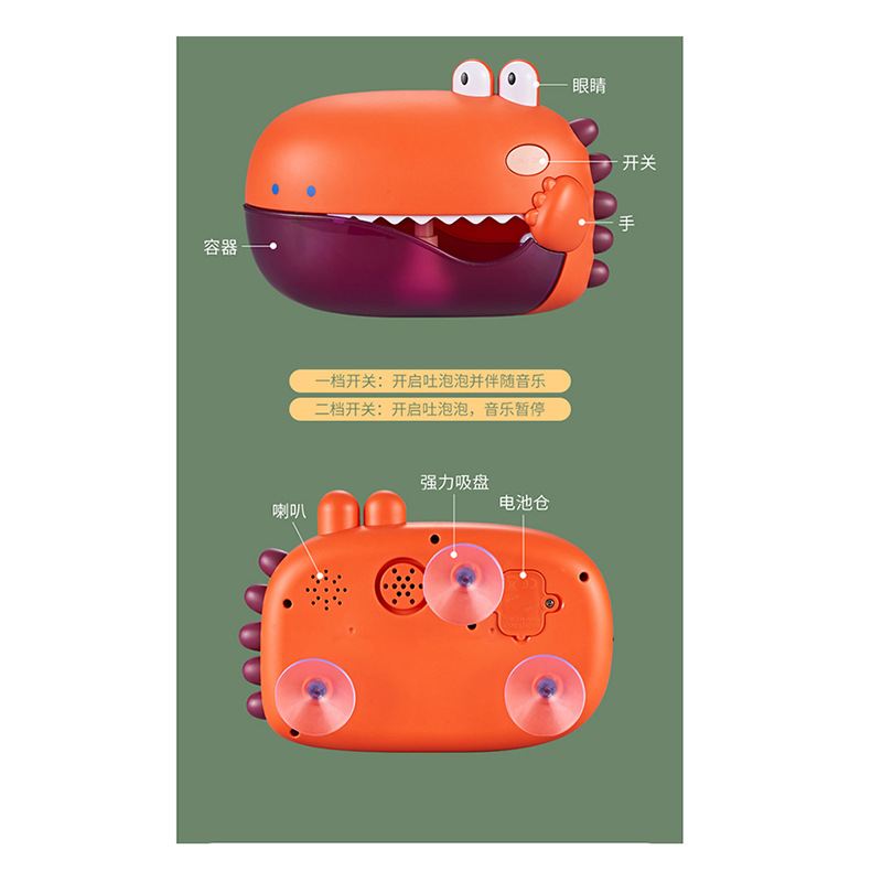 儿童欢乐恐龙吐泡泡机浴室音乐洗澡玩具