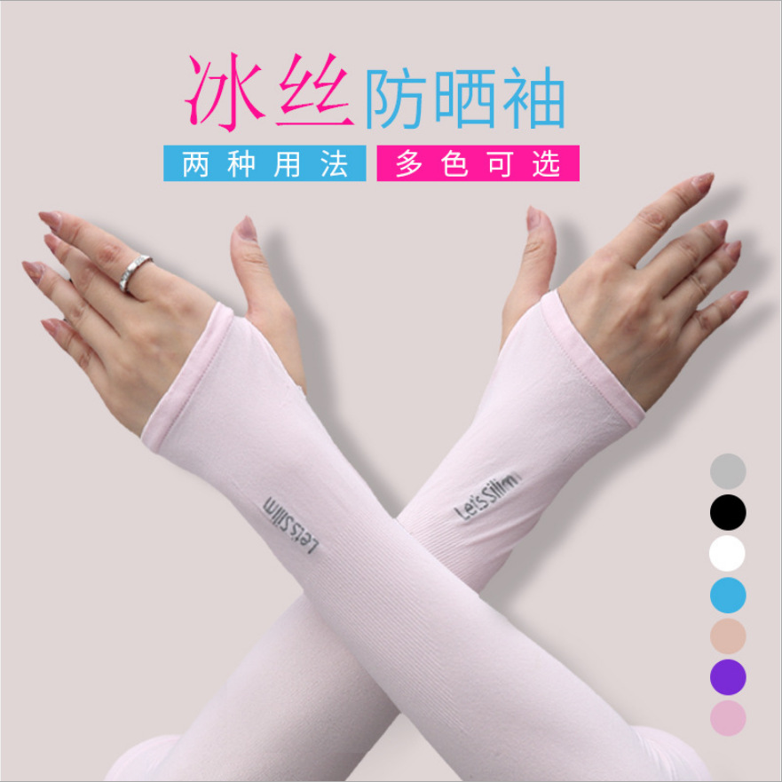 夏季冰袖男女防晒袖套户外骑行开车手袖护臂光板冰袖简约纯色手套