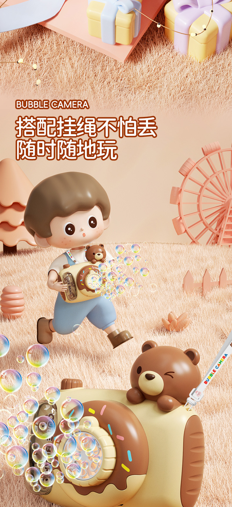 2025新款泡泡机儿童手持全自动吹泡泡照相机泡泡水补充液女孩玩具