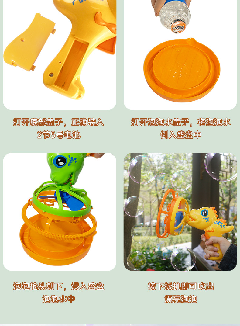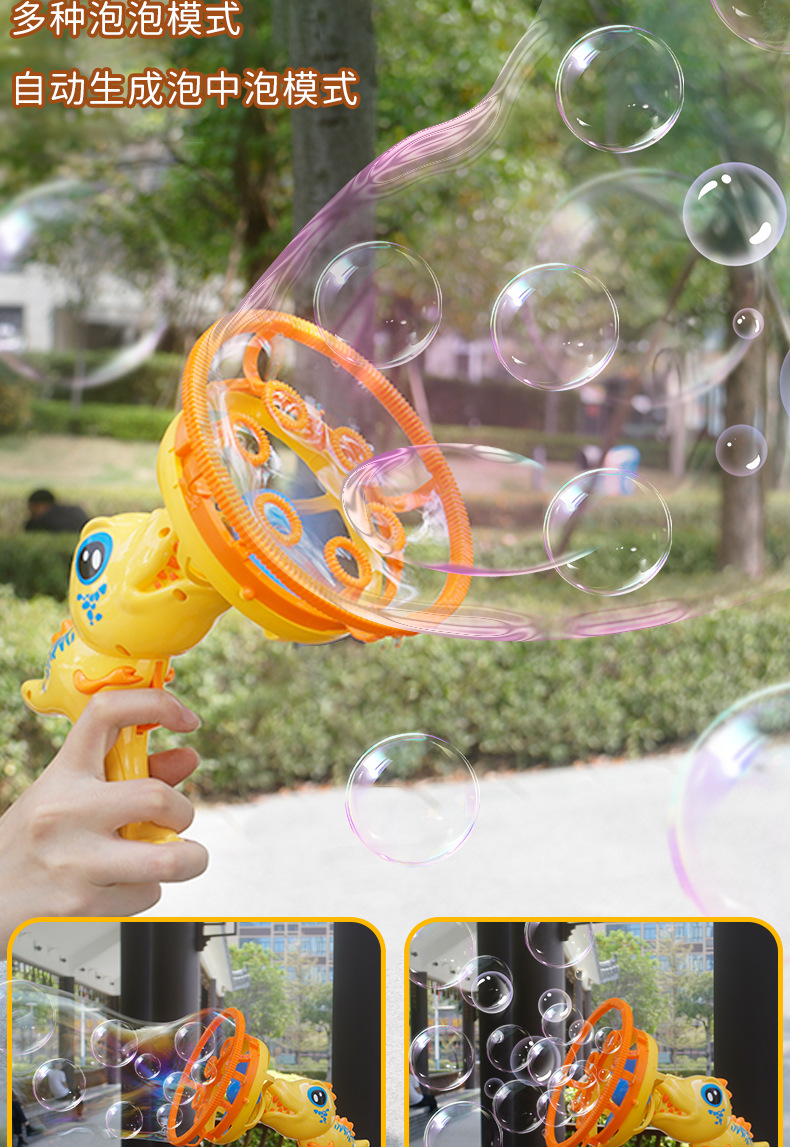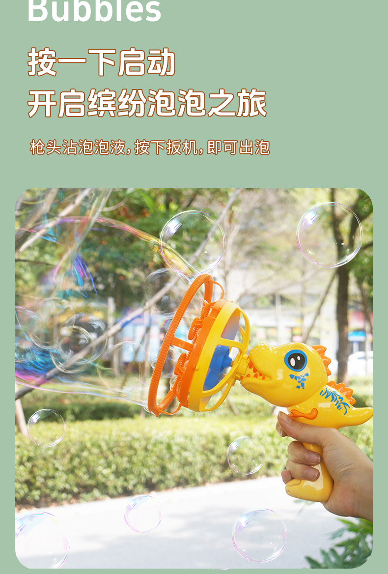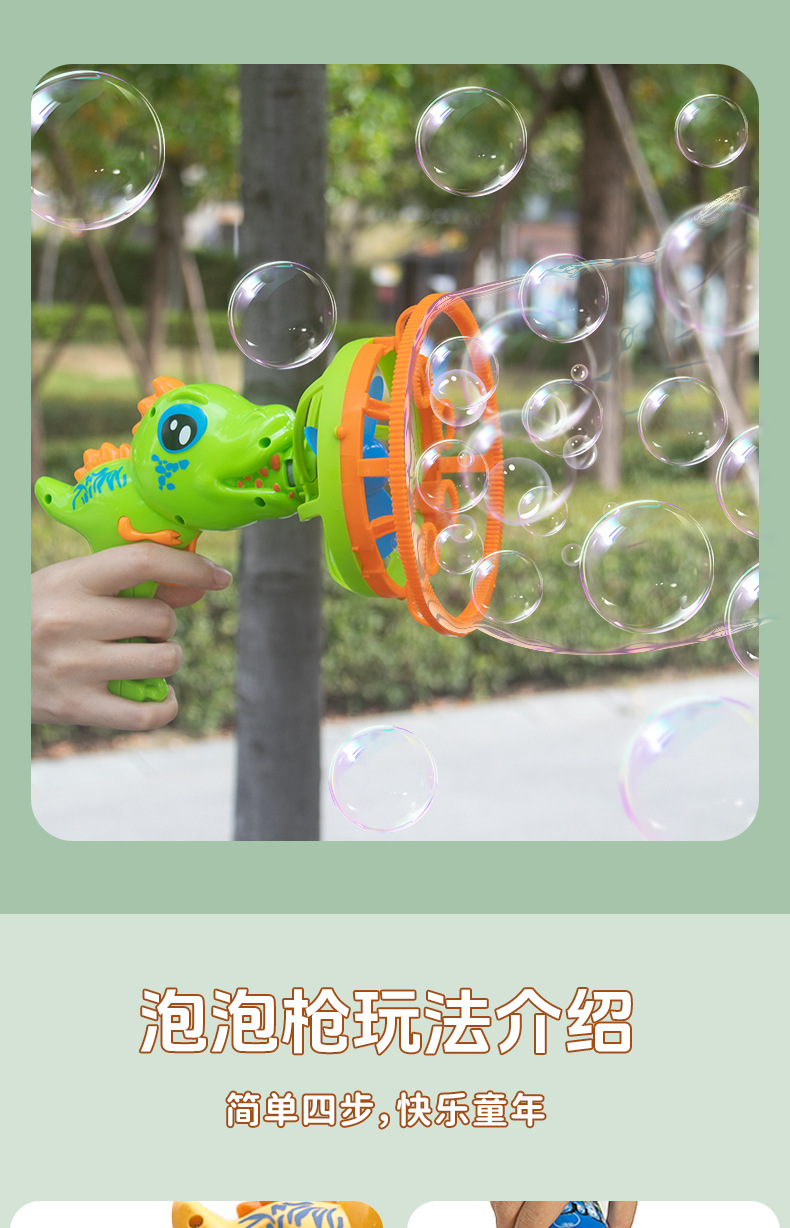 新款小恐龙泡泡枪手持户外全自动充电不漏水创意亲子互动儿童玩具