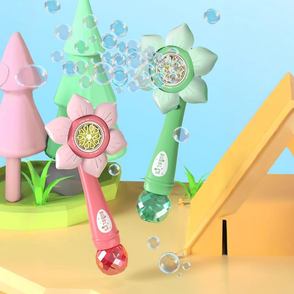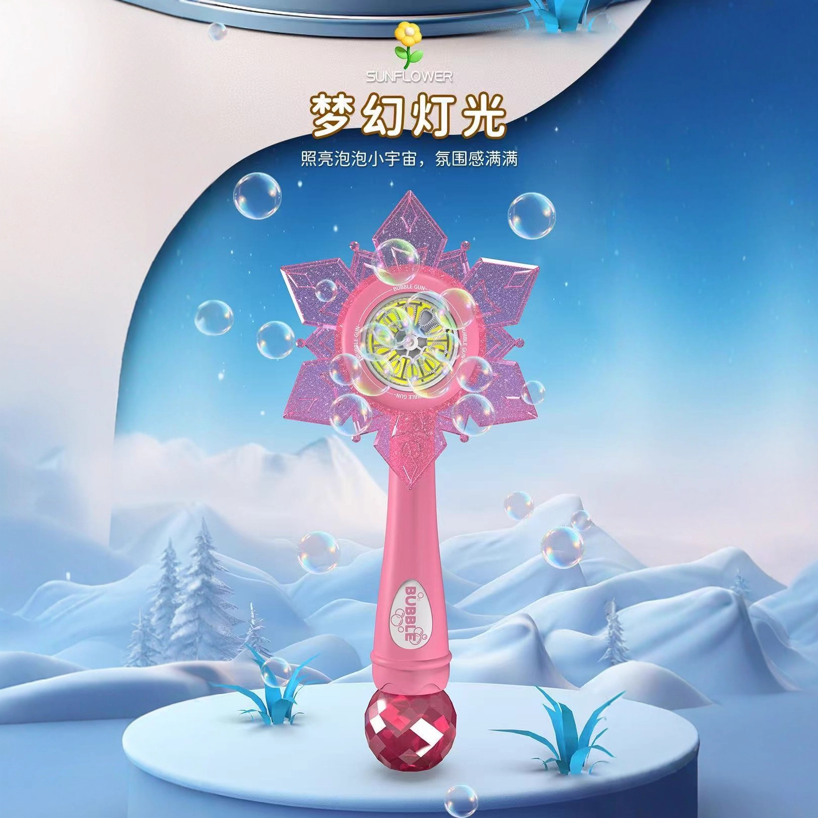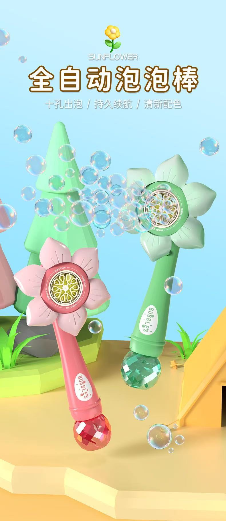 新款跨境雪花二合一向日葵儿童网红加特林泡泡枪花洒泡泡机泡泡水