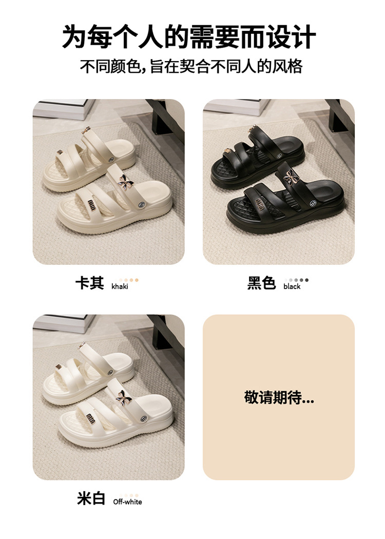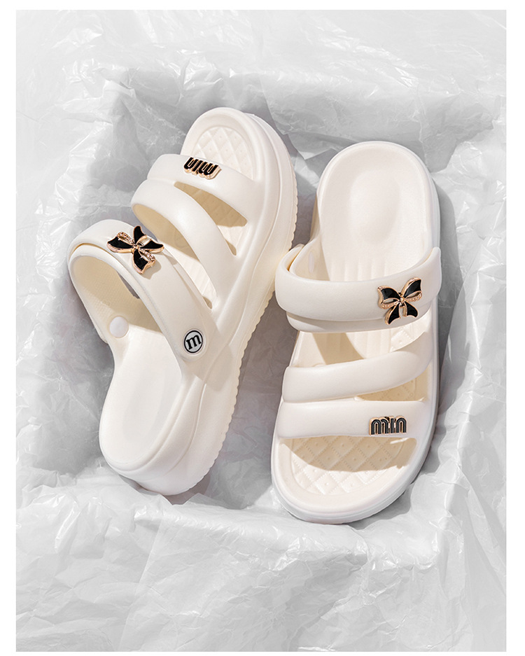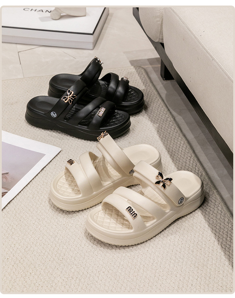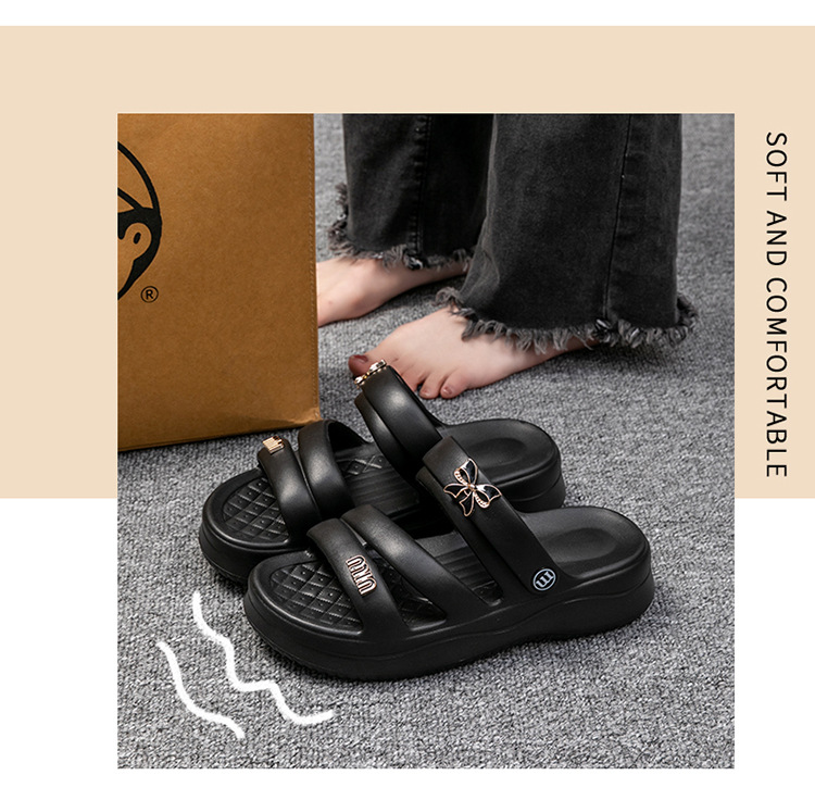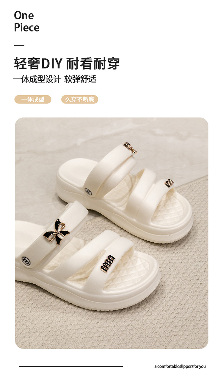 一件代发夏季新款厚底蝴蝶点缀女士拖鞋外穿沙滩鞋休闲室内女凉拖