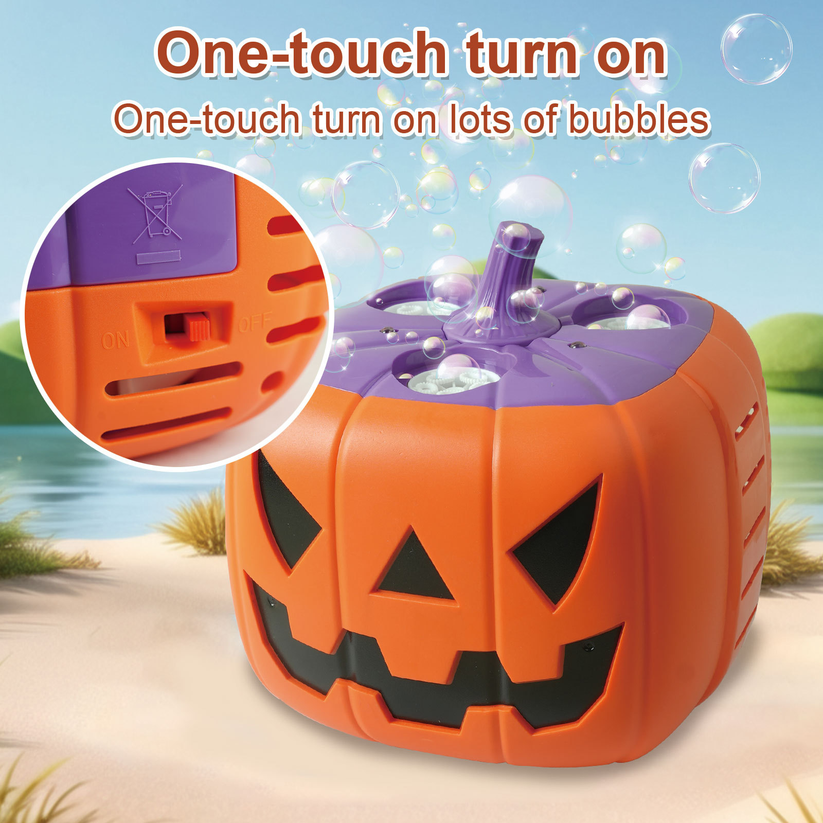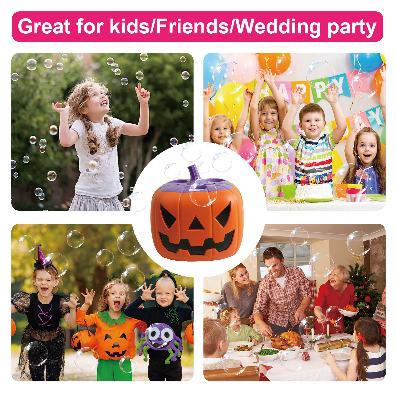 跨境新品万圣节装饰派对摆件 可充电灯光音乐自动多孔南瓜泡泡机