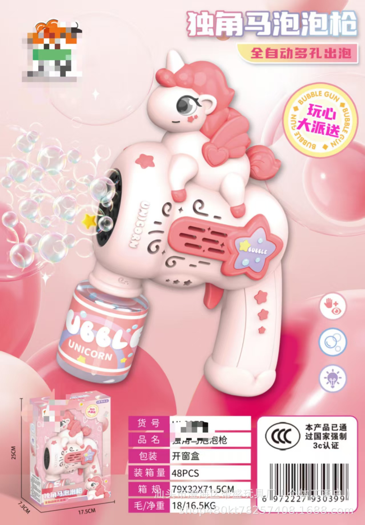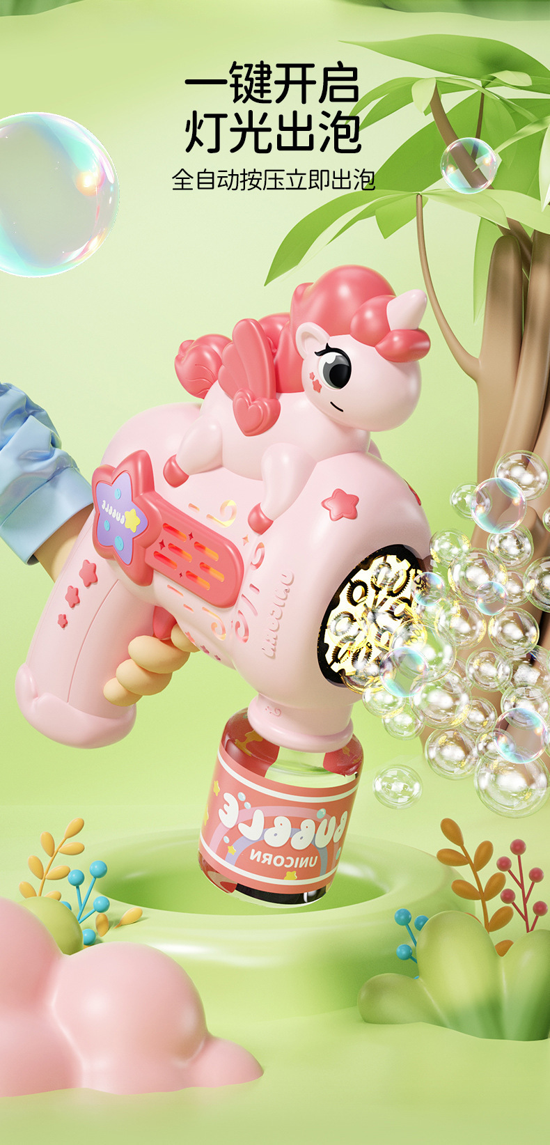 跨境爆款独角马泡泡机多孔手持加特林泡泡枪电动泡泡男孩玩具批发