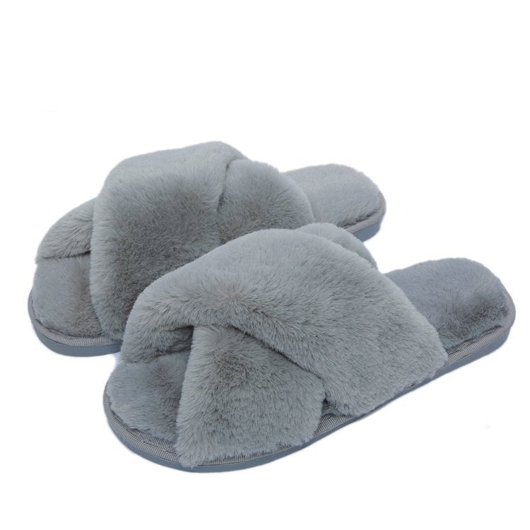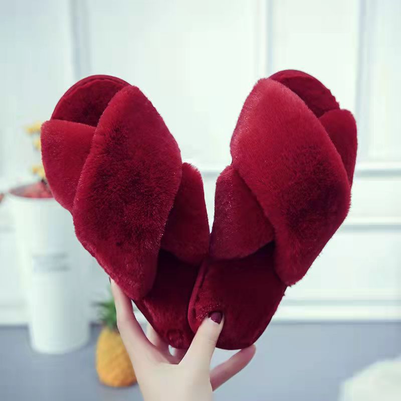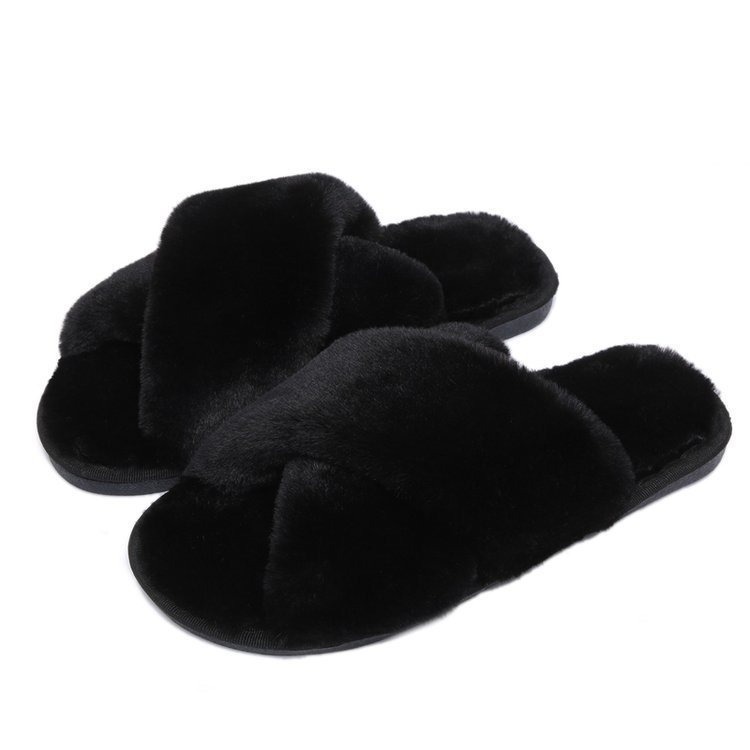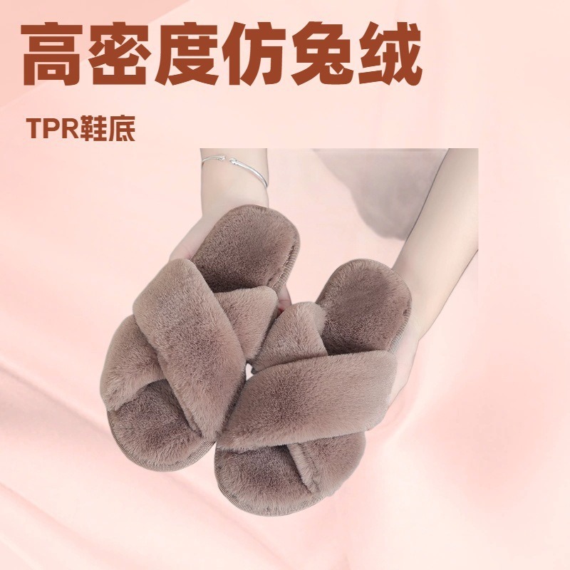 大码毛毛拖鞋女秋冬新款棉拖鞋厚底家用拖鞋交叉家居拖鞋厂家批发