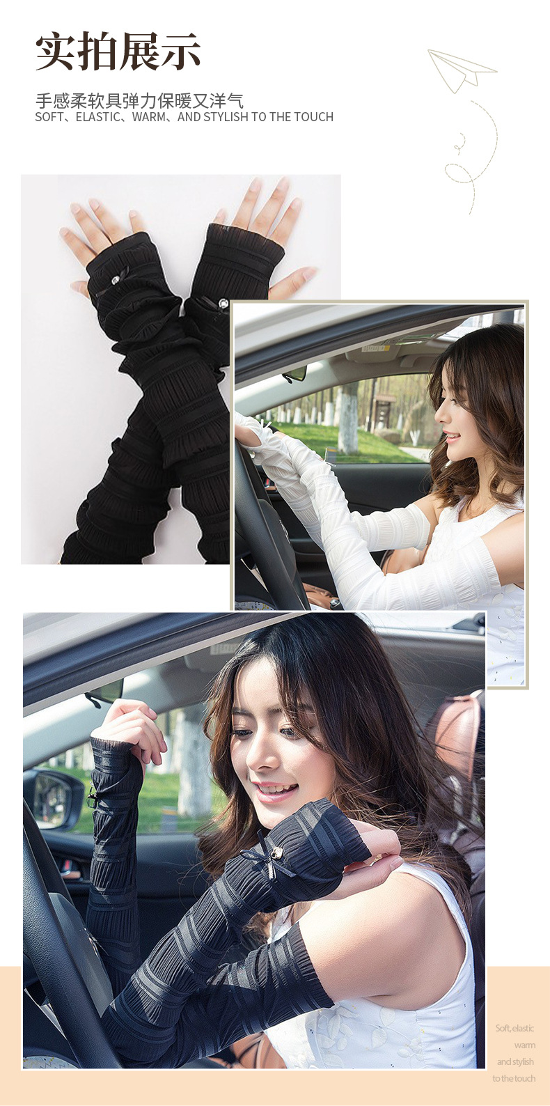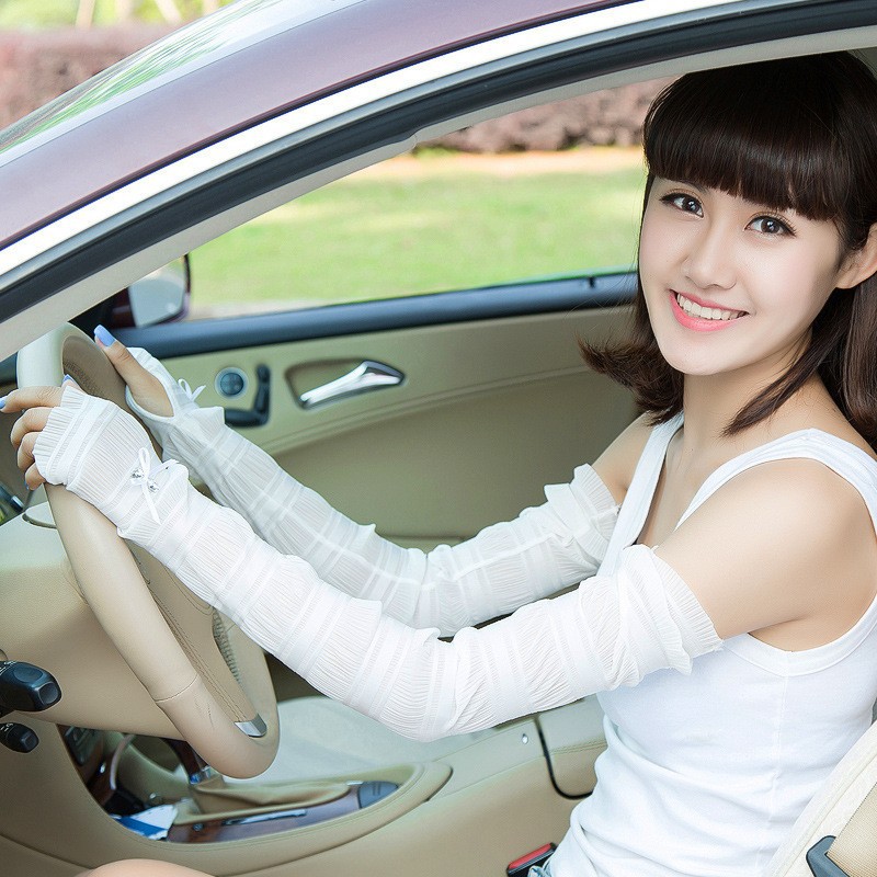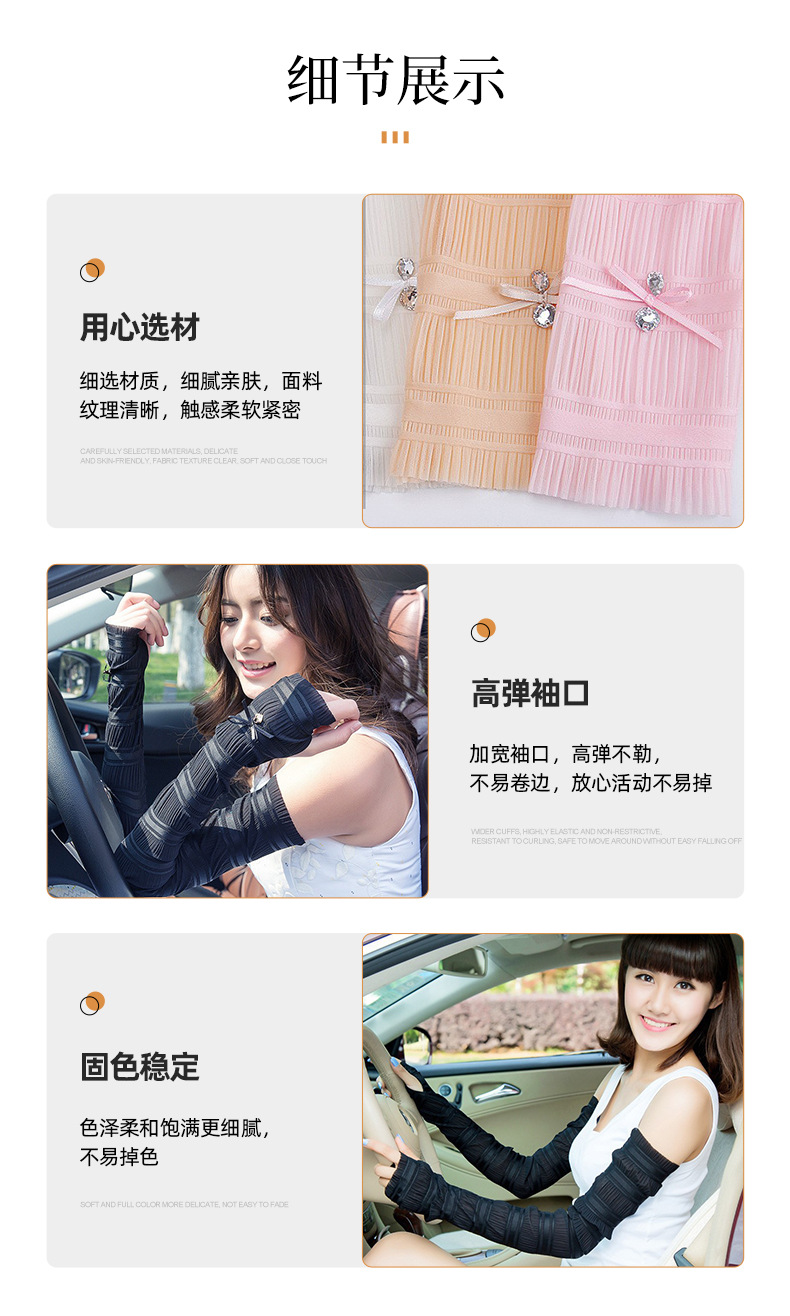 秋季防晒袖套男女开车骑行薄长款户外手工缝钻遮阳手臂套冰丝袖套
