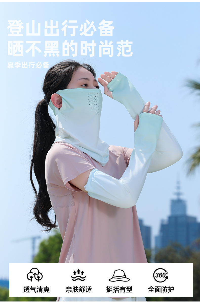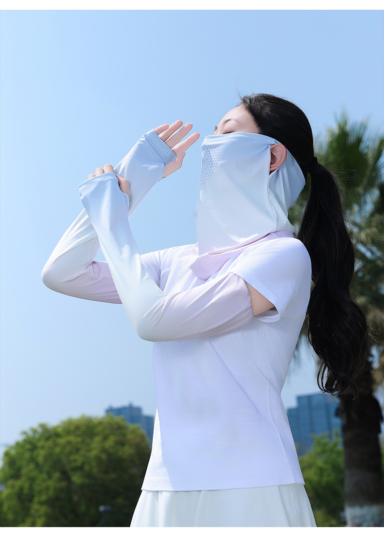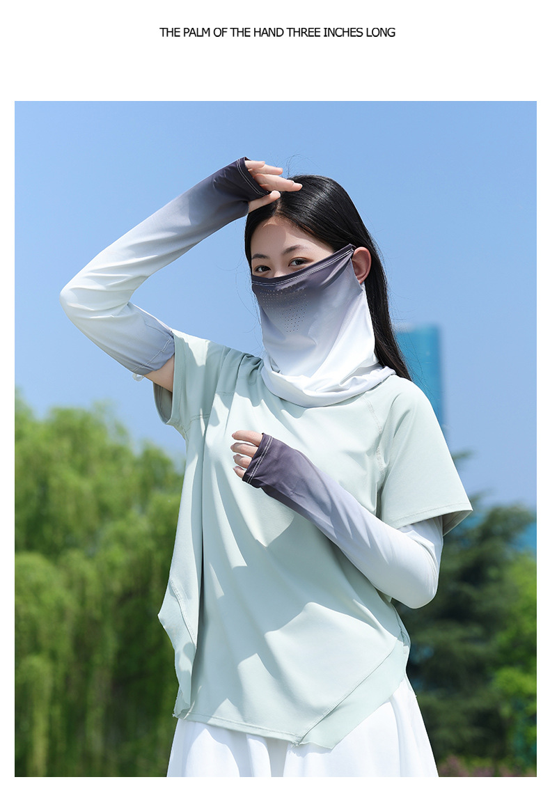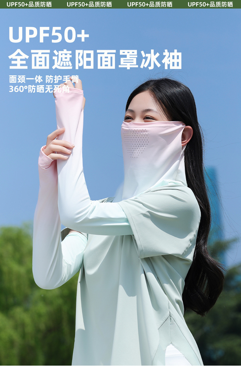 升级面罩防晒冰袖女夏2025新款宽松防紫外线遮阳冰丝袖套开车骑行