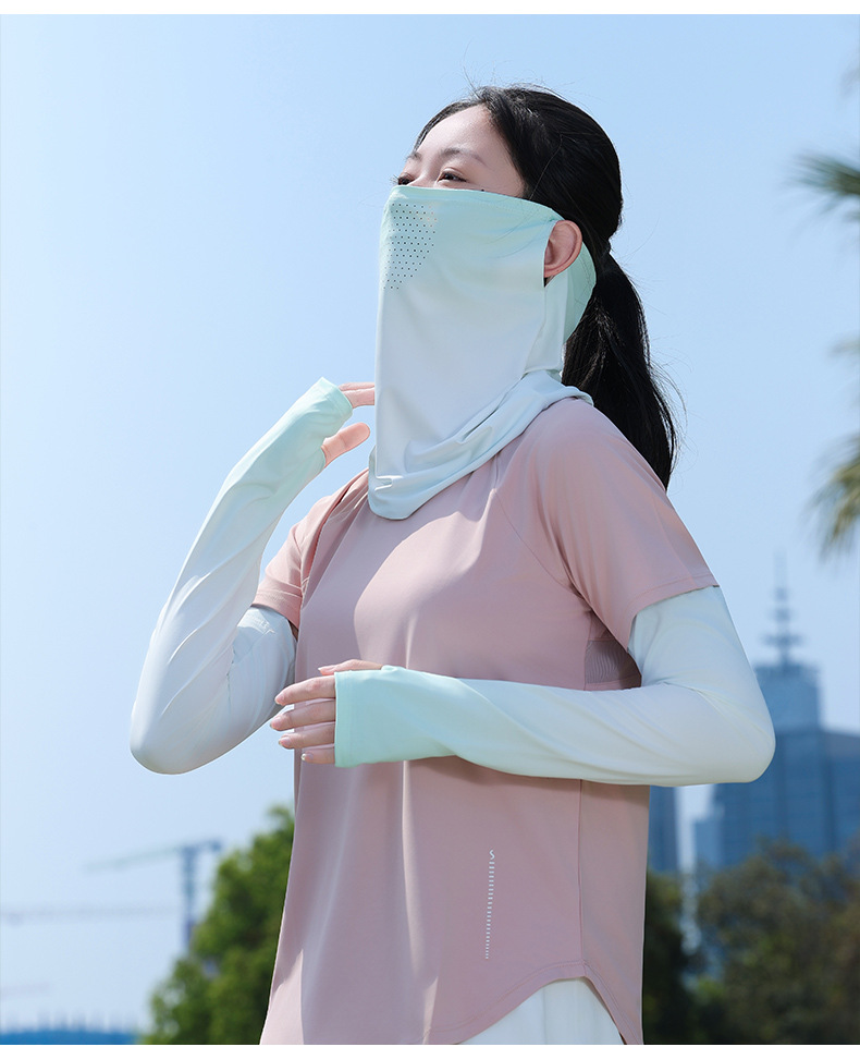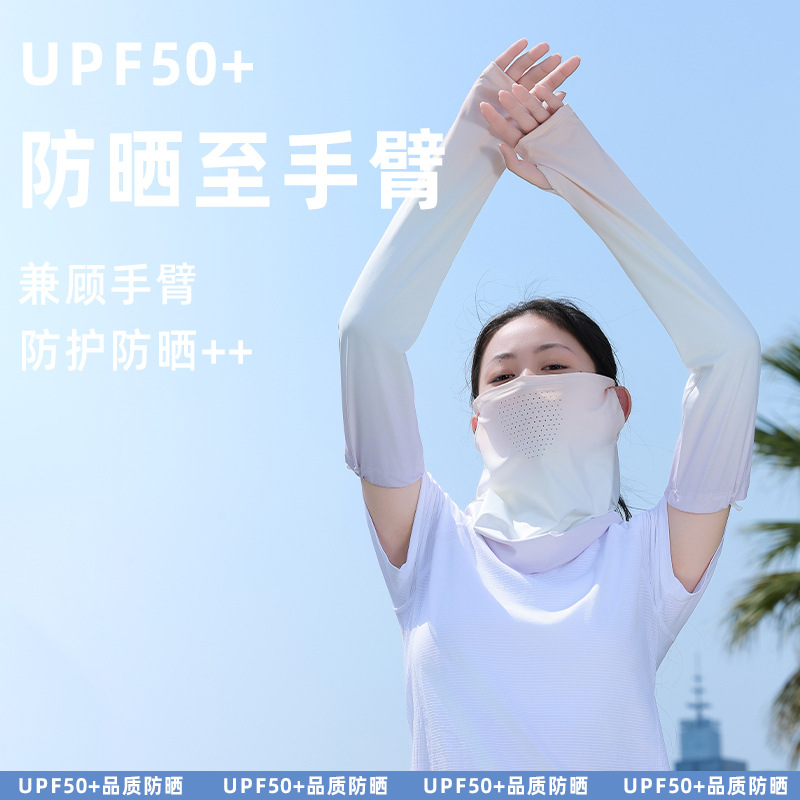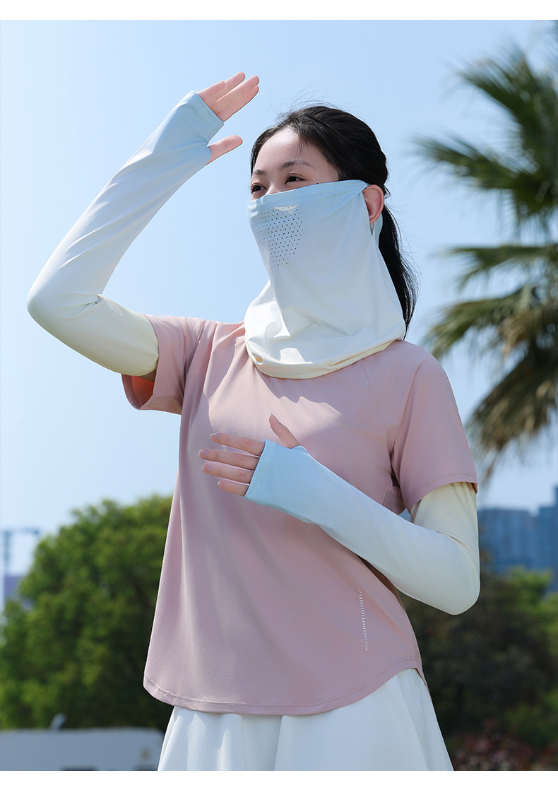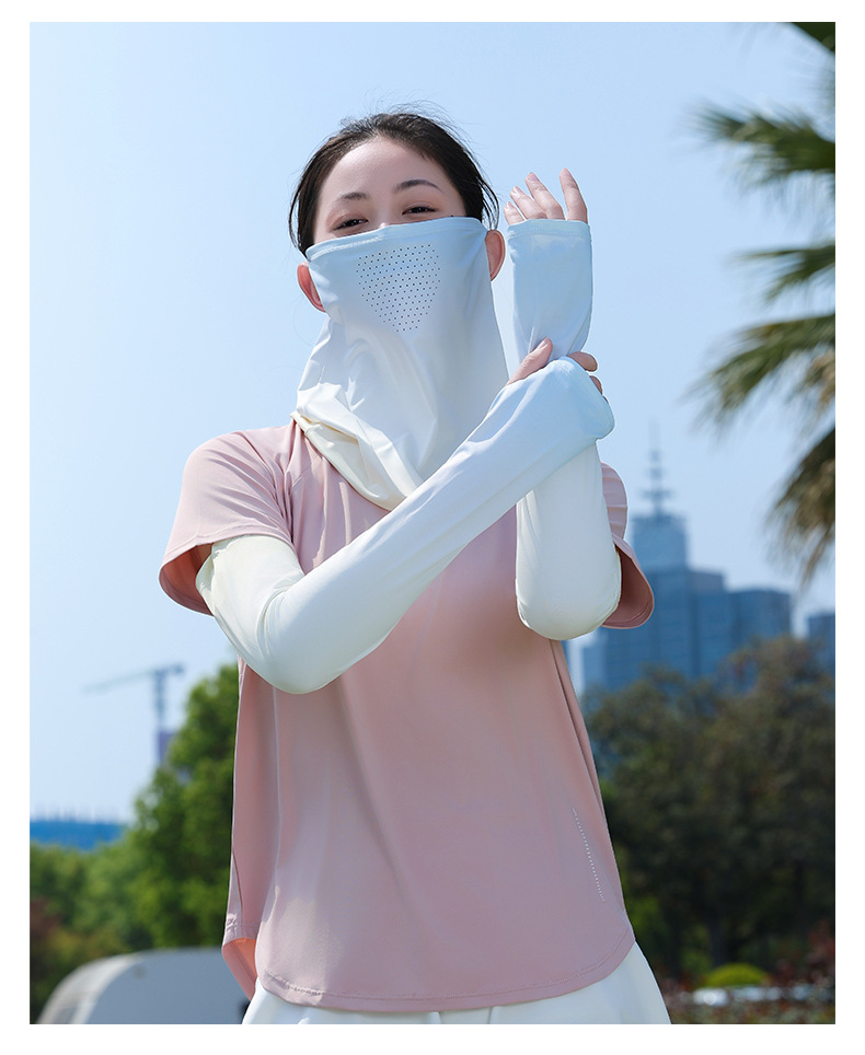 升级面罩防晒冰袖女夏2025新款宽松防紫外线遮阳冰丝袖套开车骑行