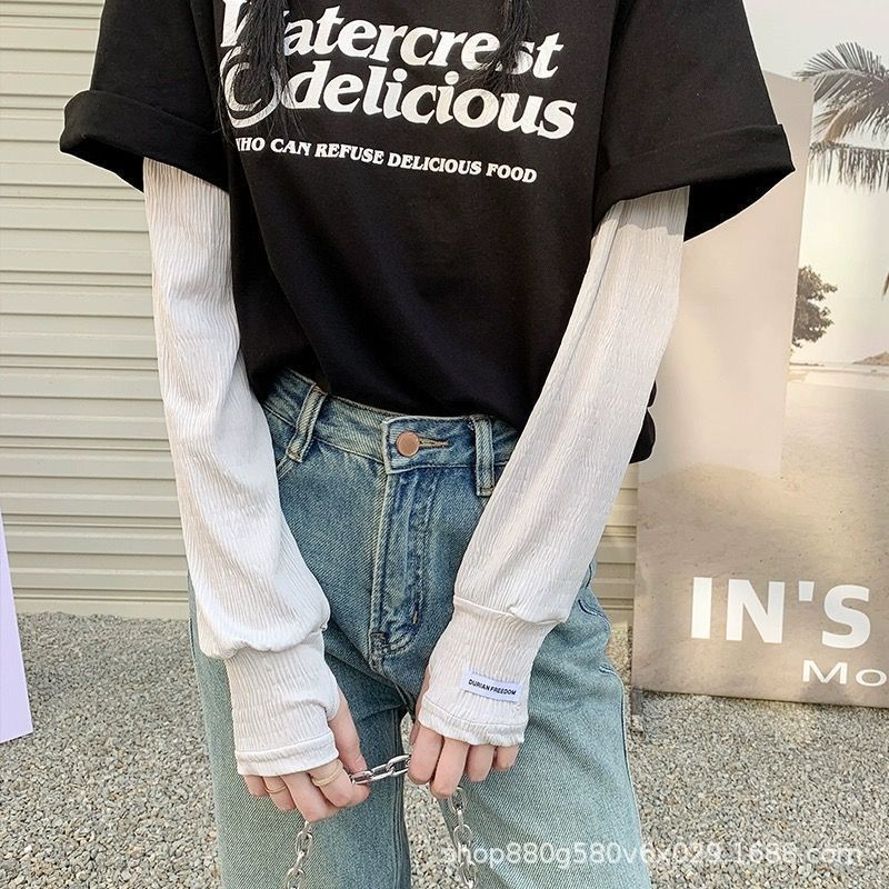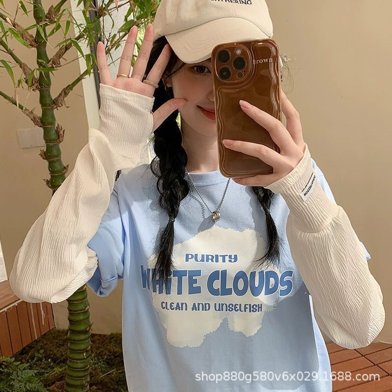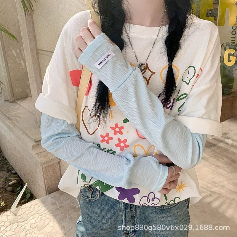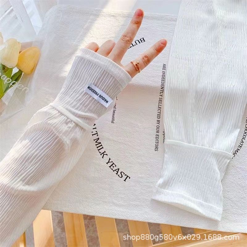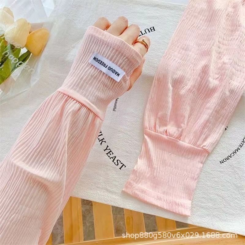 压皱冰丝防晒袖套女宽松大码开车防紫外线夏季冰袖骑行遮阳手套