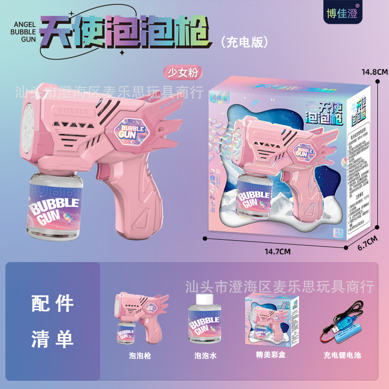 新款泡泡枪手持 儿童天使泡泡机全自动 儿童户外玩具带灯泡泡机