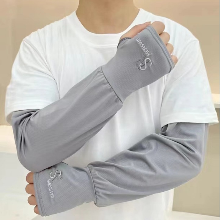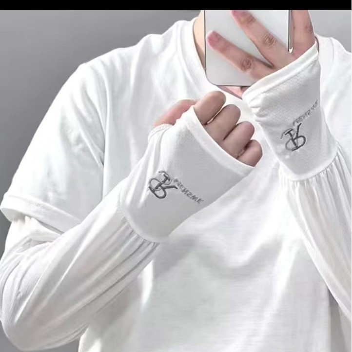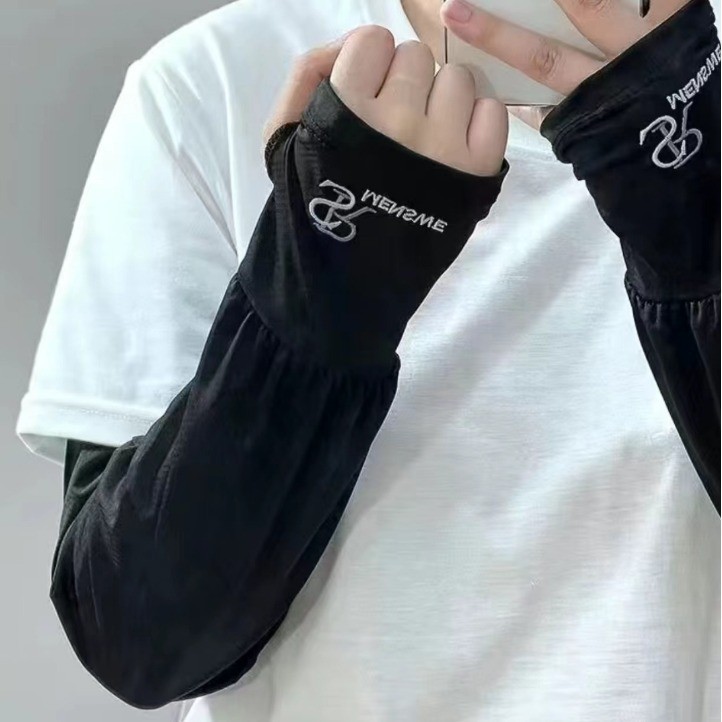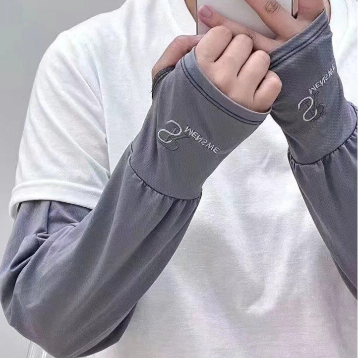 新款夏季防晒冰袖刺绣冰袖加大版防紫外线时尚袖套 外出防晒袖套