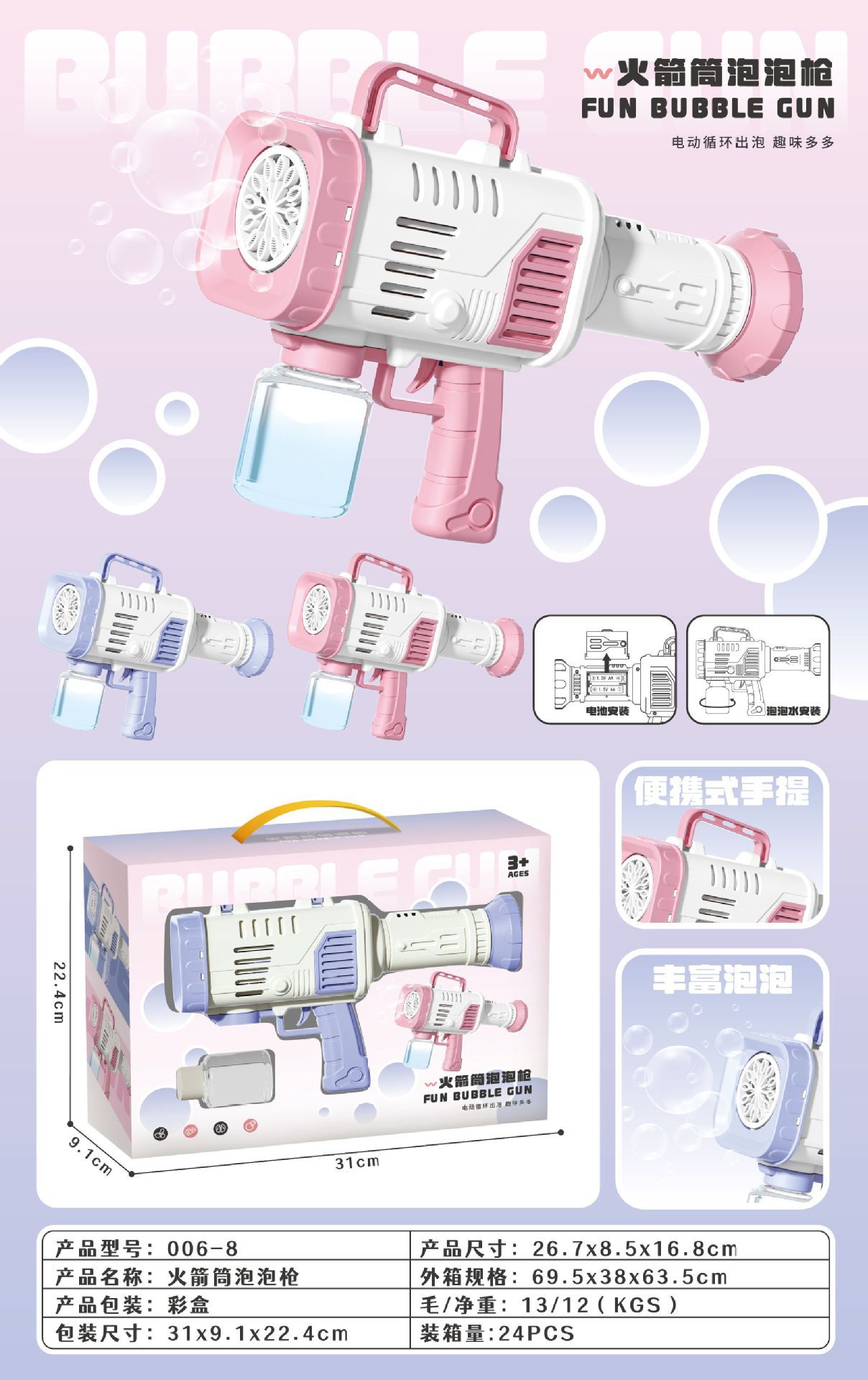 泡泡机2024新款电池款火箭筒12孔电动手持儿童玩具全自动泡泡枪