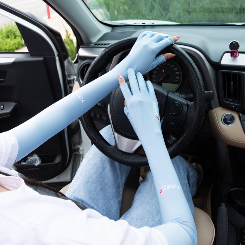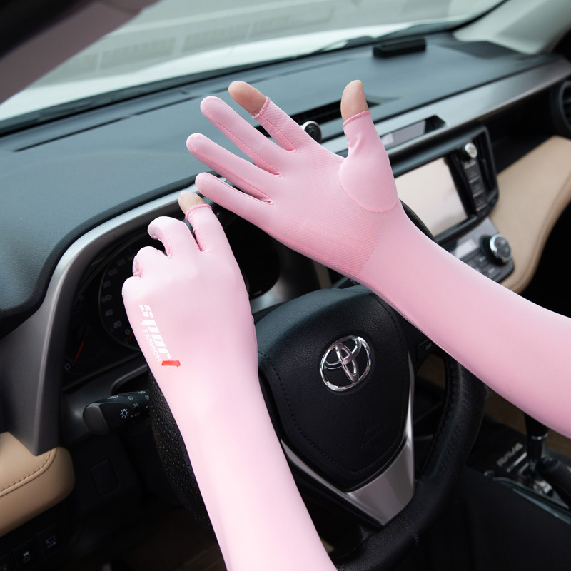 批发冰丝半指袖套男春夏防晒手套户外骑行运动开车自行车手背袖套