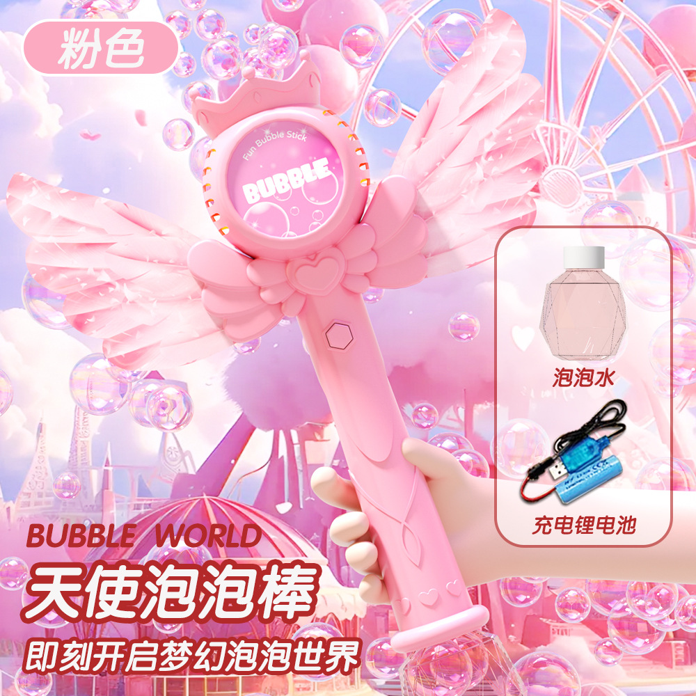 跨境新款网红小仙女电动泡泡棒婚礼天使泡泡机儿童玩具泡泡枪礼物