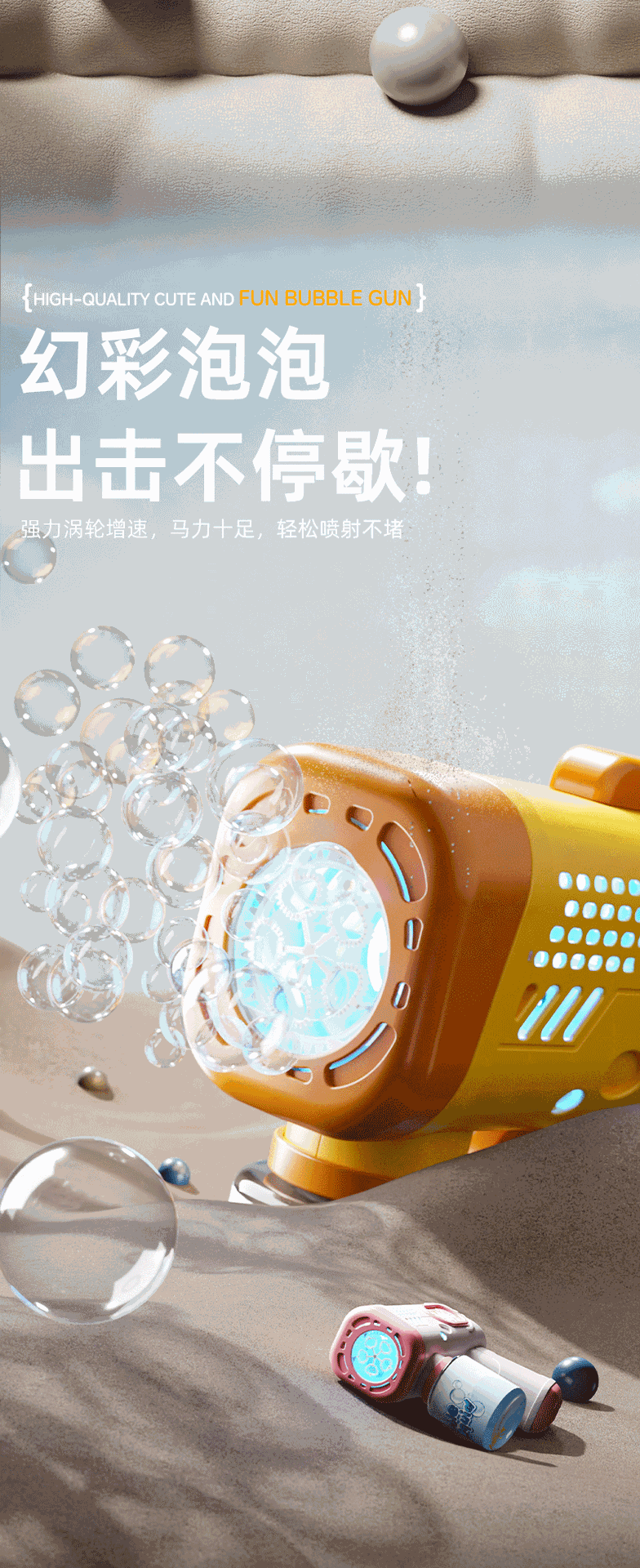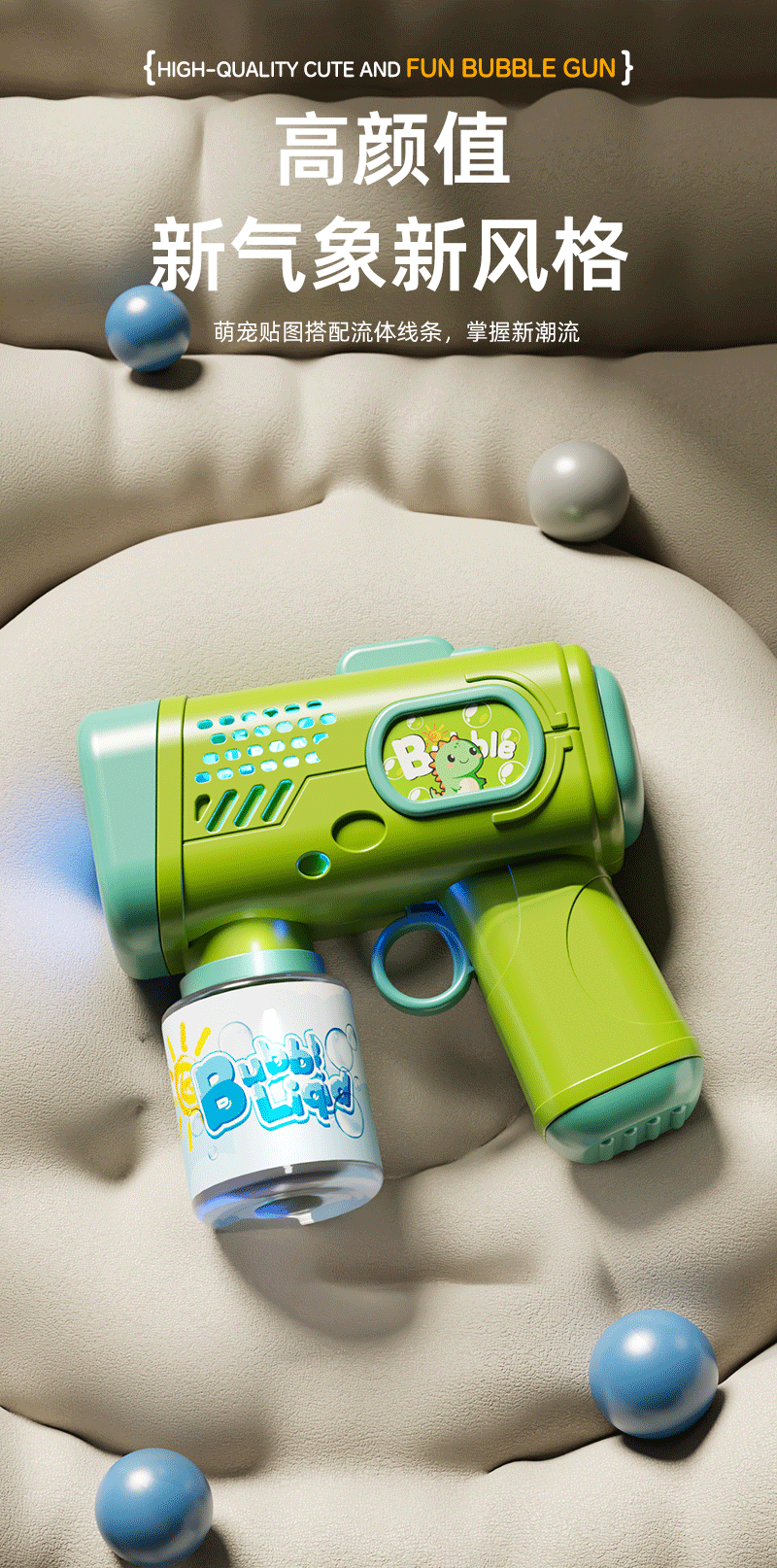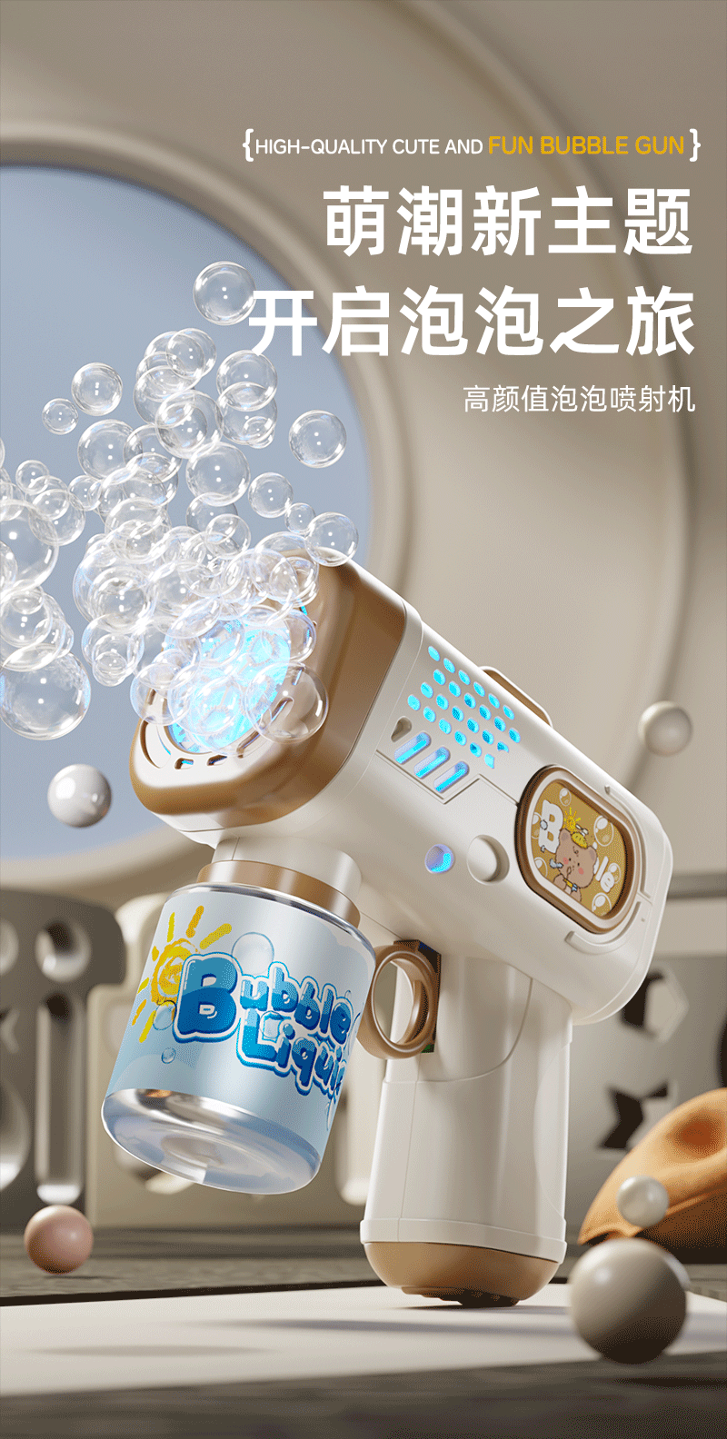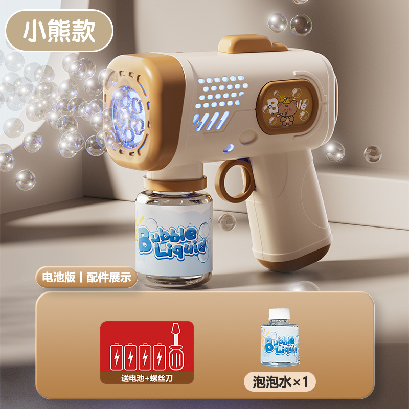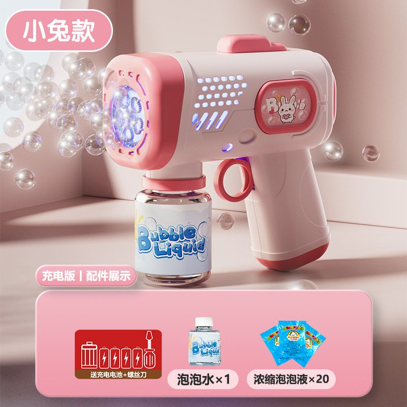 跨境新款萌宠泡泡枪儿童手持玩具全自动多孔灯光出泡夜市地摊批发