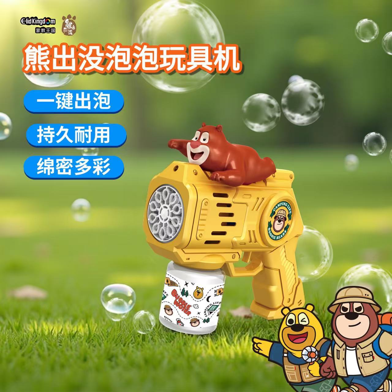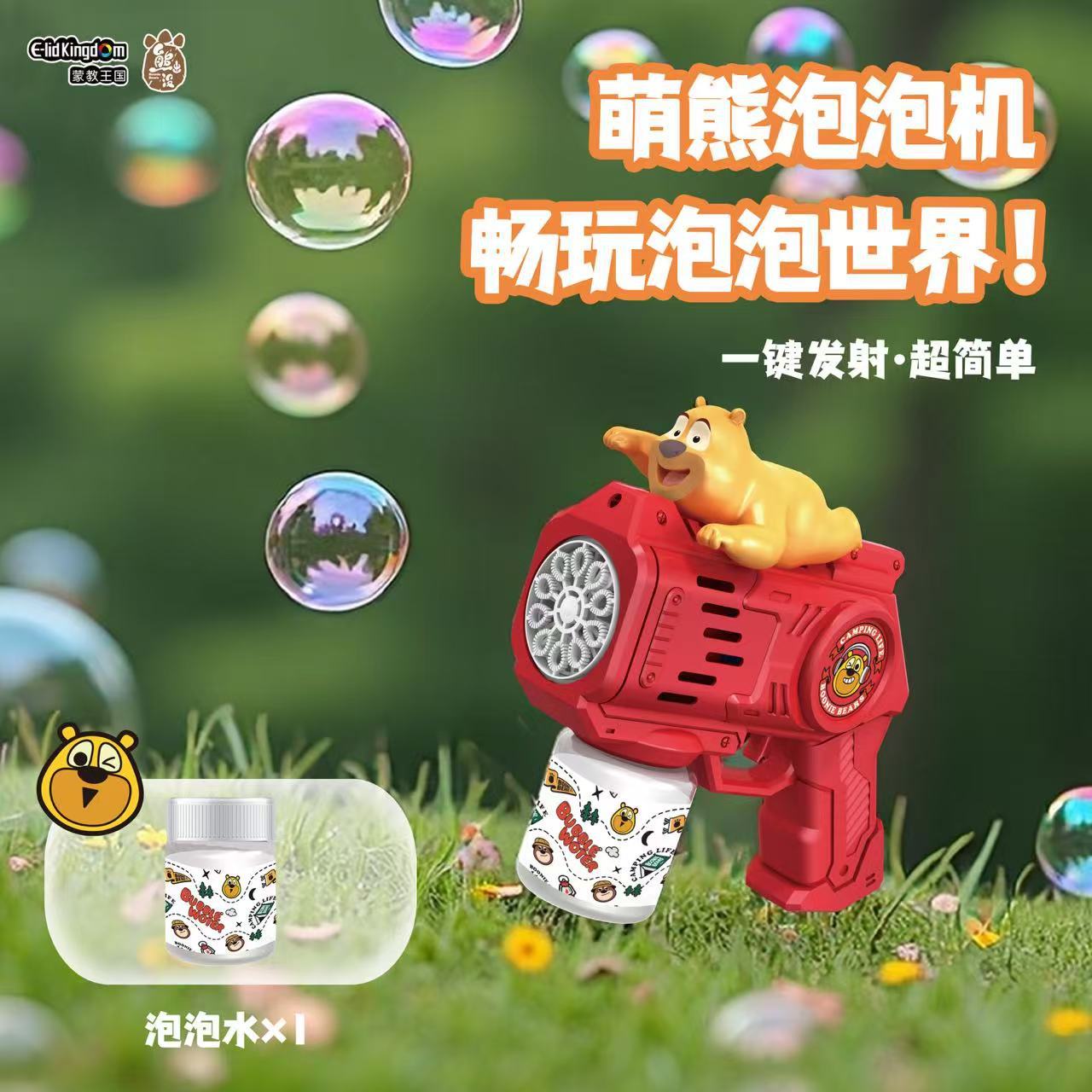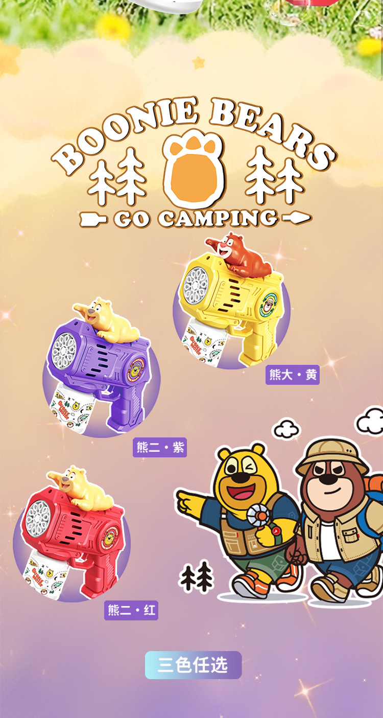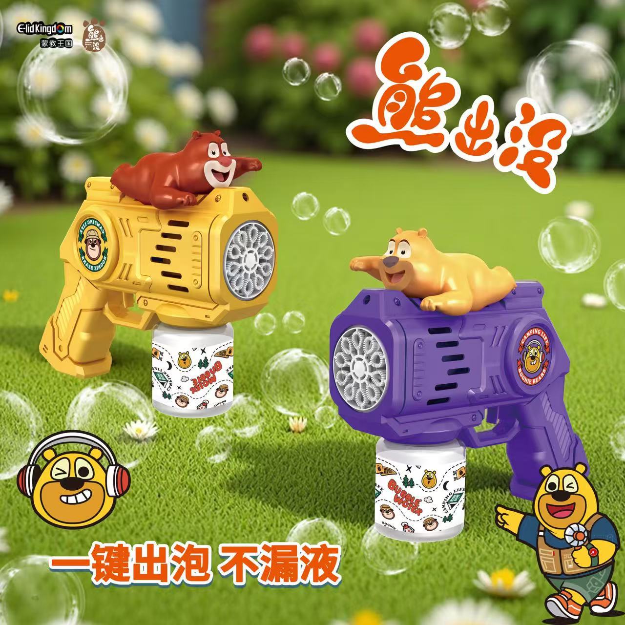 正品熊出没泡泡棒电动全自动吹泡泡儿童玩具网红卡通风车泡泡机
