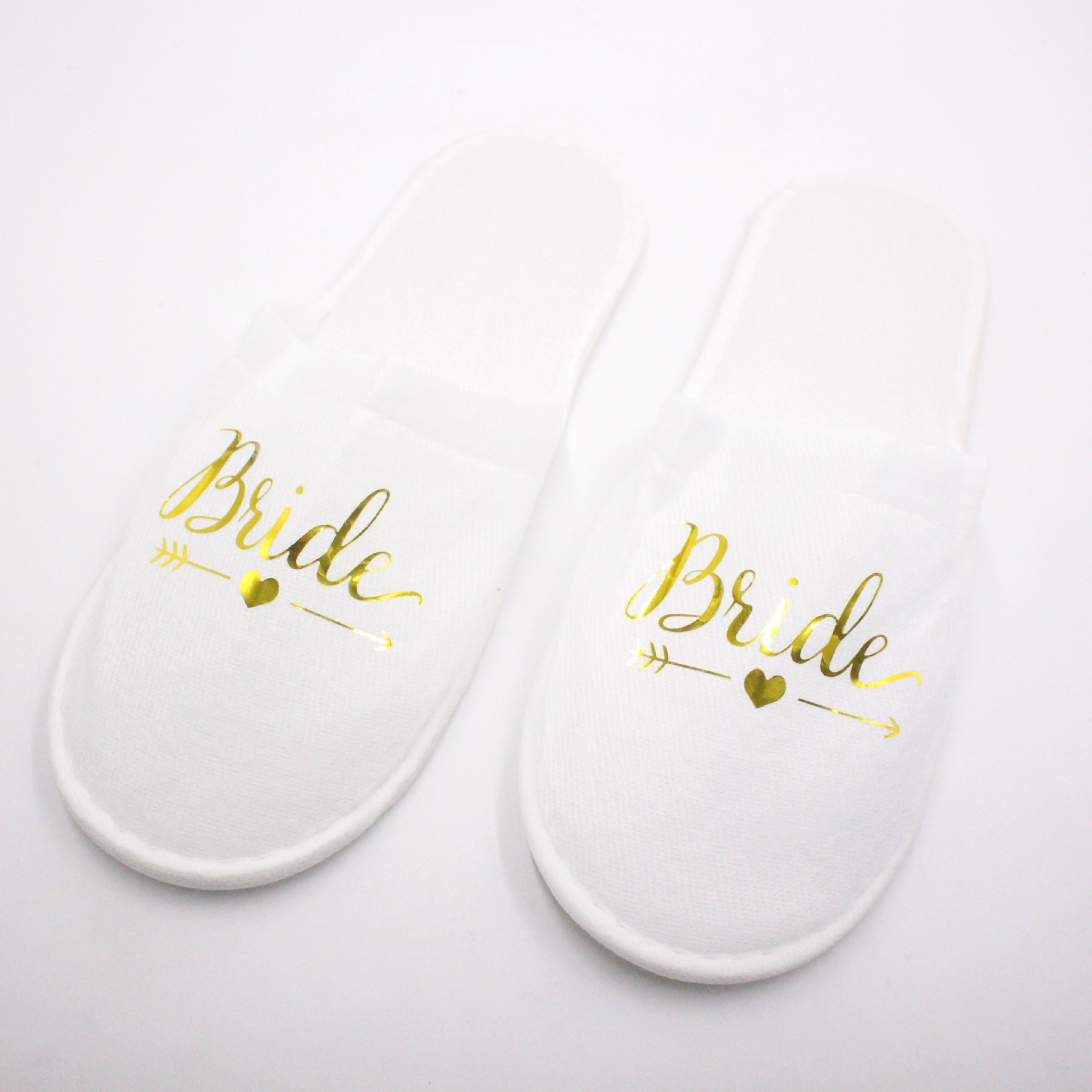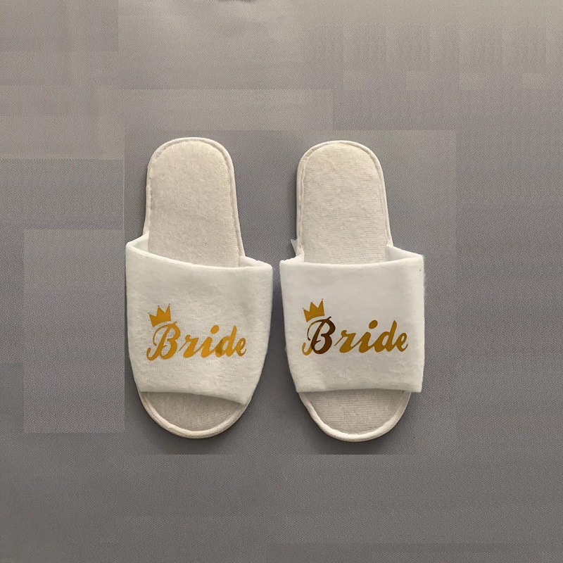 金色亮片字母 婚礼睡衣派对拖鞋 maid of honor bridesmaid