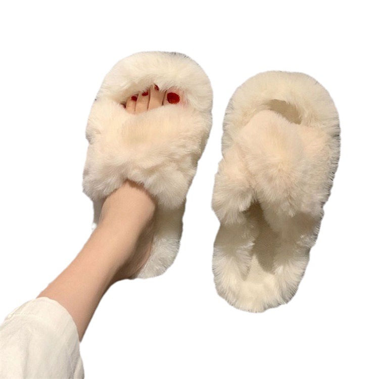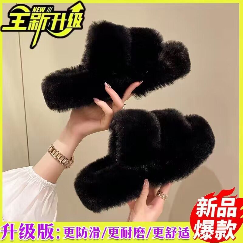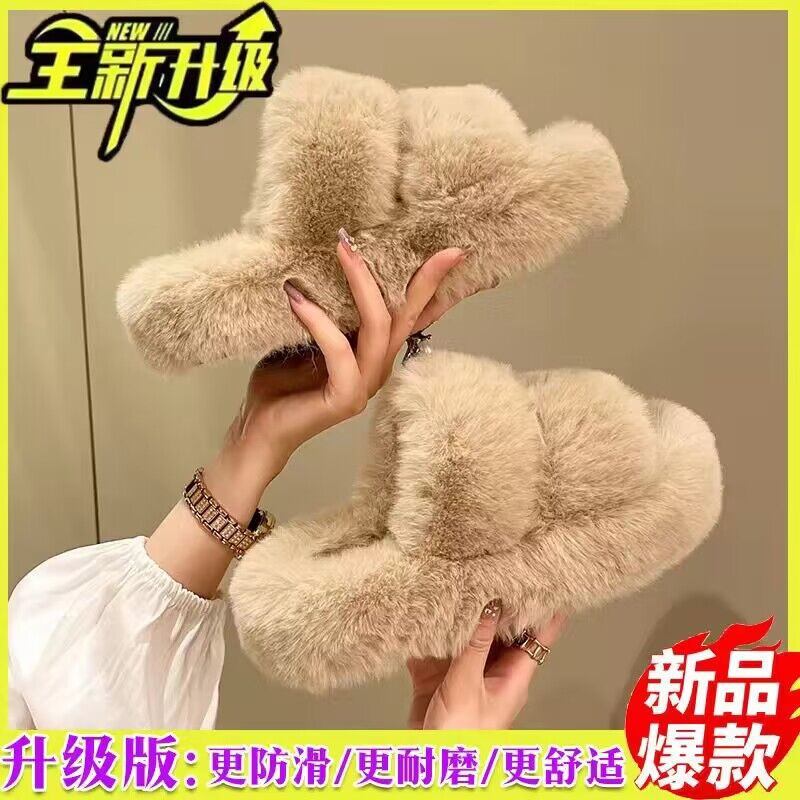 秋冬2023新款毛毛拖鞋女时尚外穿毛绒厚底拖鞋韩版交叉带居家棉拖