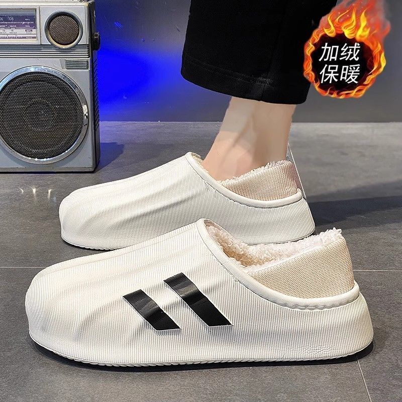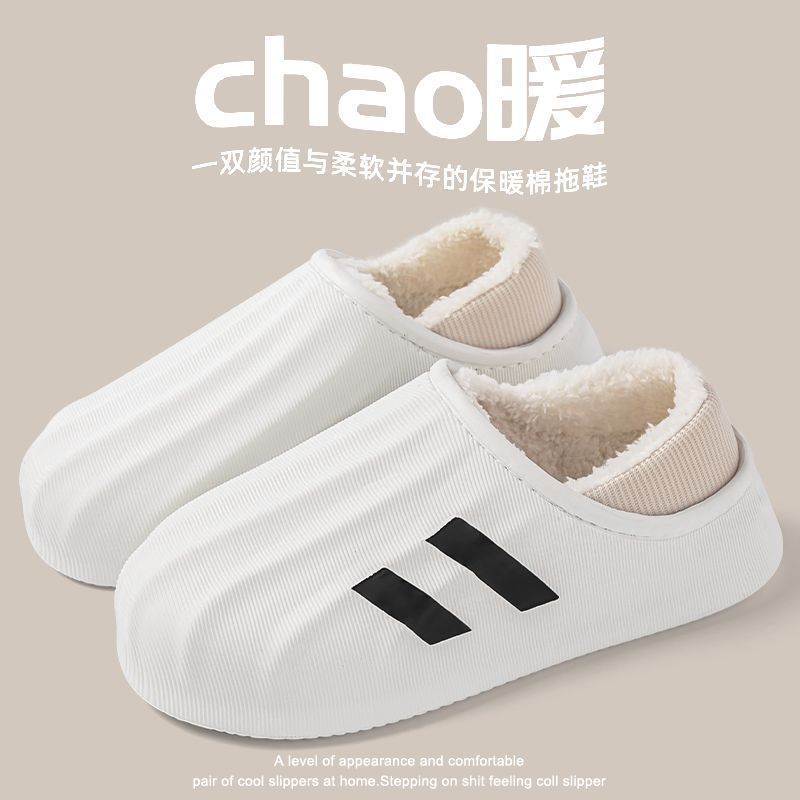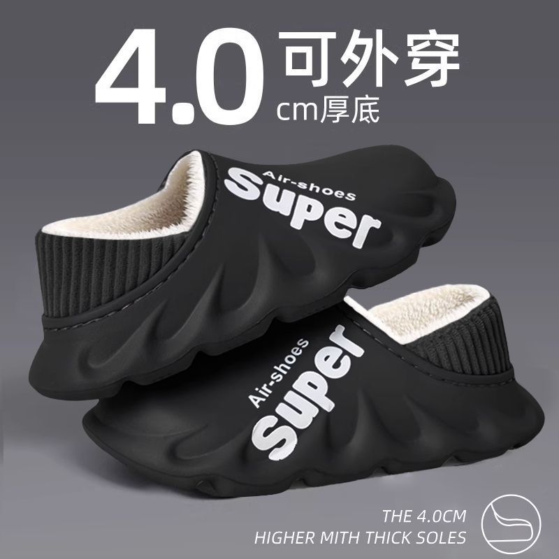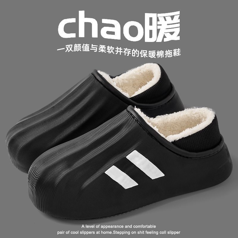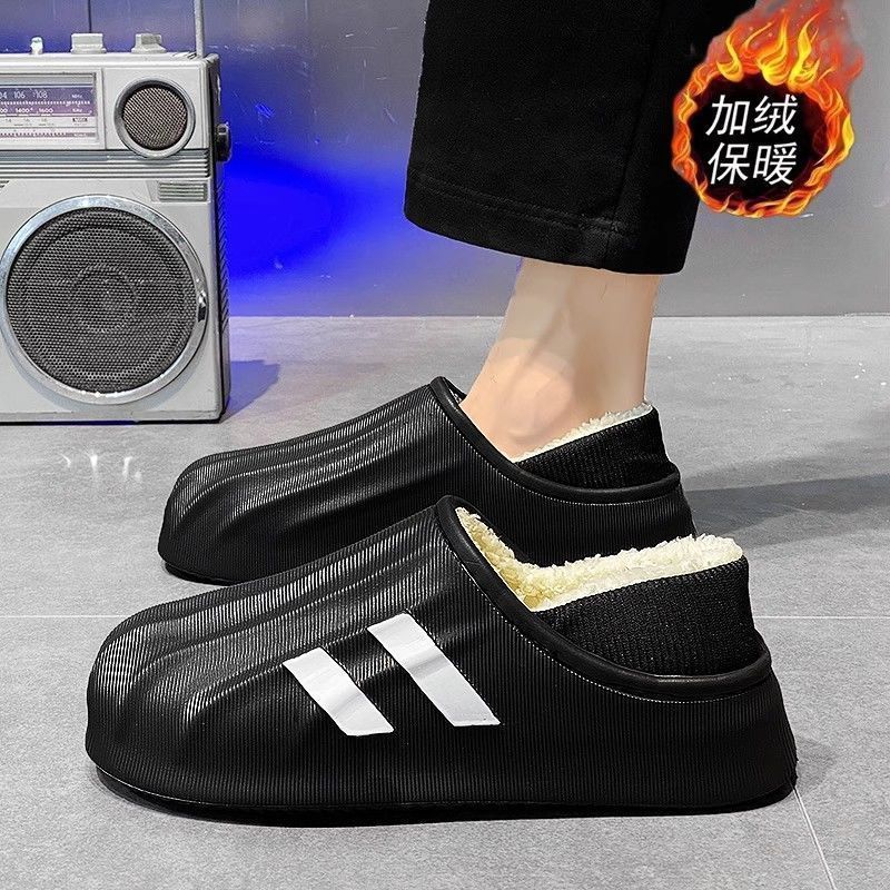 防水棉拖鞋男士秋冬季爆款室内保暖加绒防滑外穿厚底时尚拖鞋