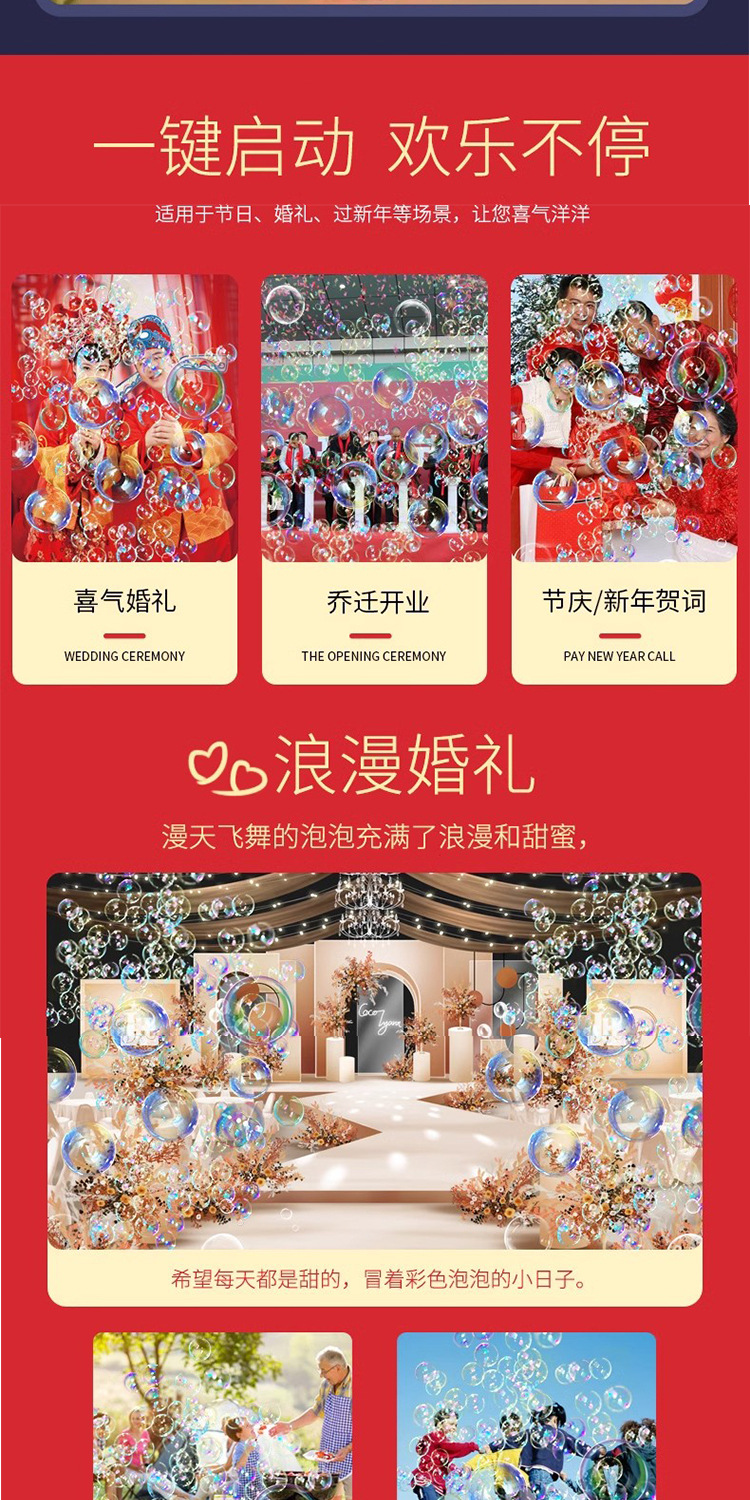 2026手持泡泡机全电自动烟火礼花结婚玩具补充液泡水吹泡泡充电