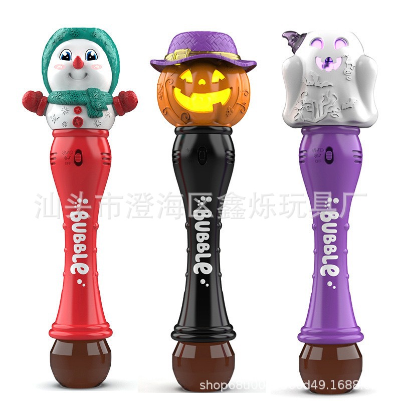 跨境圣诞节万圣节幽灵南瓜泡泡棒吹泡泡户外玩具雪人手持泡泡机