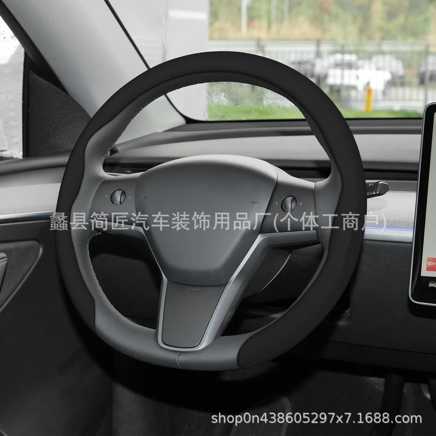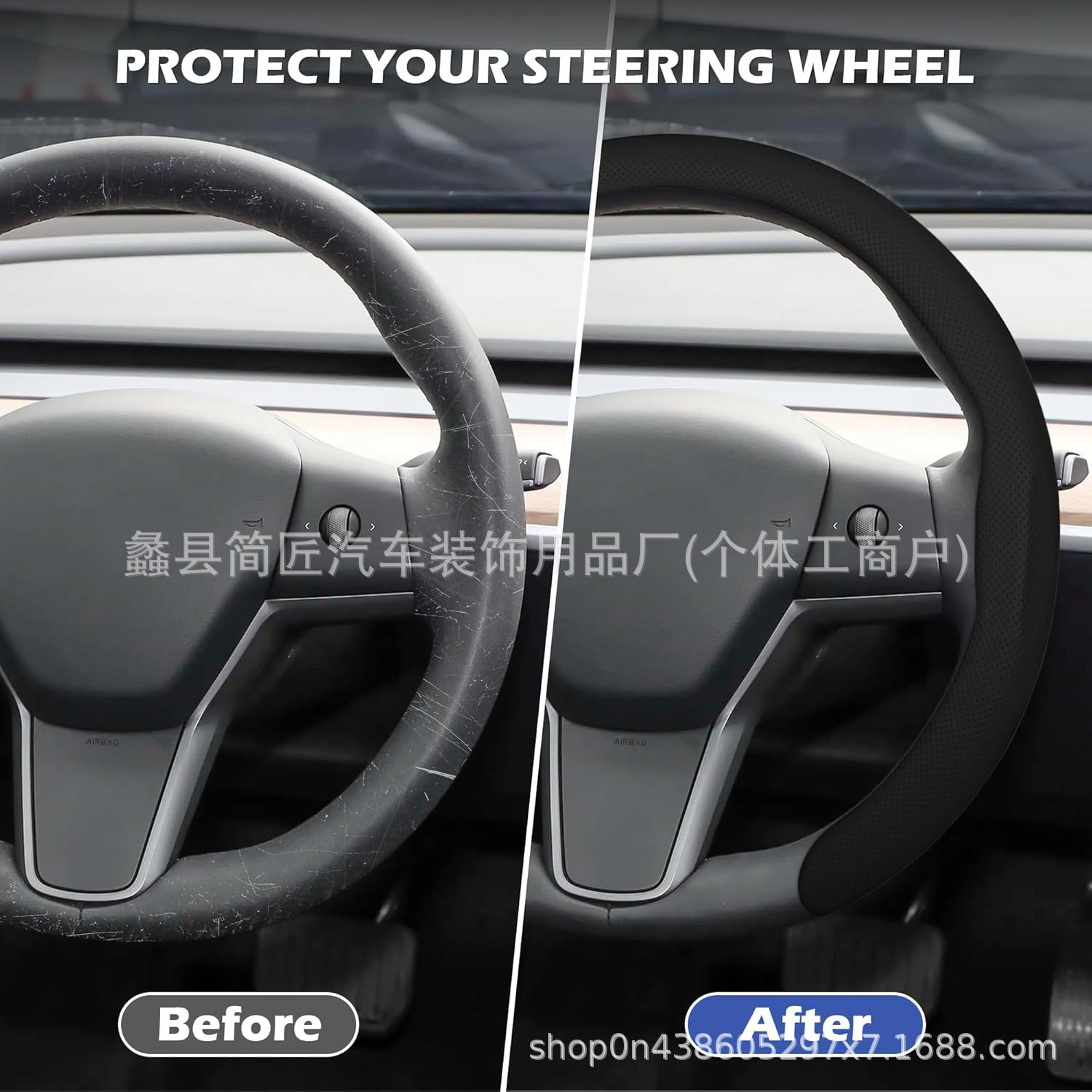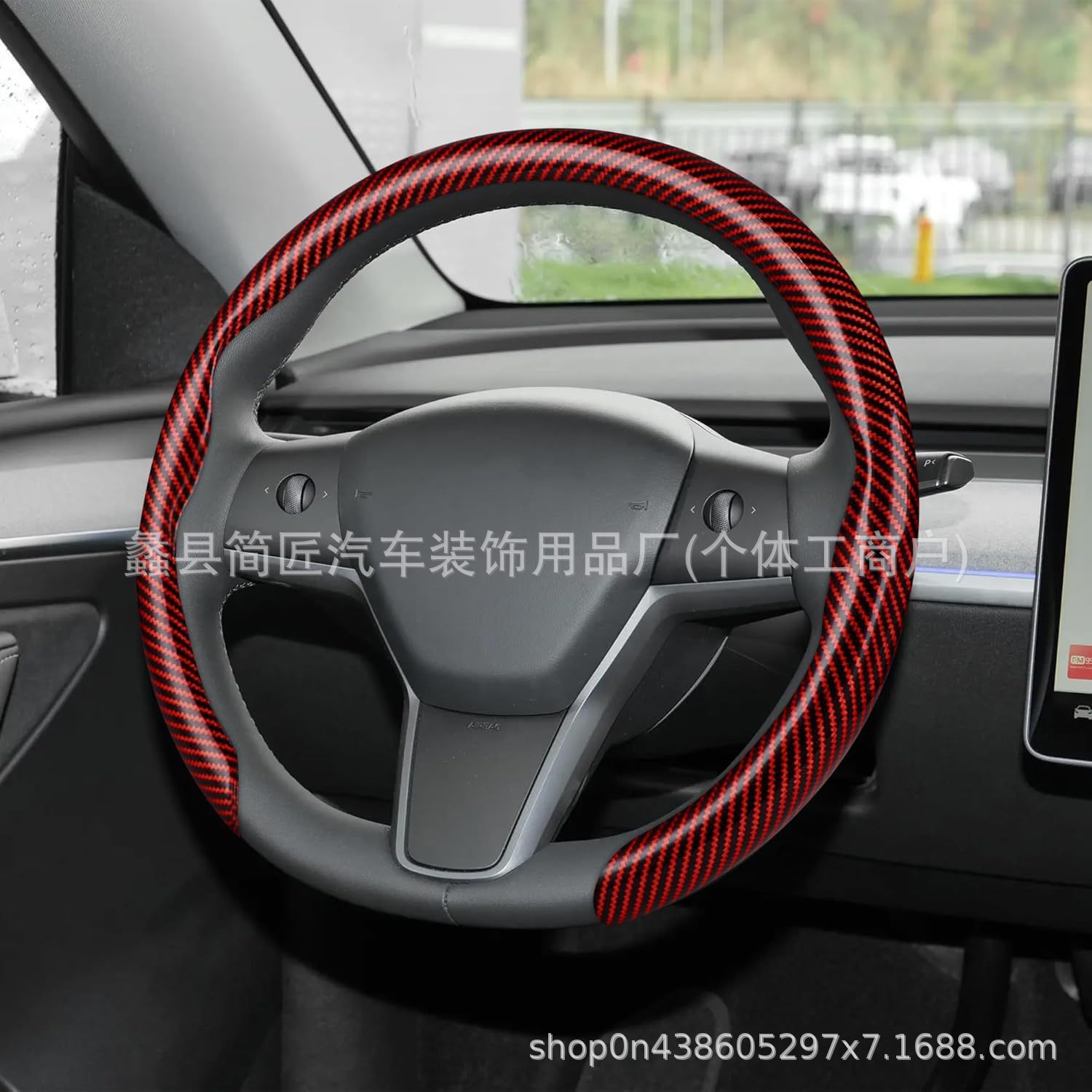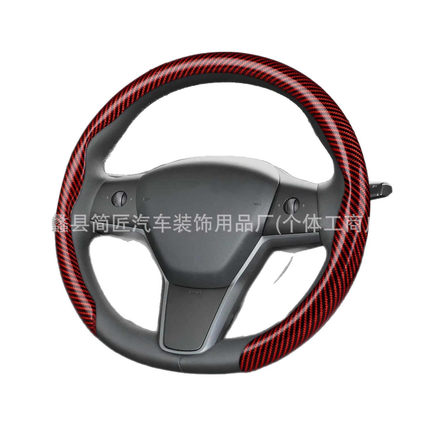 适用于model3/Y方向盘套Nappa皮革碳纤纹汽车方向盘套防滑耐磨
