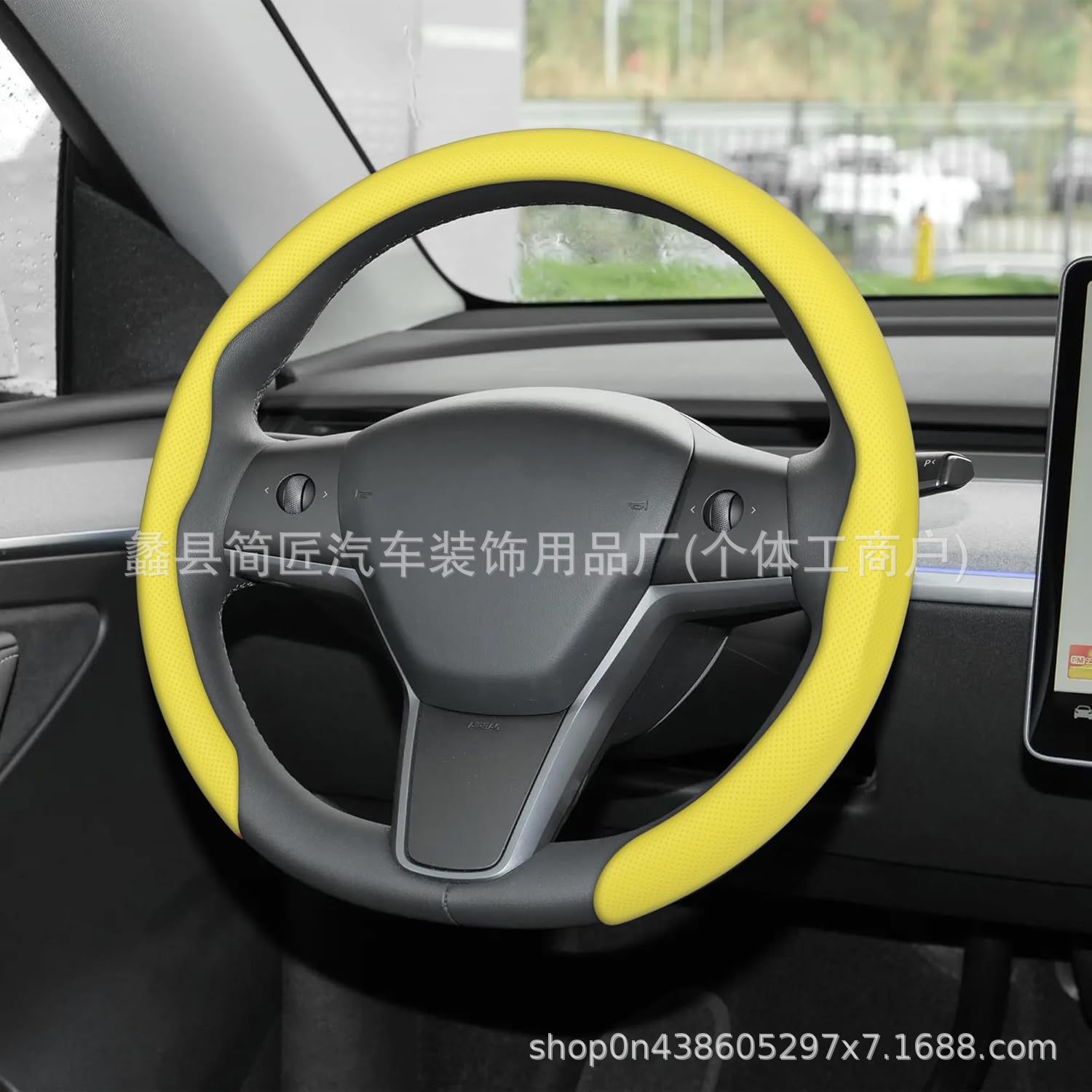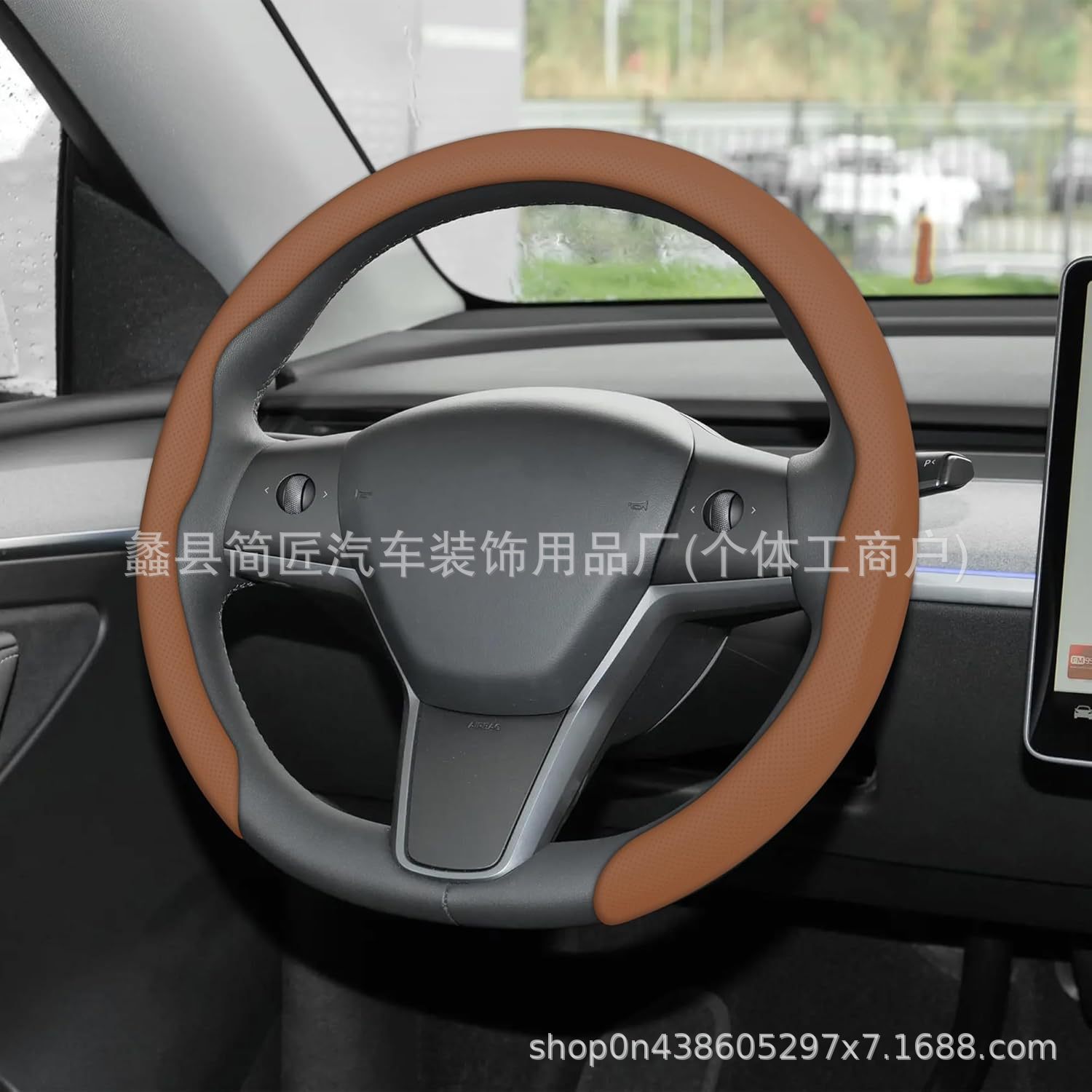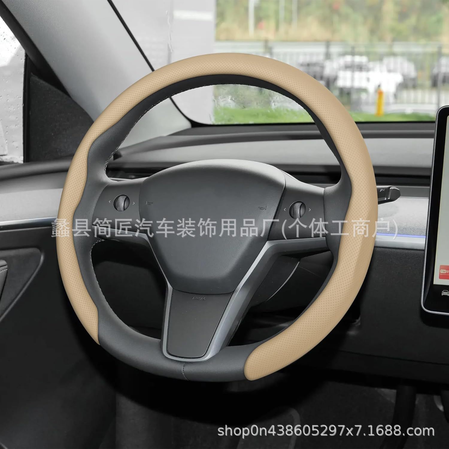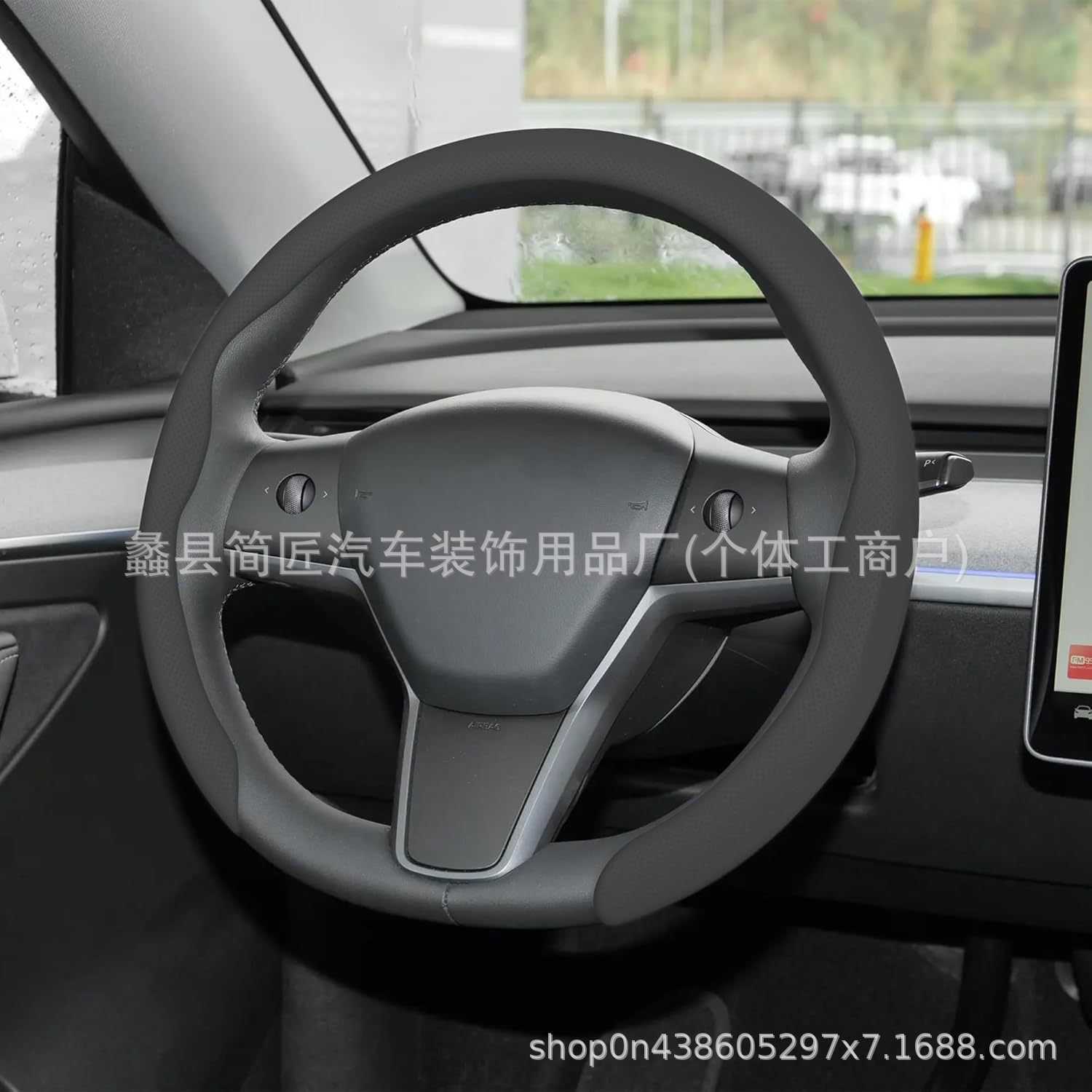 适用于model3/Y方向盘套Nappa皮革碳纤纹汽车方向盘套防滑耐磨