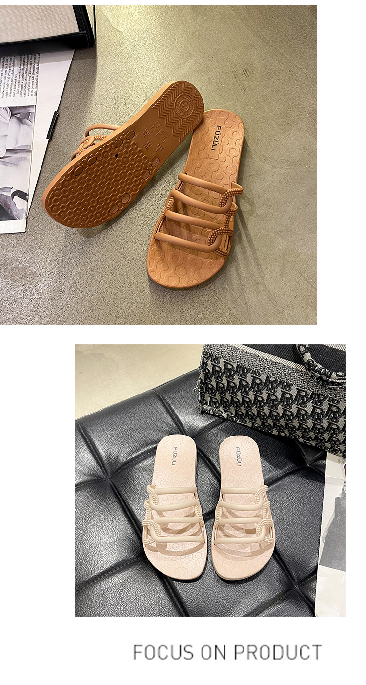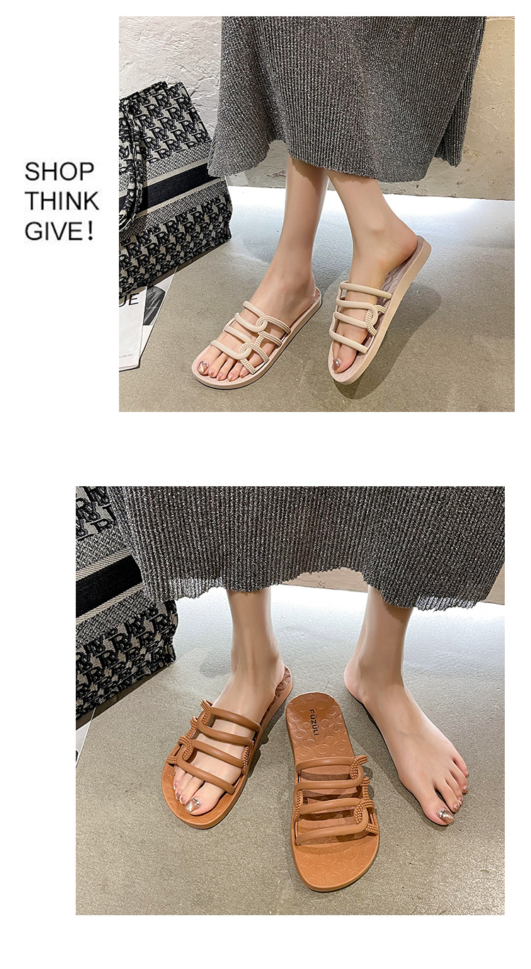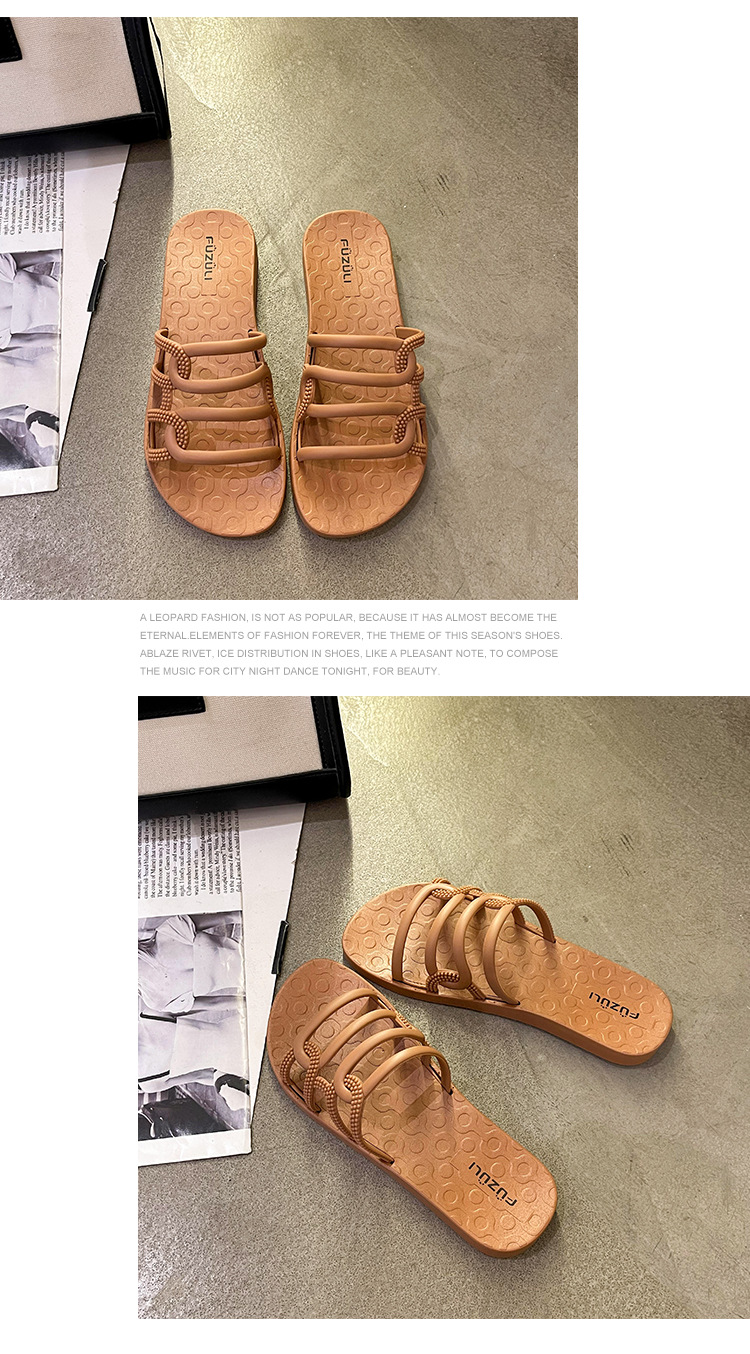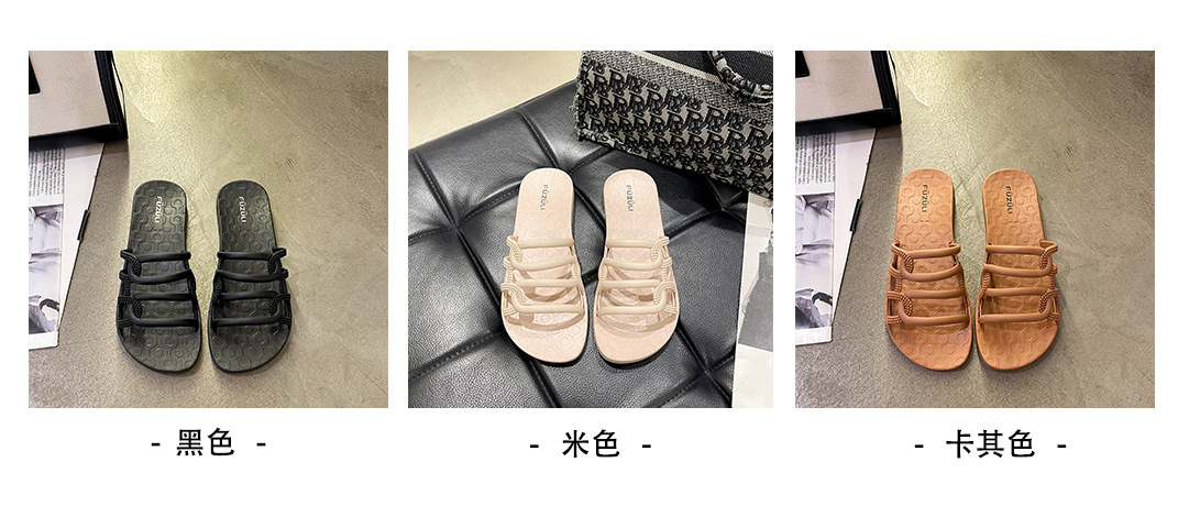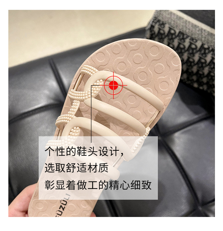 休闲仙女风平底拖鞋外穿 夏季新款镂空一字带凉拖女式度假沙滩鞋