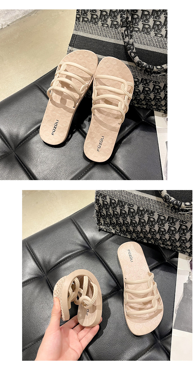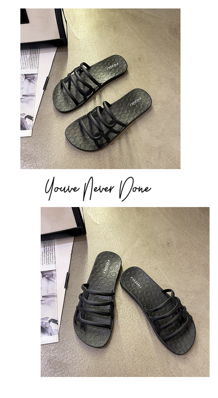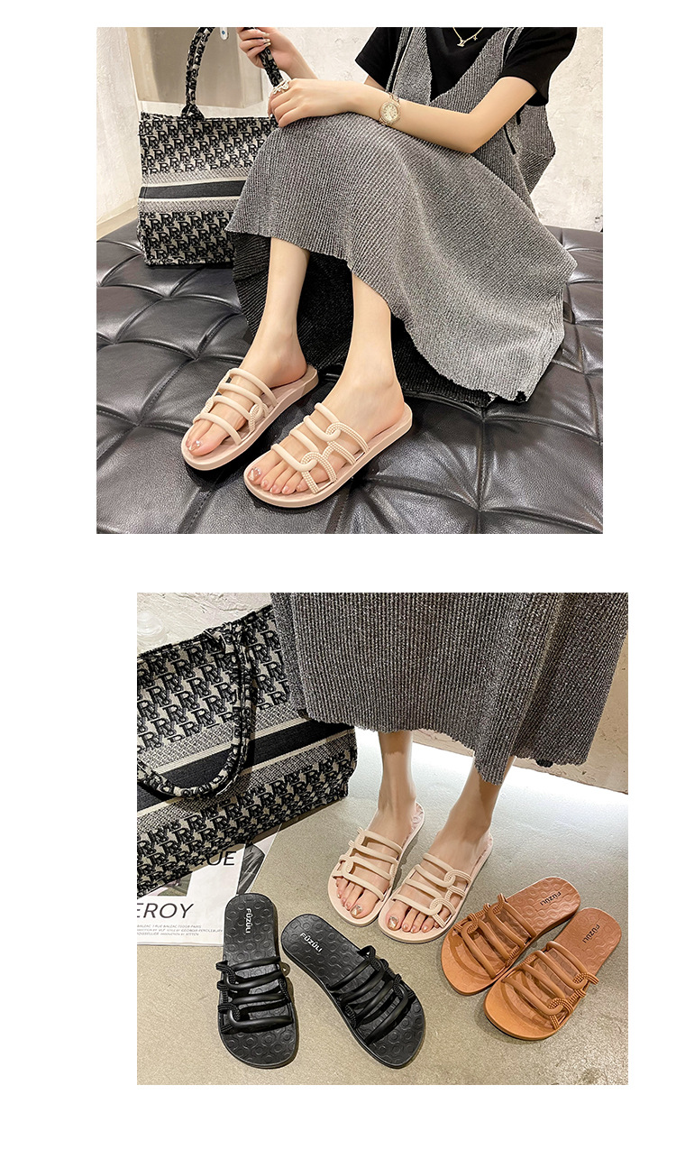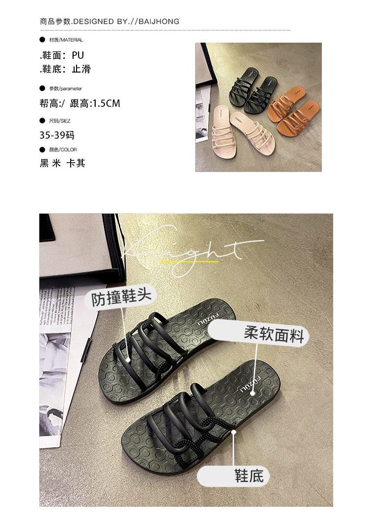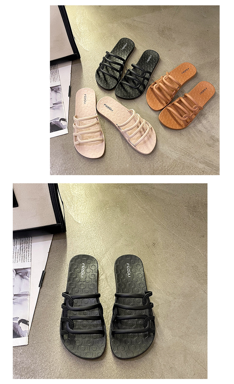 休闲仙女风平底拖鞋外穿 夏季新款镂空一字带凉拖女式度假沙滩鞋