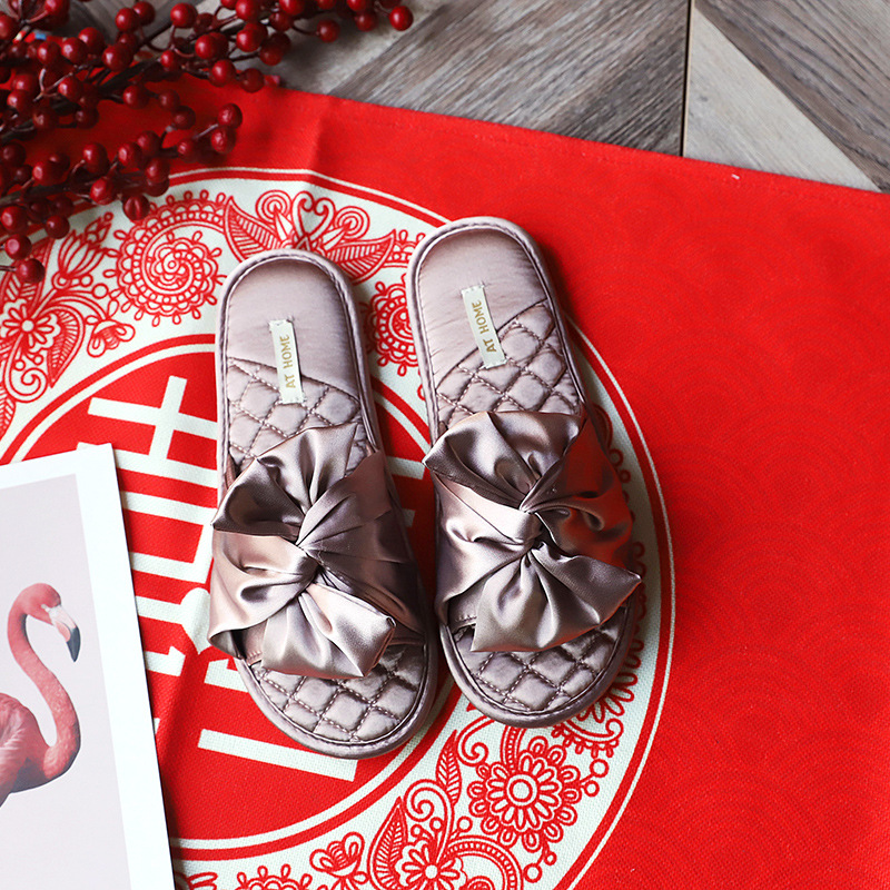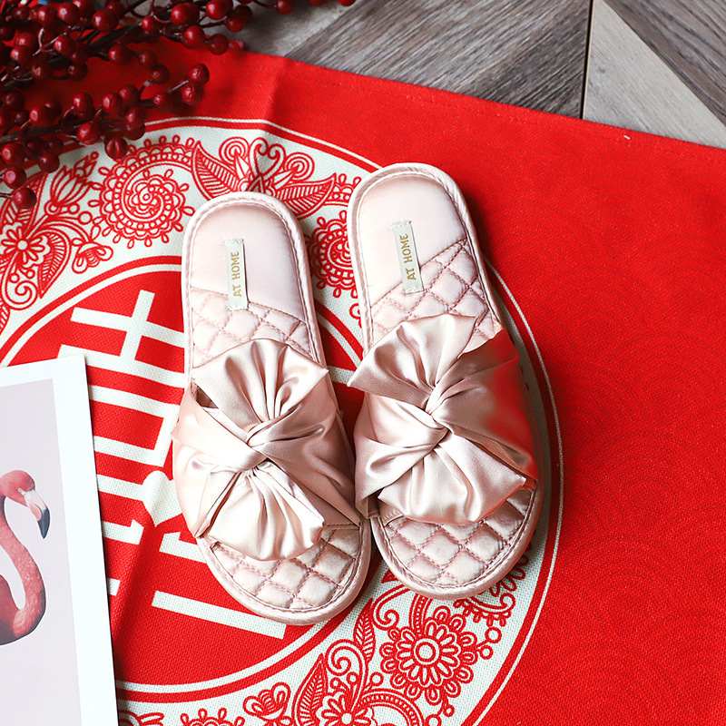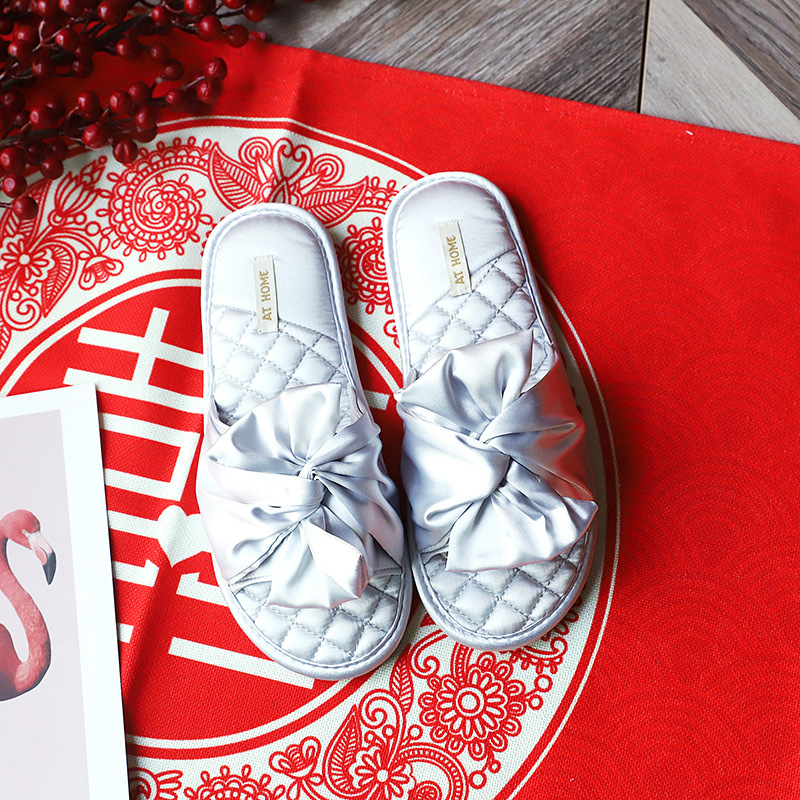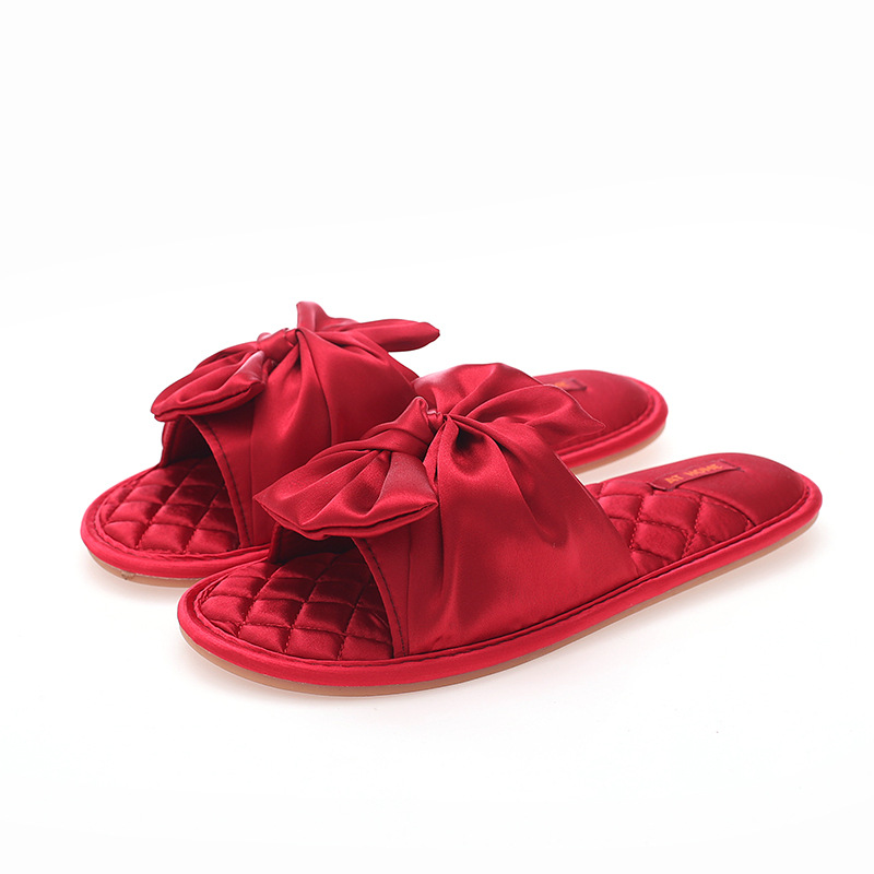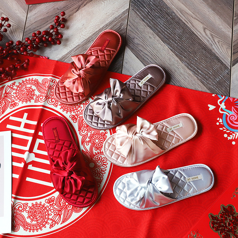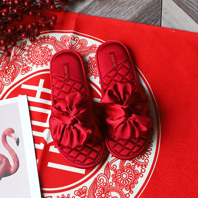 结婚拖鞋女新款夏季喜庆红色一对丝绸陪嫁防滑拖鞋家用厂家批发男