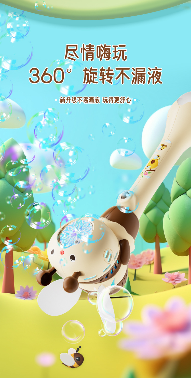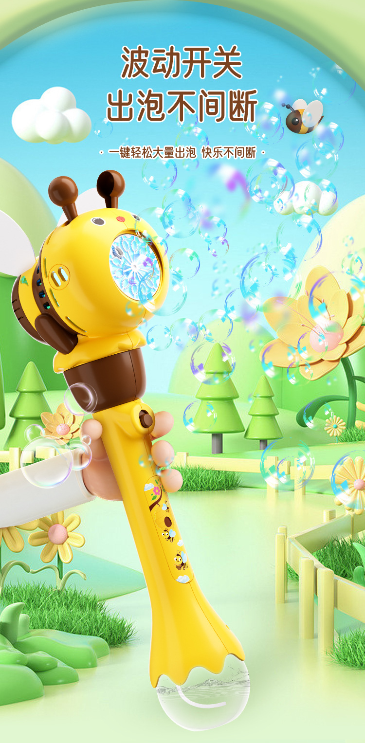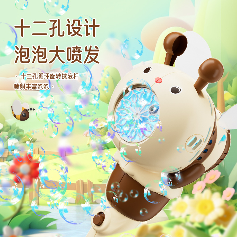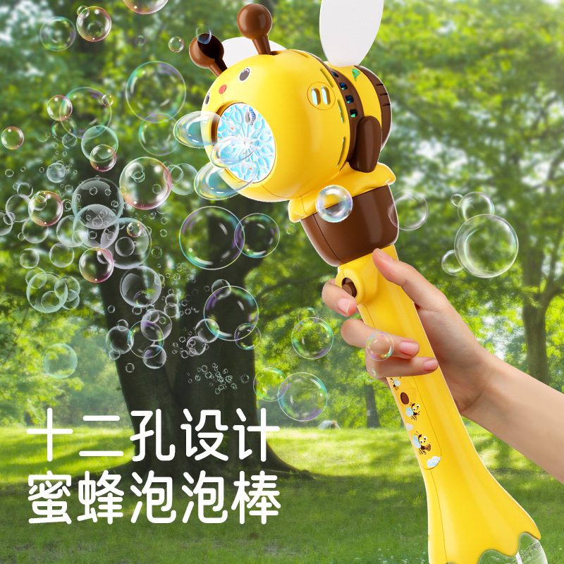 小蜜蜂泡泡棒儿童手持泡泡机户外玩具全自电动灯光不漏液