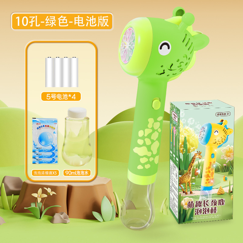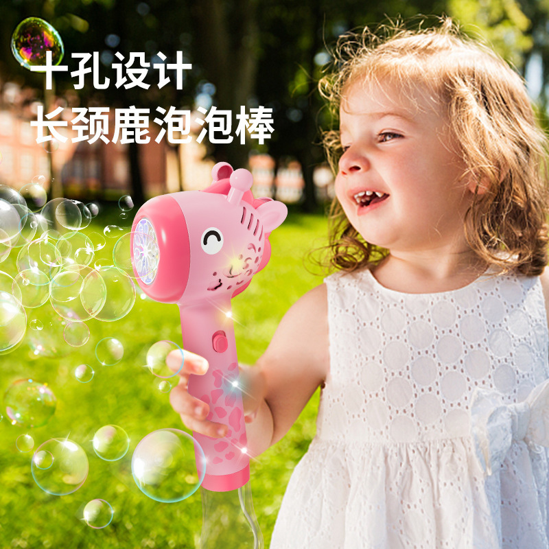 新款网红长颈鹿泡泡机手持电动儿童灯光音乐多孔魔法棒电动泡泡棒