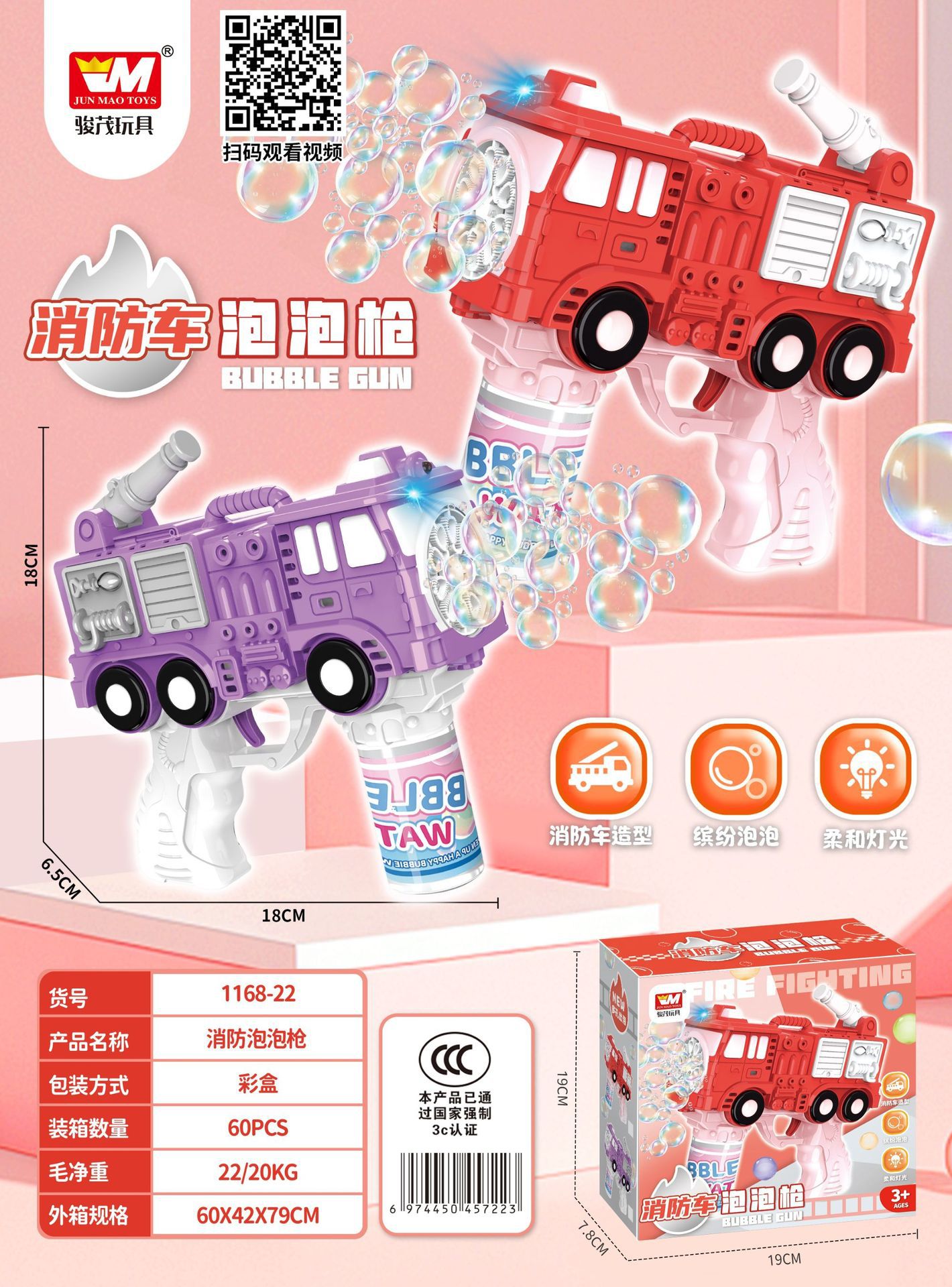 跨境工程车泡泡枪多孔全自动手持电动网红儿童吹泡泡灯光玩具批发