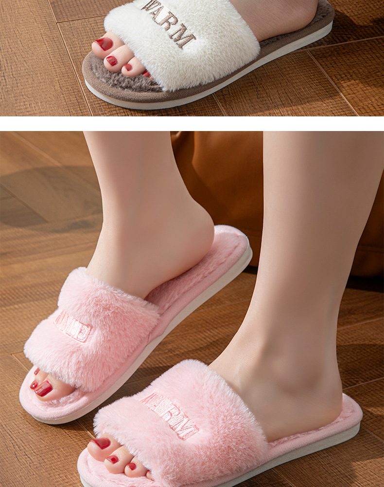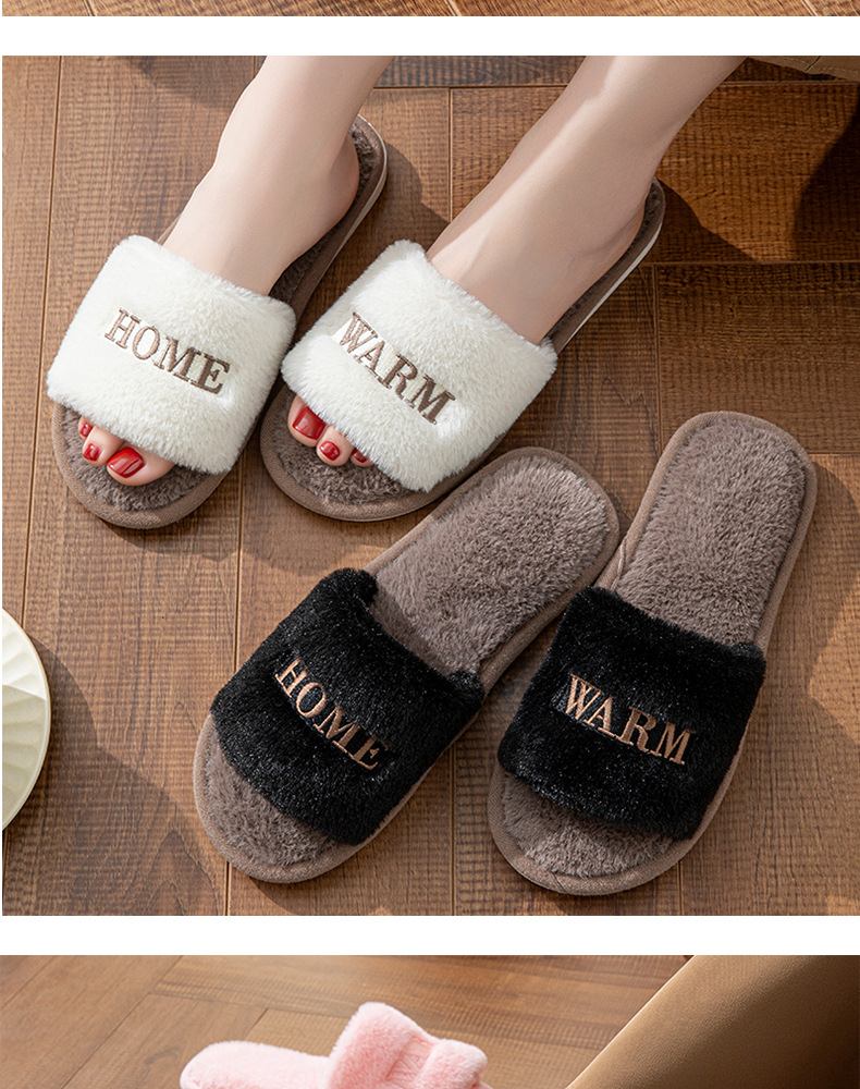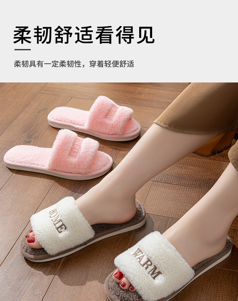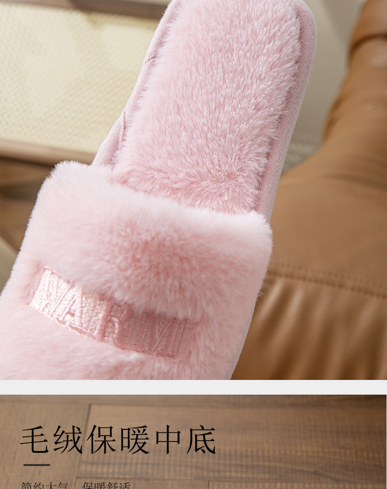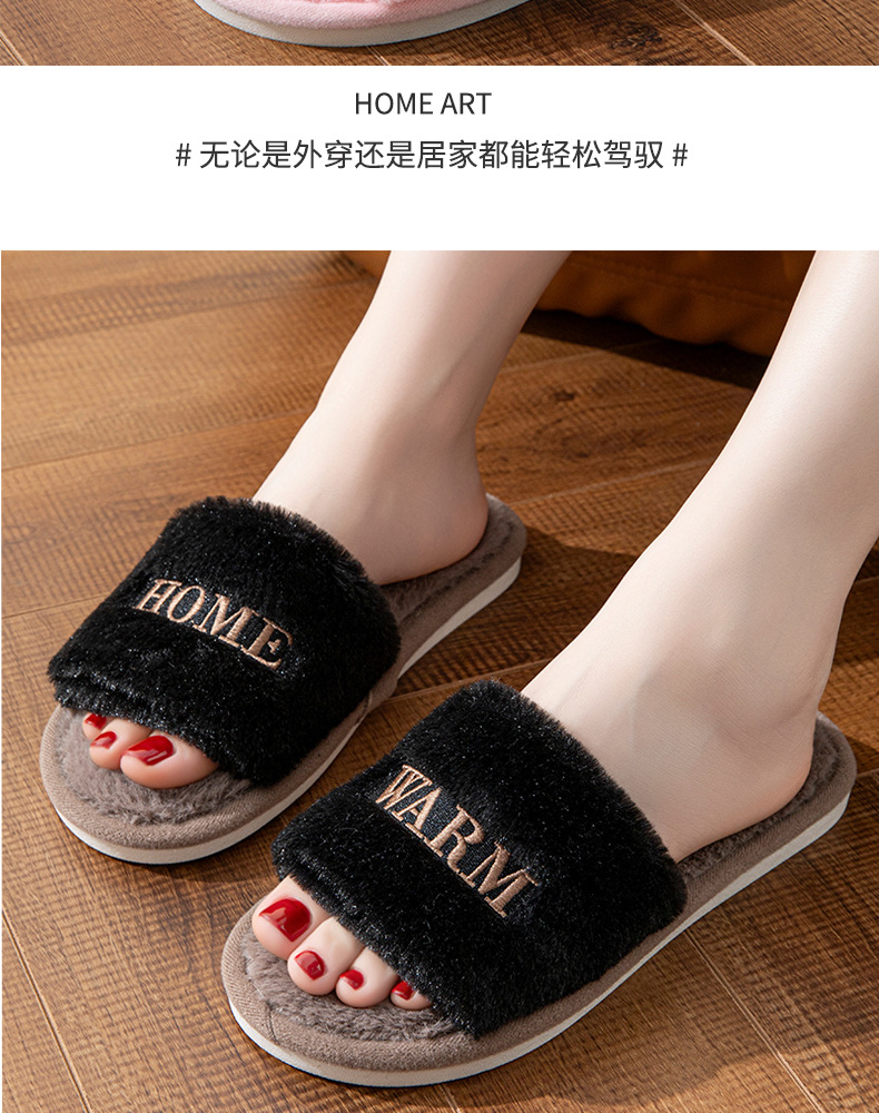 新款冬季室内外穿毛绒保暖一字棉拖鞋女创意个性刺绣软底月子鞋秋