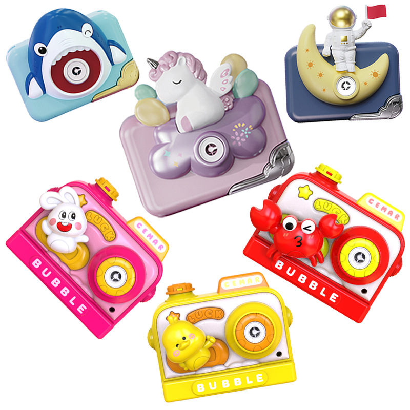 独角自动吹泡泡相机儿童电动音乐灯光户外兽太空人泡泡机玩具批发