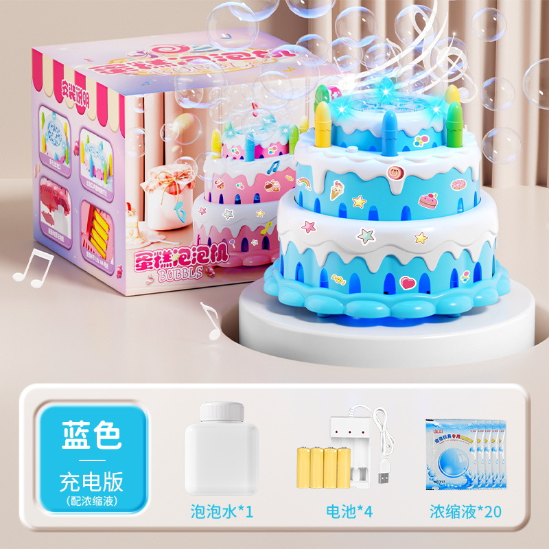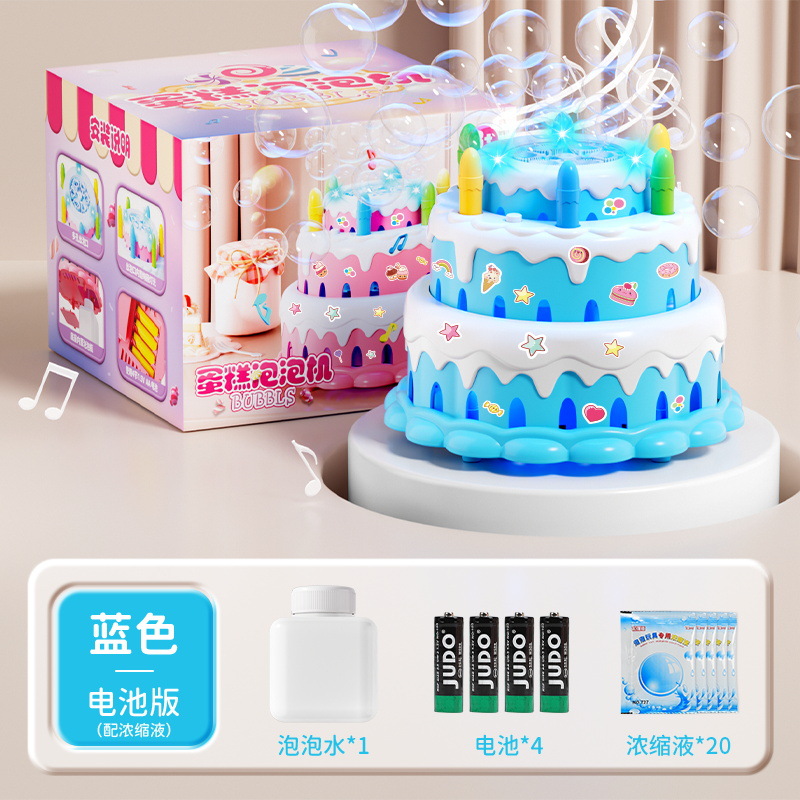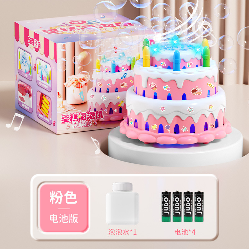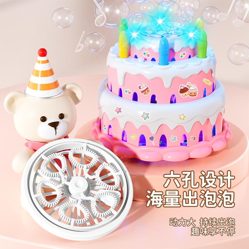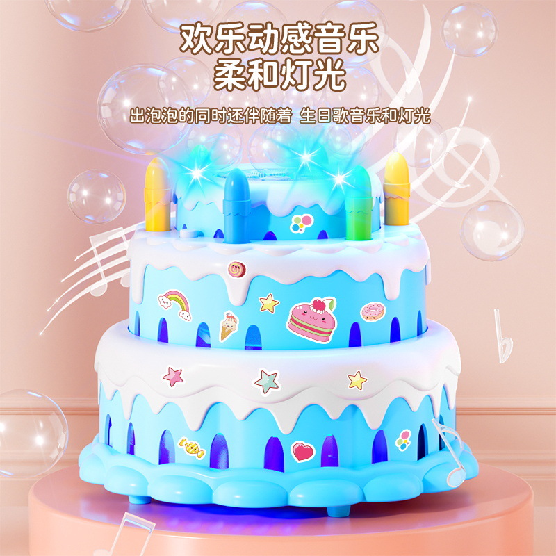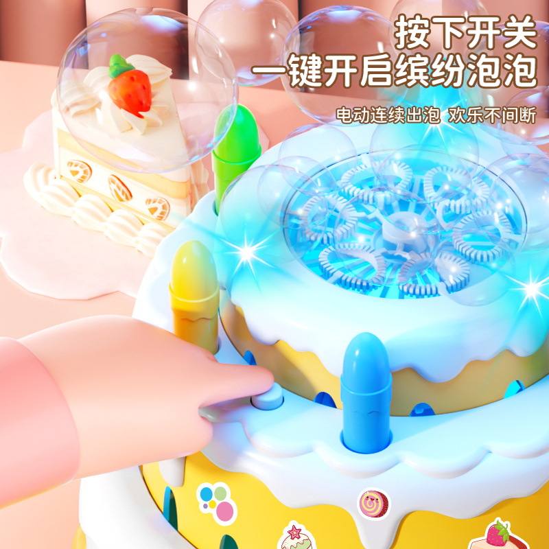 儿童电动蛋糕泡泡机多孔全自动吹泡泡灯光音乐生日蛋糕过家家玩具