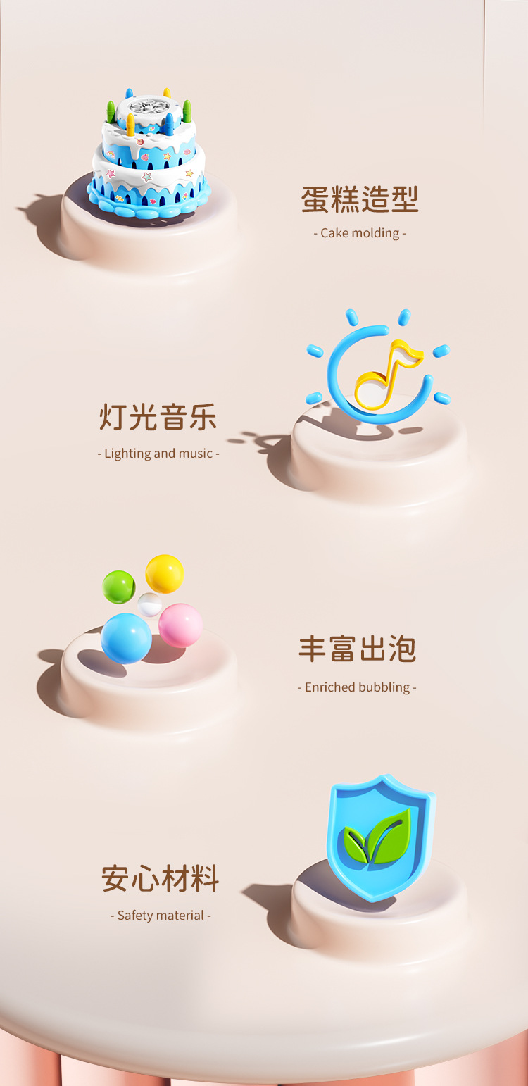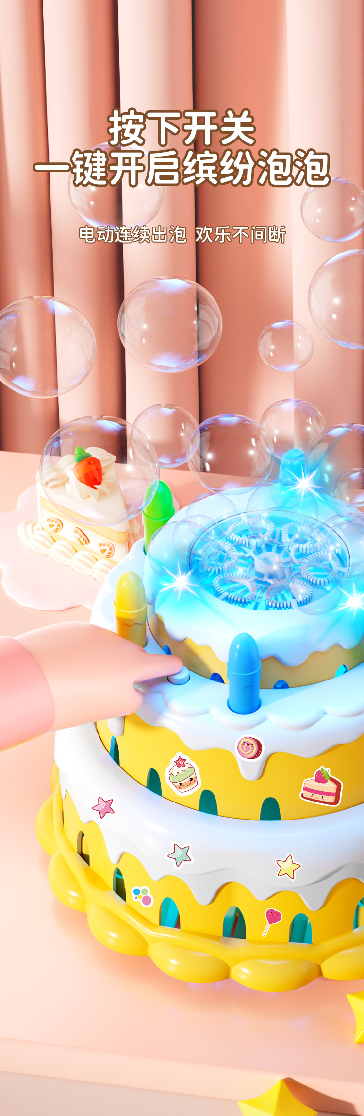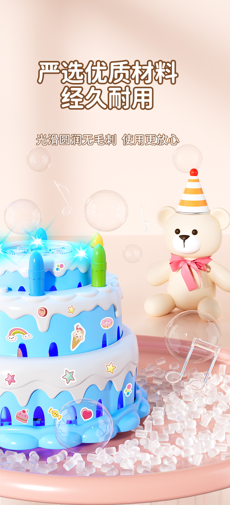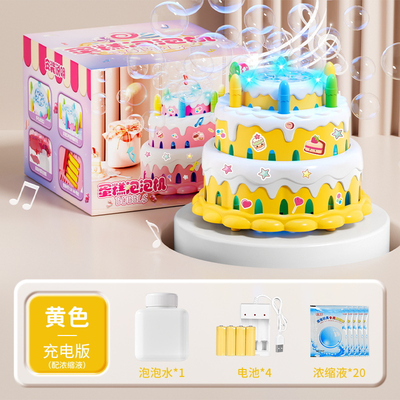 儿童电动蛋糕泡泡机多孔全自动吹泡泡灯光音乐生日蛋糕过家家玩具