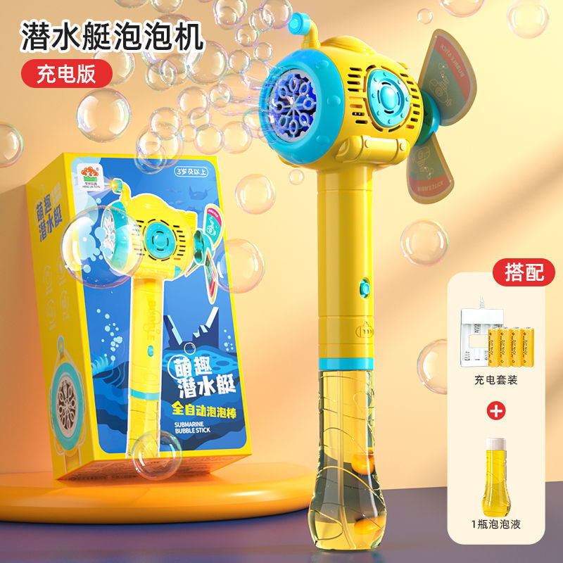 跨境潜水艇风车泡泡机儿童手持电动全自动泡泡棒户外男女孩玩具