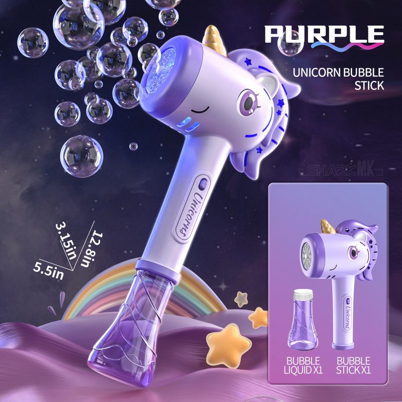 跨境新款独角兽泡泡机手持泡泡棒泡泡机儿童全自动灯光可爱女孩礼