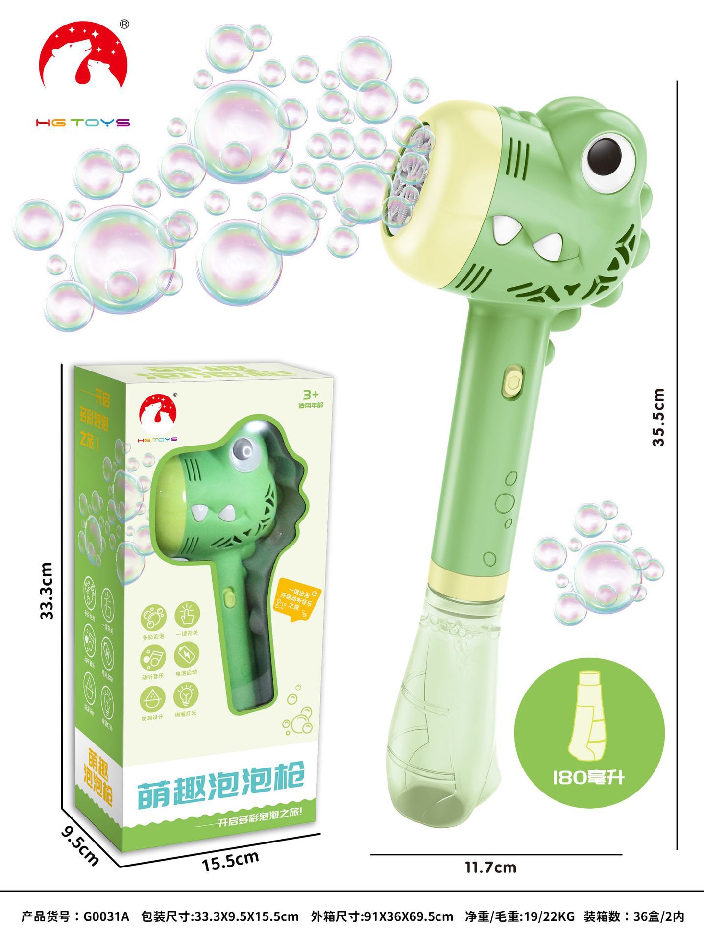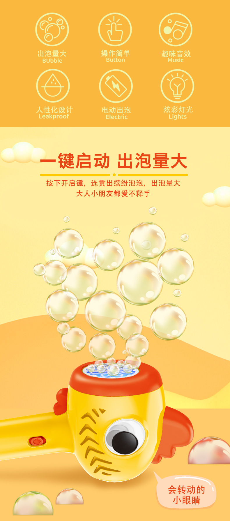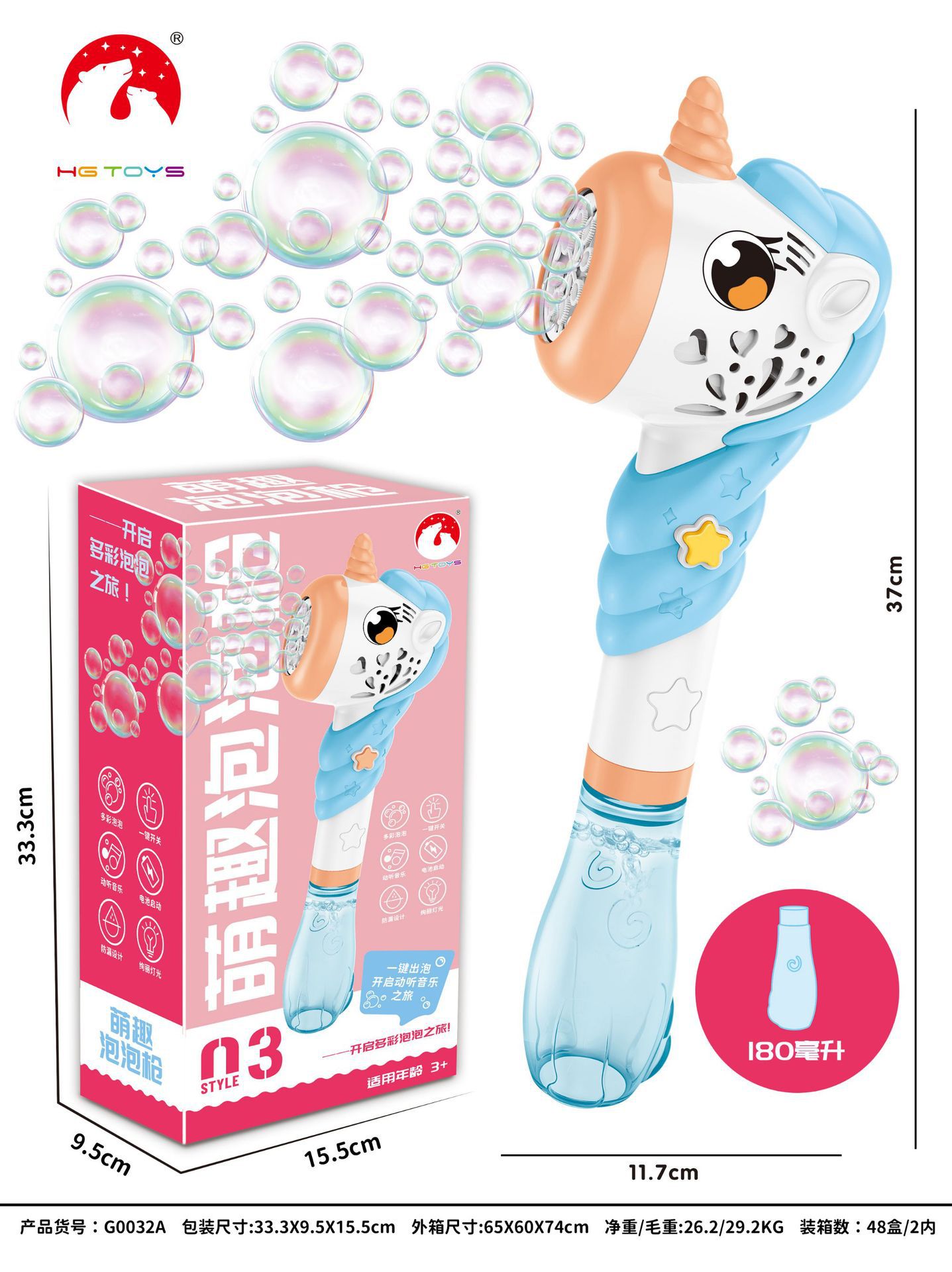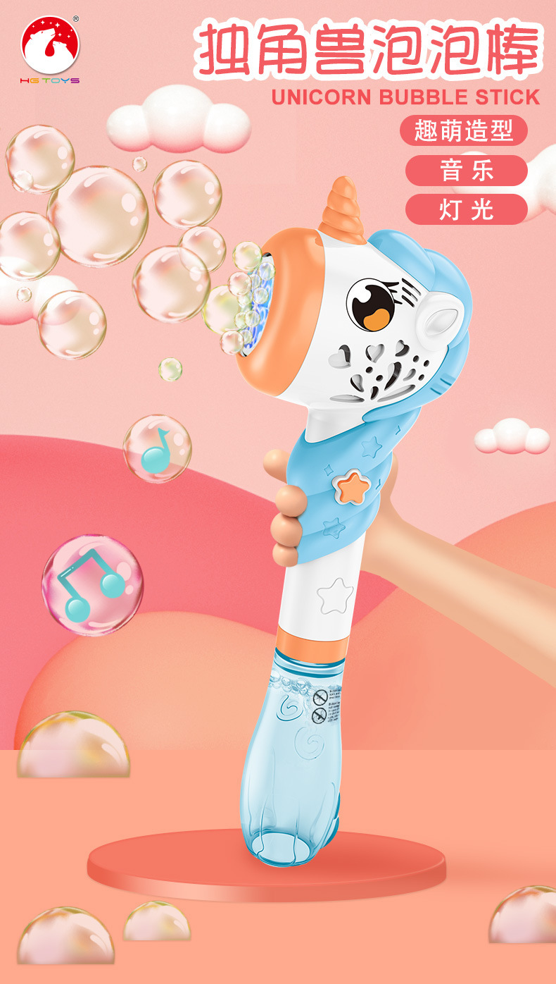 独角兽电动泡泡棒儿童男女孩玩具灯光音乐不漏水卡通全自动泡泡机
