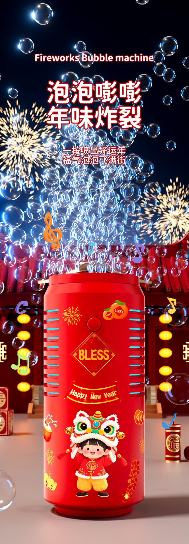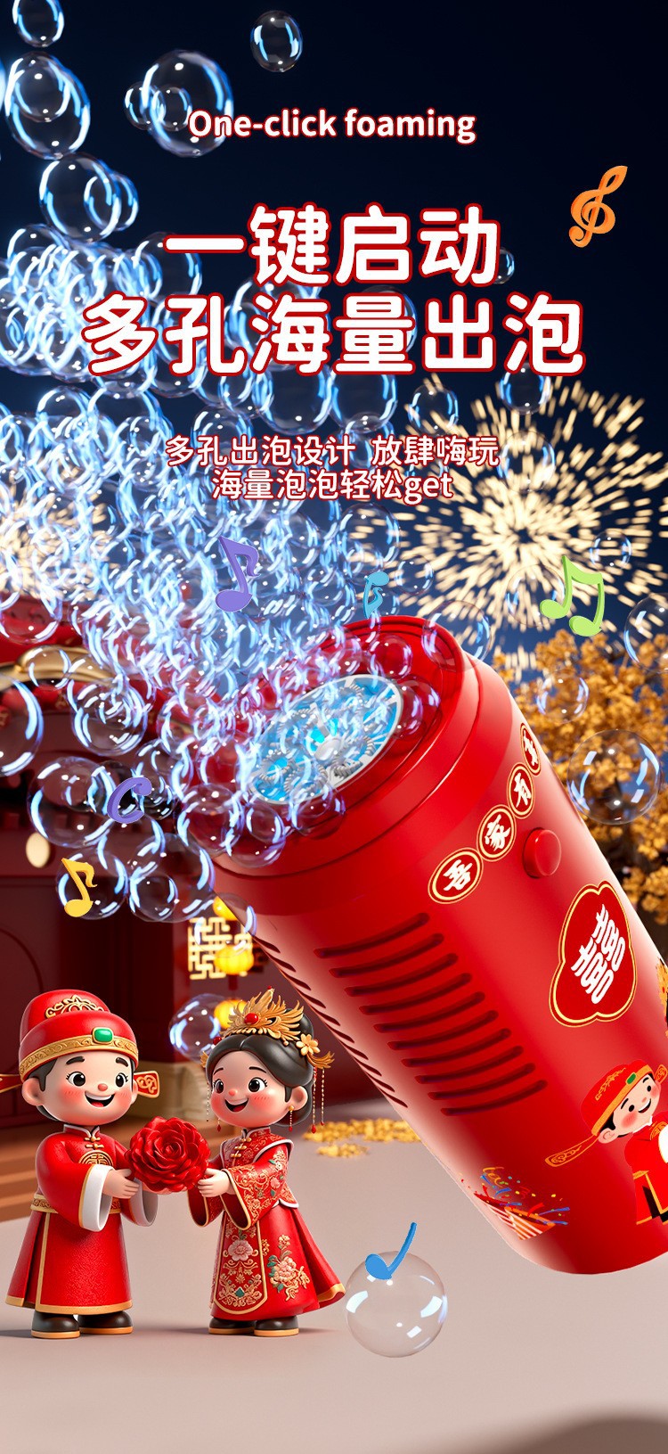 新年烟花泡泡机节日婚礼全自动烟花泡泡手持声光泡泡机礼品批发