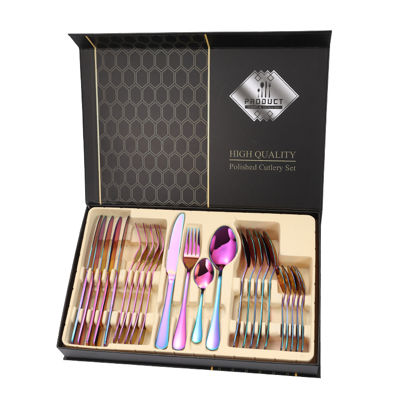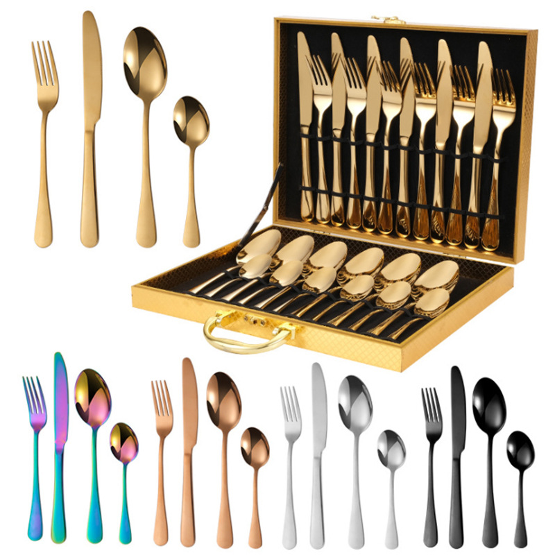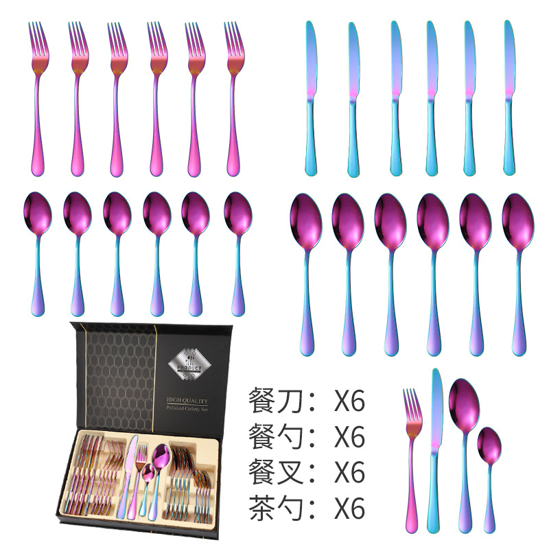 亚马逊产品1010不锈钢餐具24件套装四主件刀叉勺跨境礼盒西餐套装